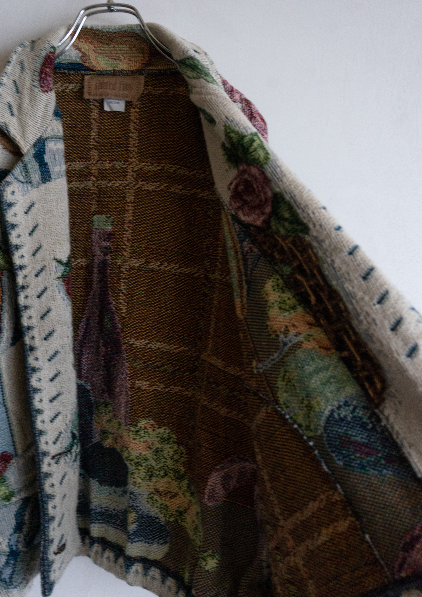 80~90's France Botanical Pattern Moss Green Jacket