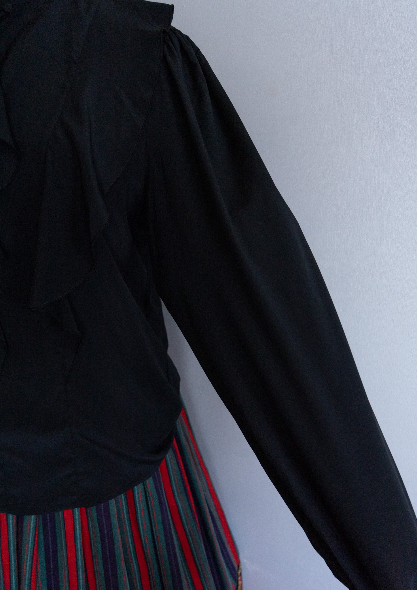 80's Jabot Like Collar Frill Design Black Blouse