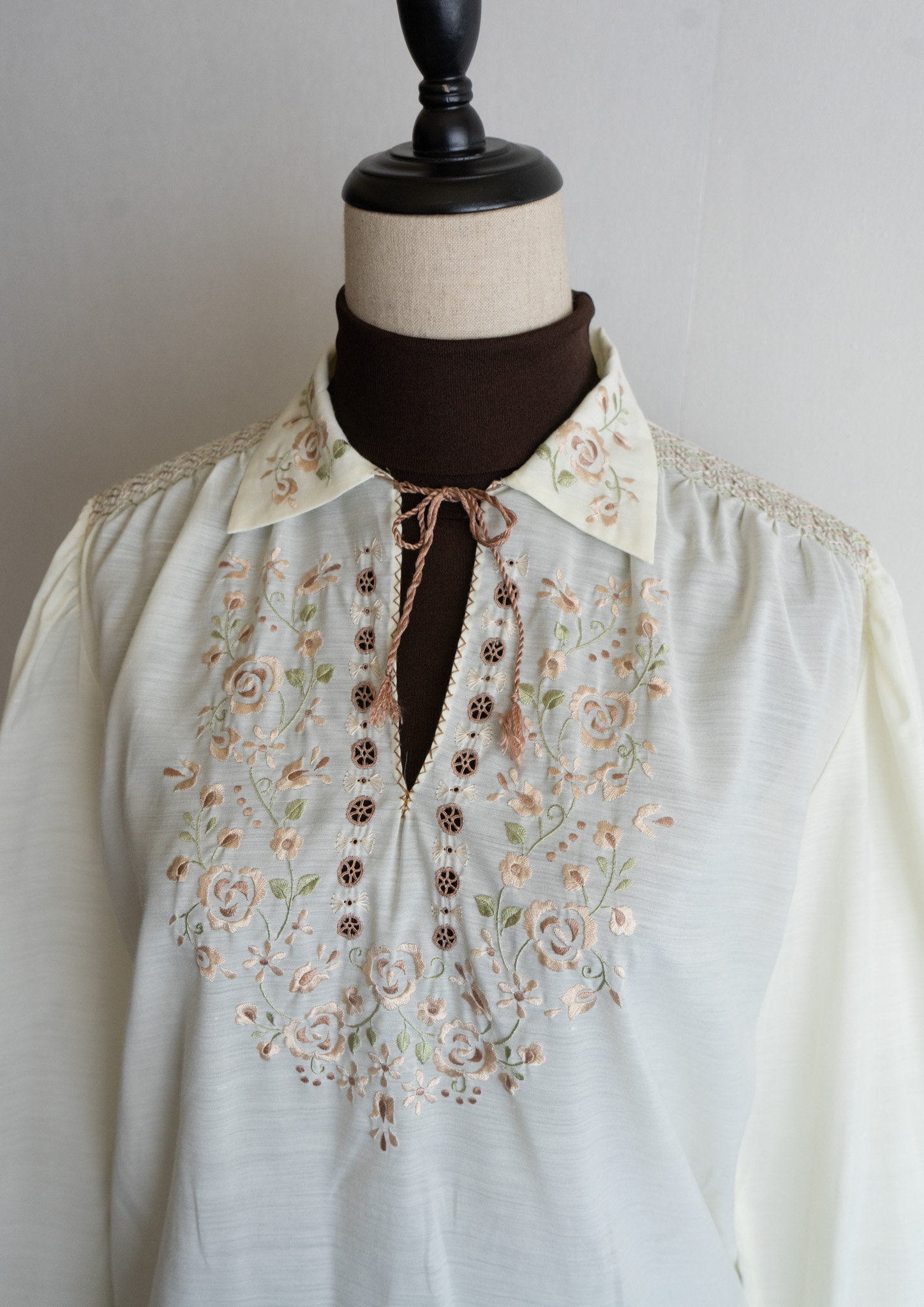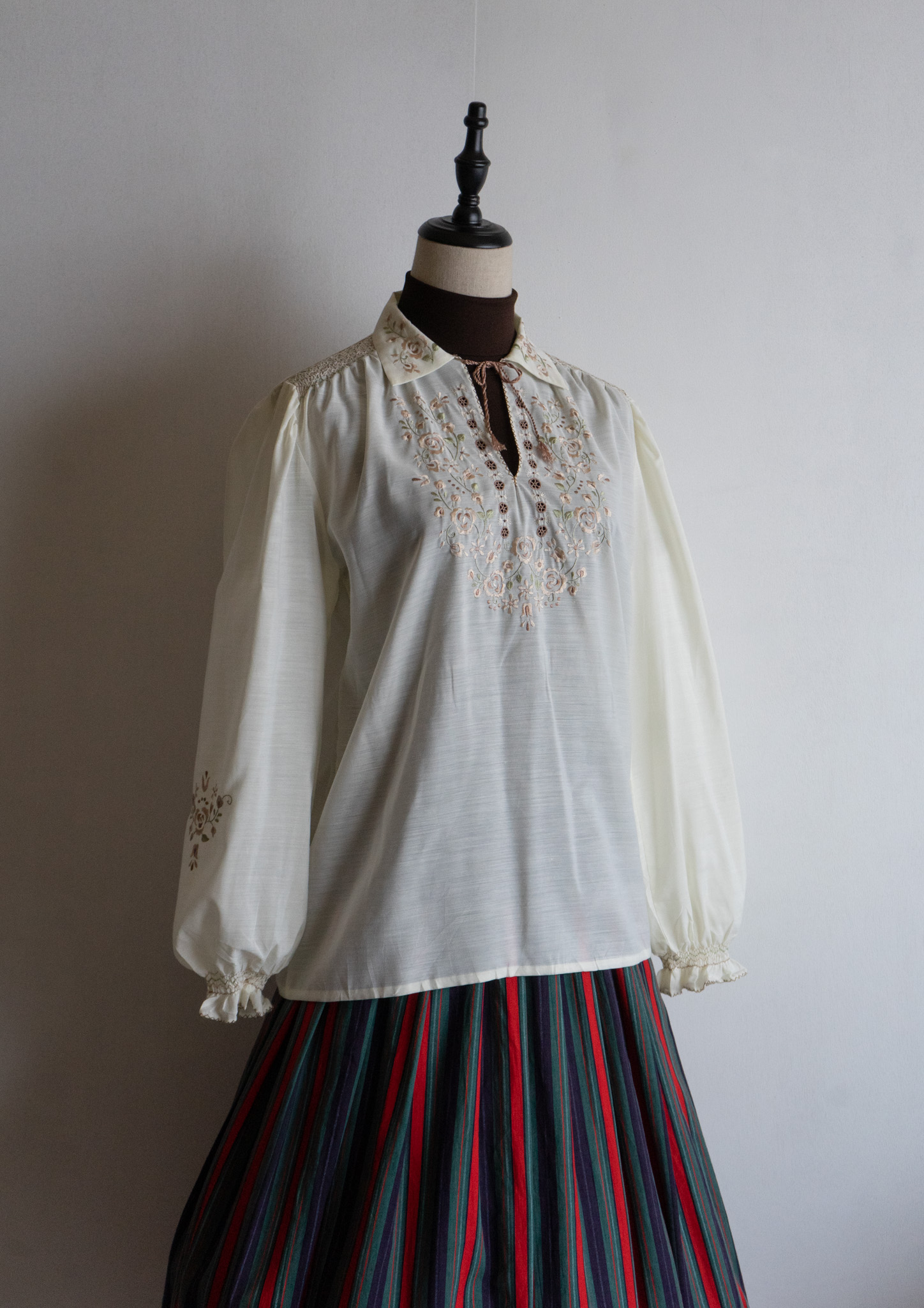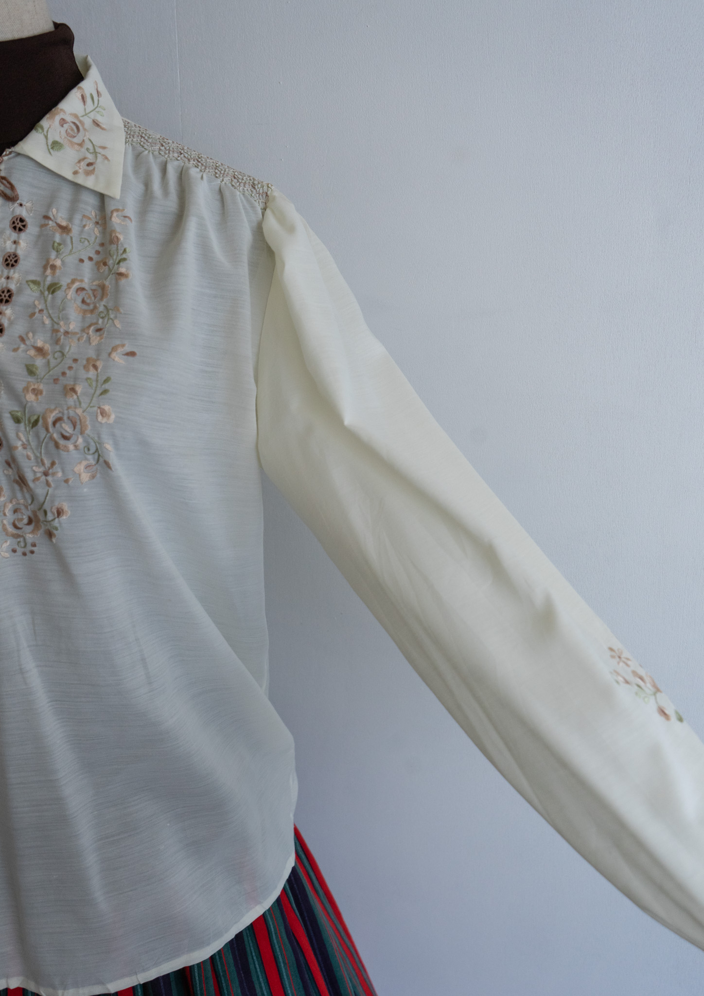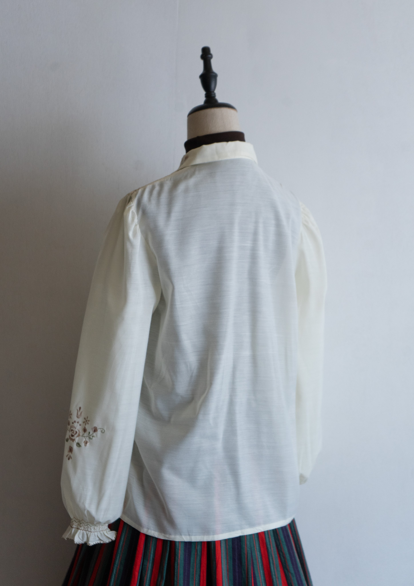 80's Flower Embroidery Design Off White Blouse
