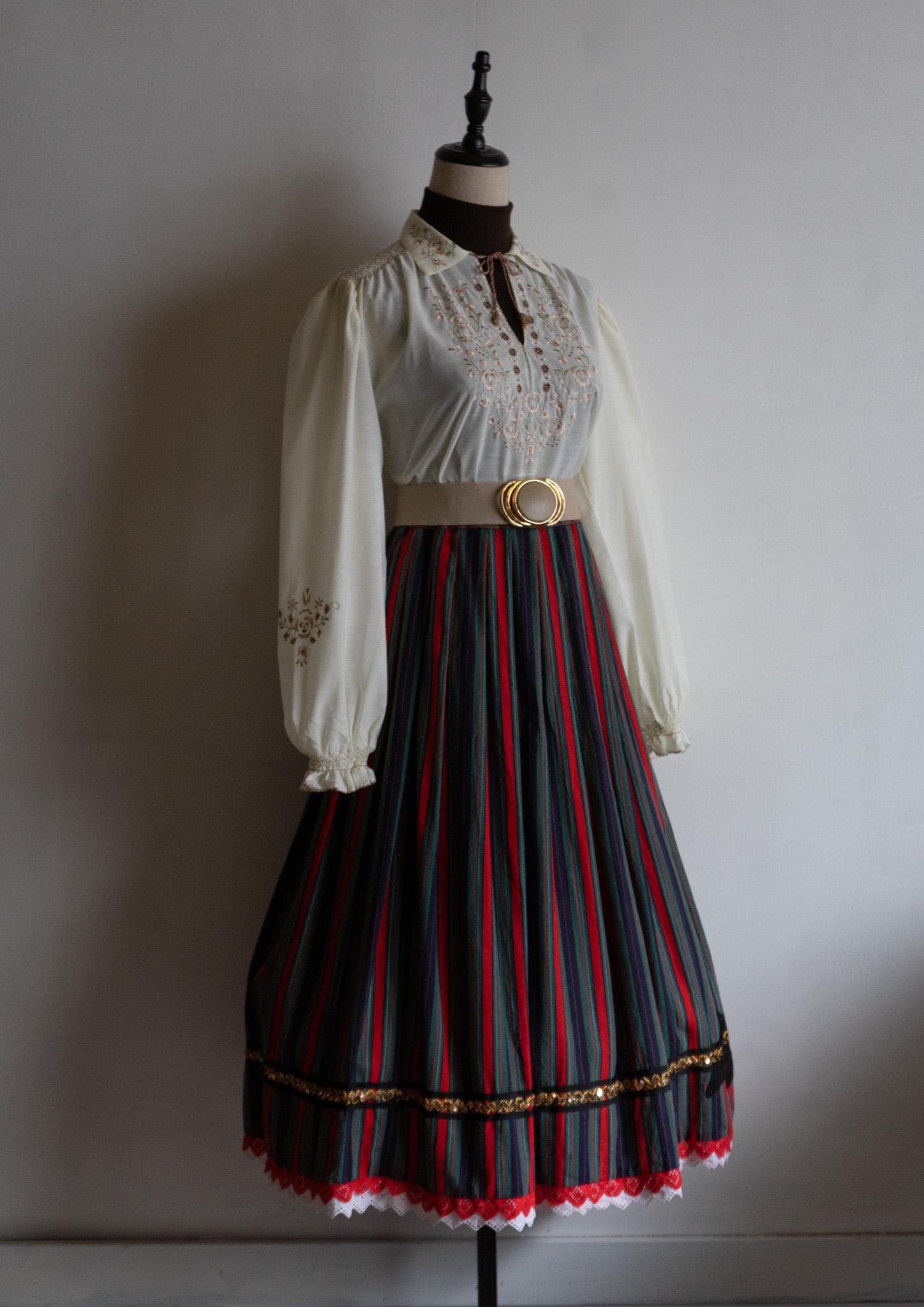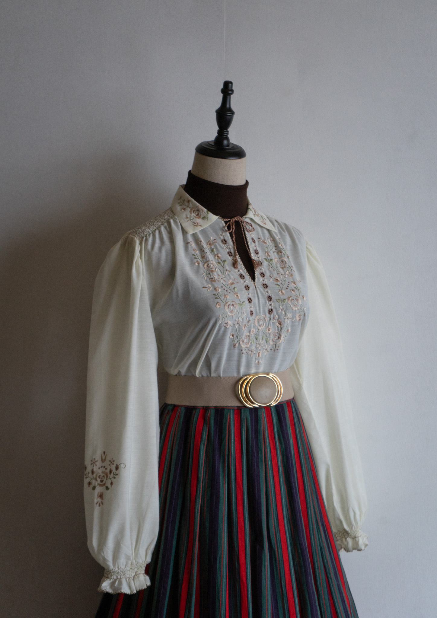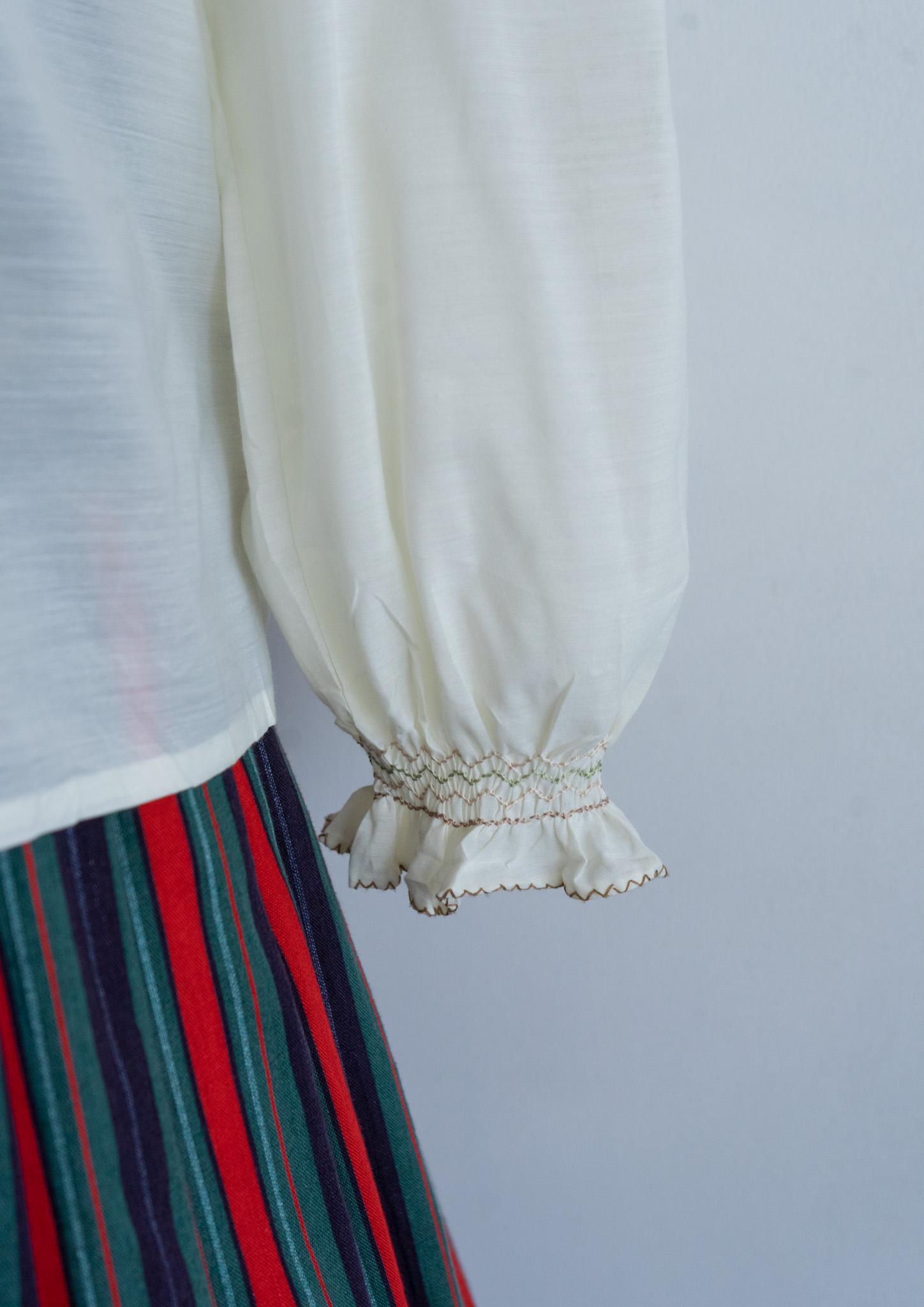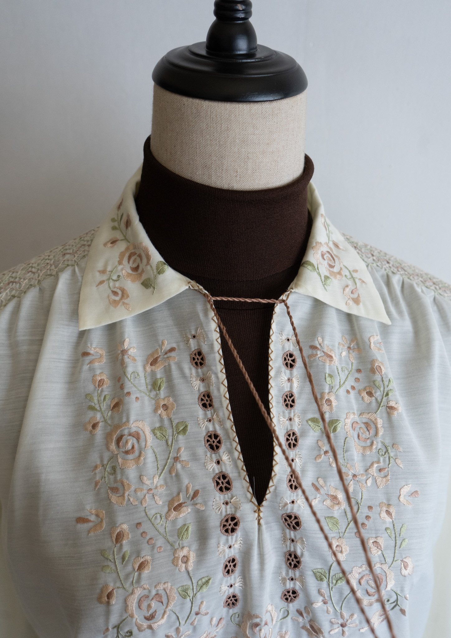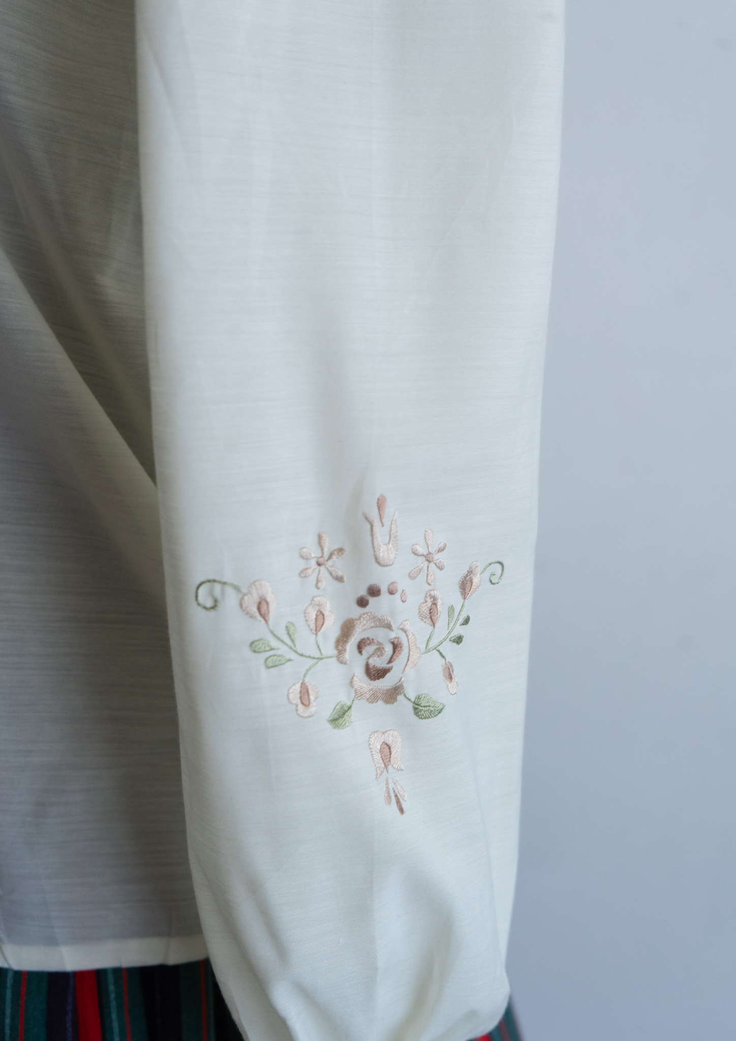 80's Flower Embroidery Design Off White Blouse