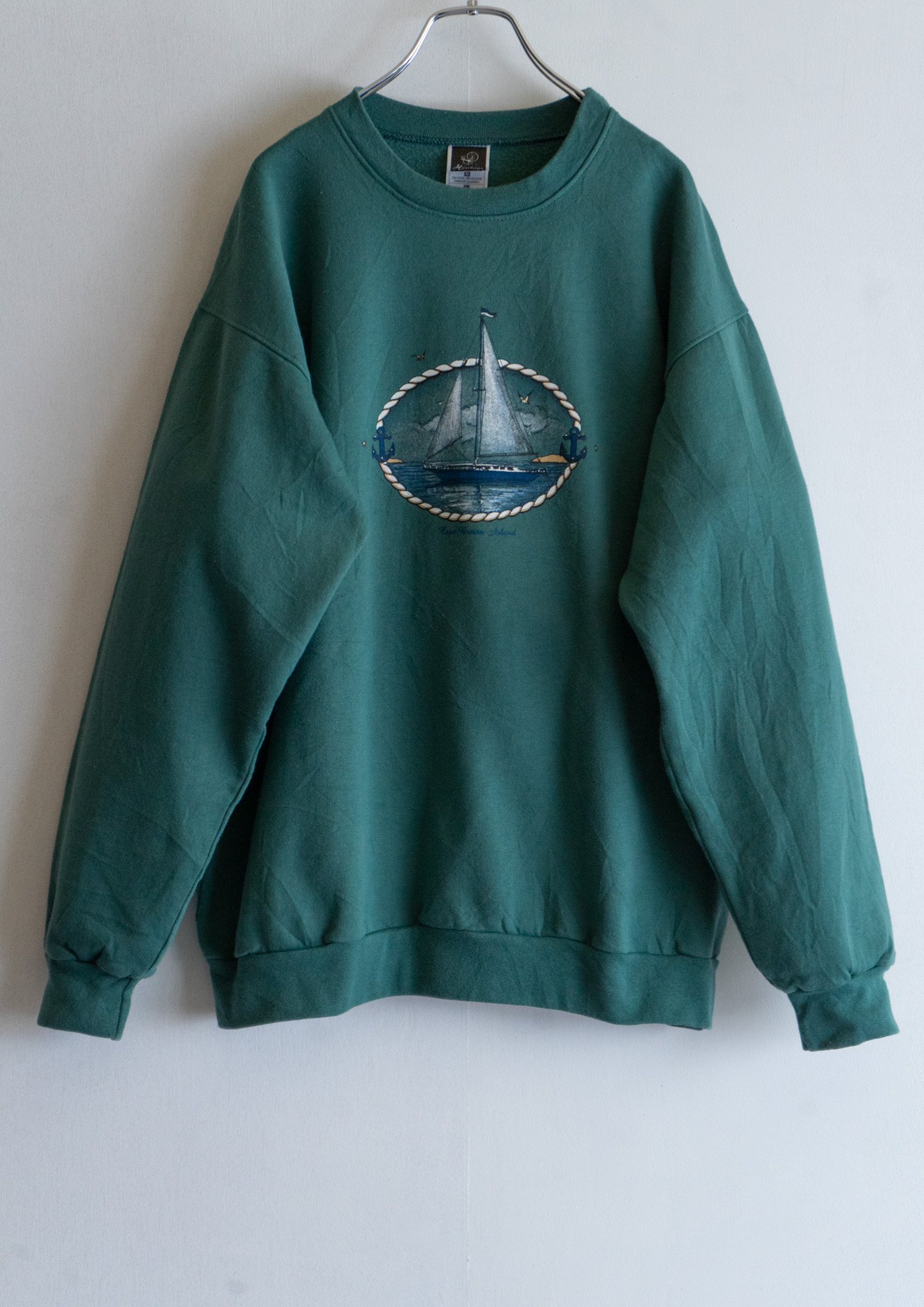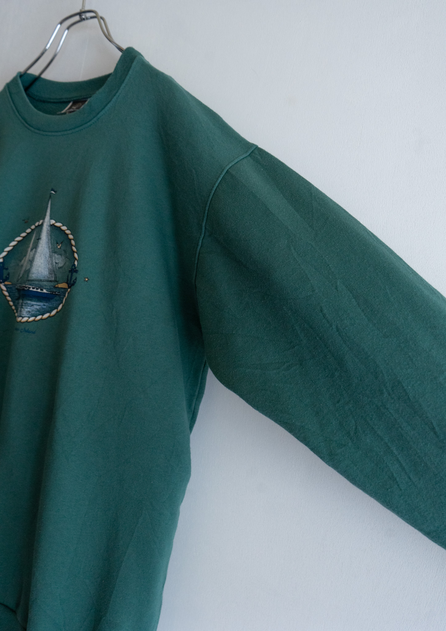 80~90's USA Hanes Three Bears Print Dark Green Sweat