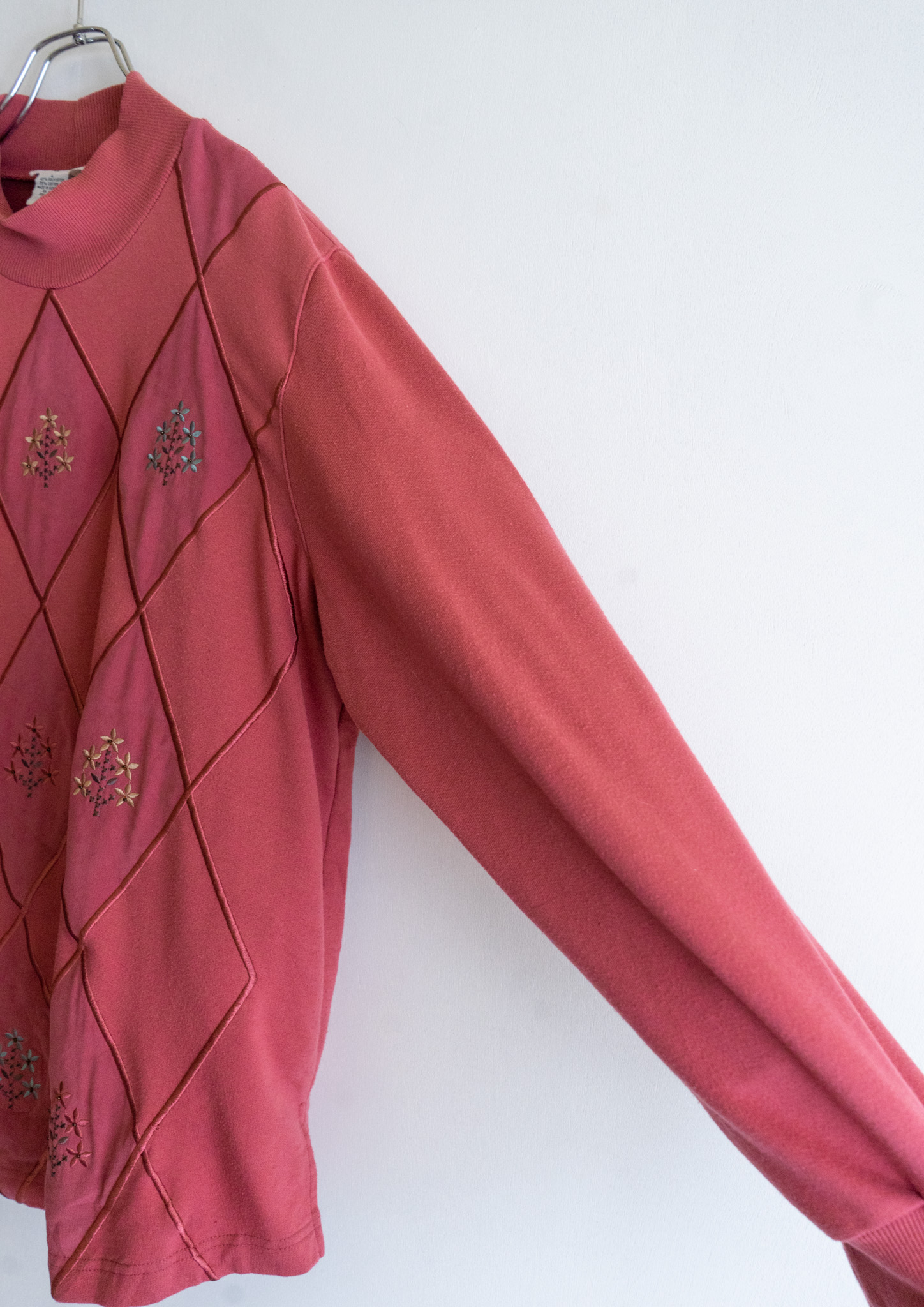 90's Diamond × Flower Embroidery Smoky Pink Swaet