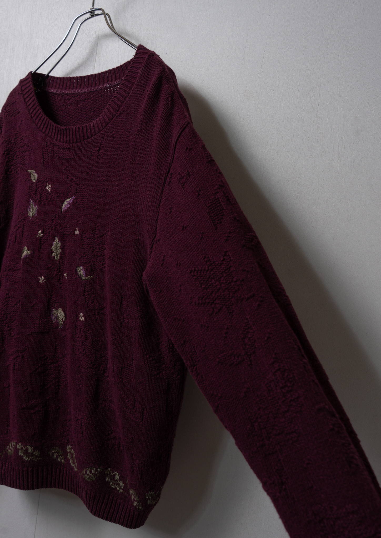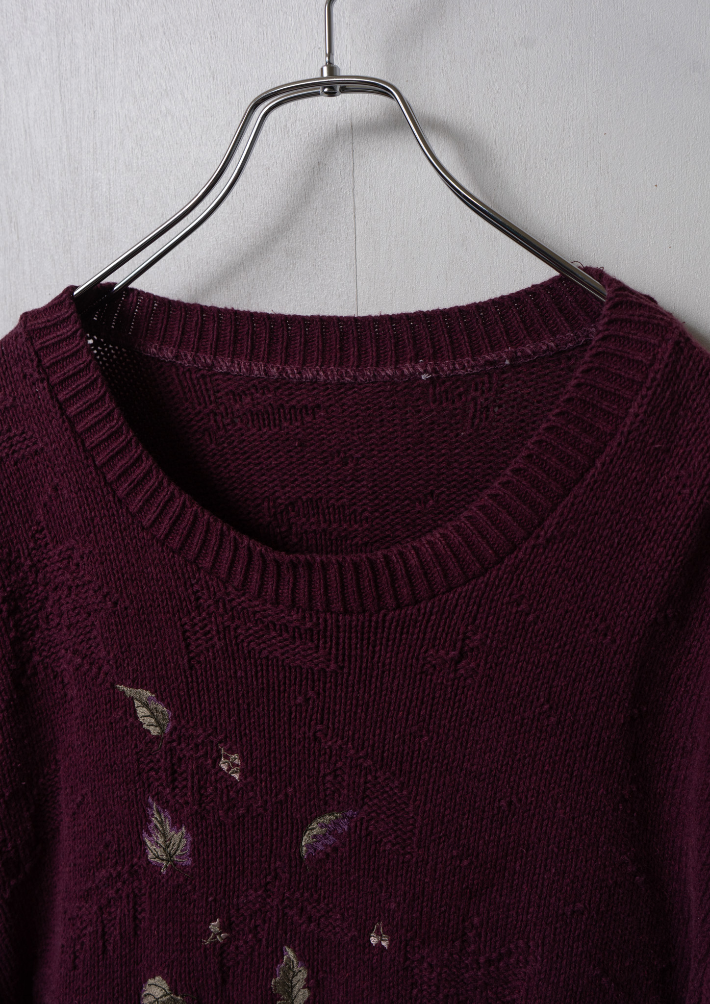 90's Wreath × Bird Embroidery Heart Pattern Navy Sweater