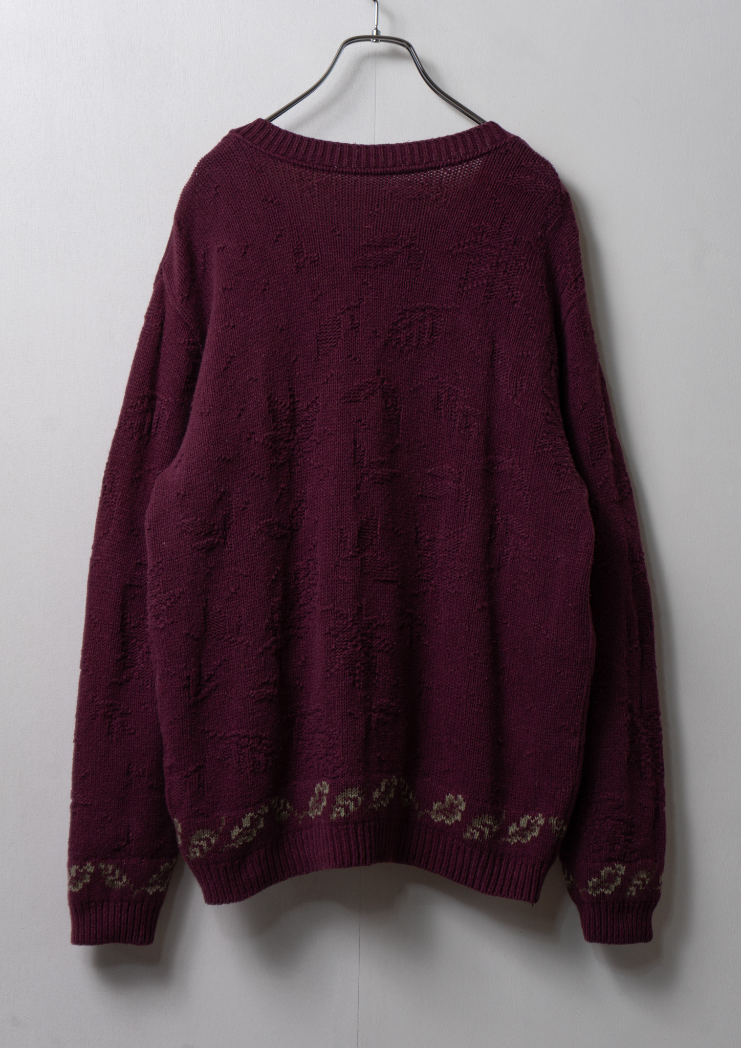 80~90's Flower × Nordic Pattern Smoky Yellow Sweater