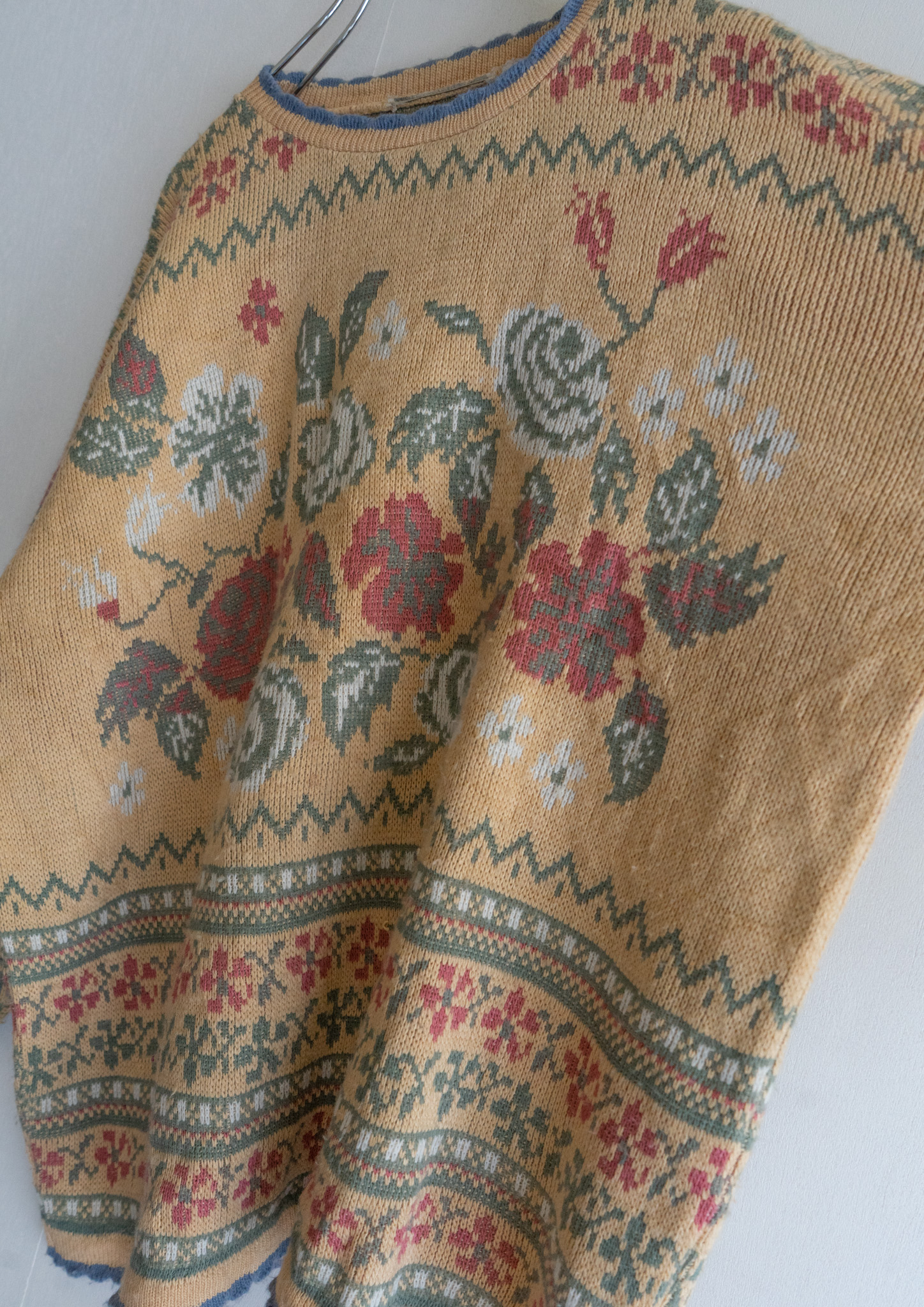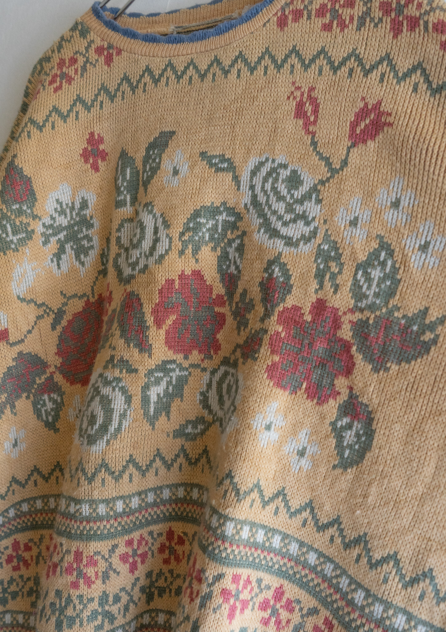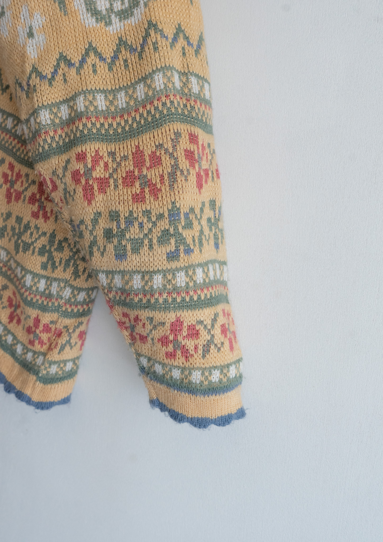 80~90's Flower × Nordic Pattern Smoky Yellow Sweater