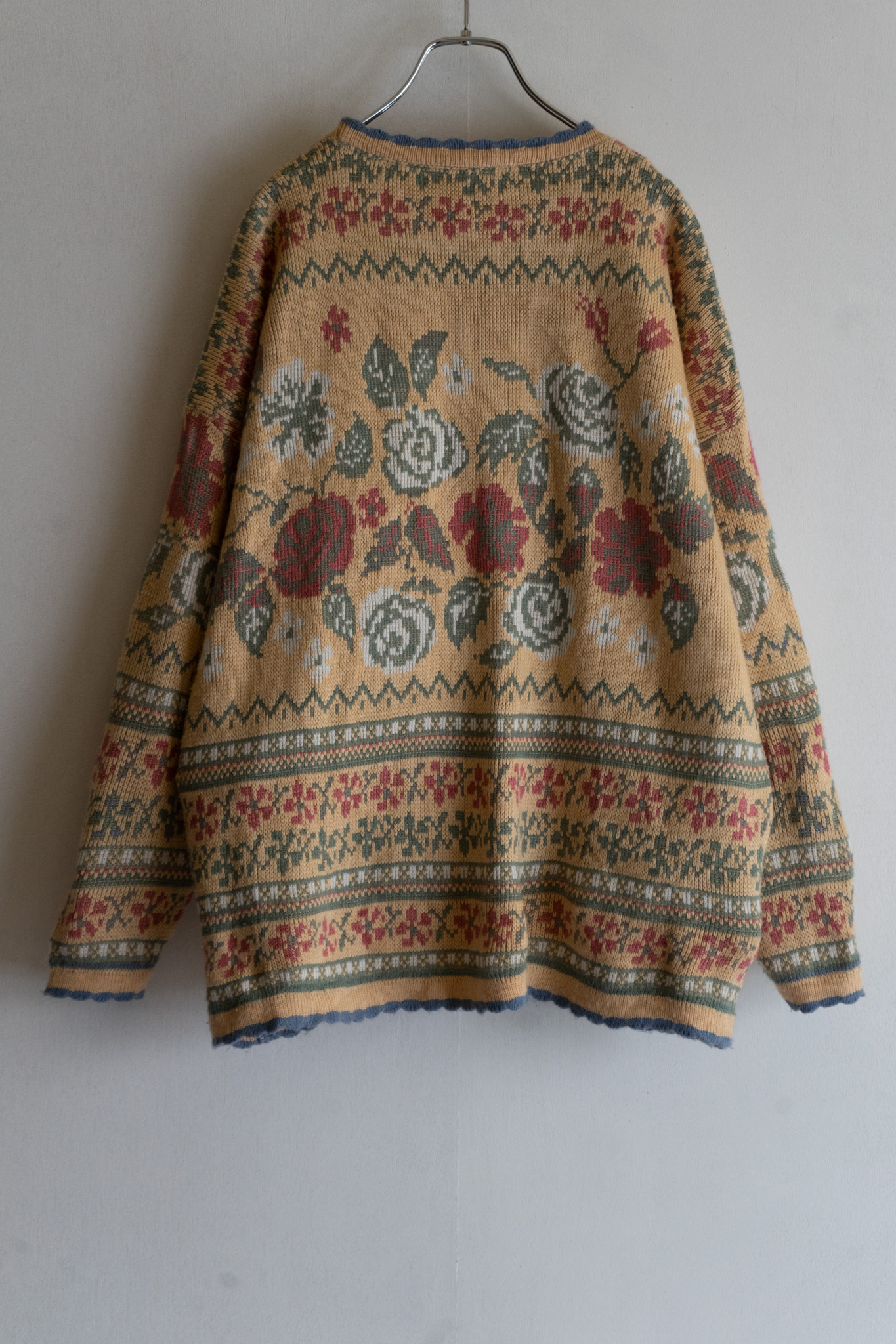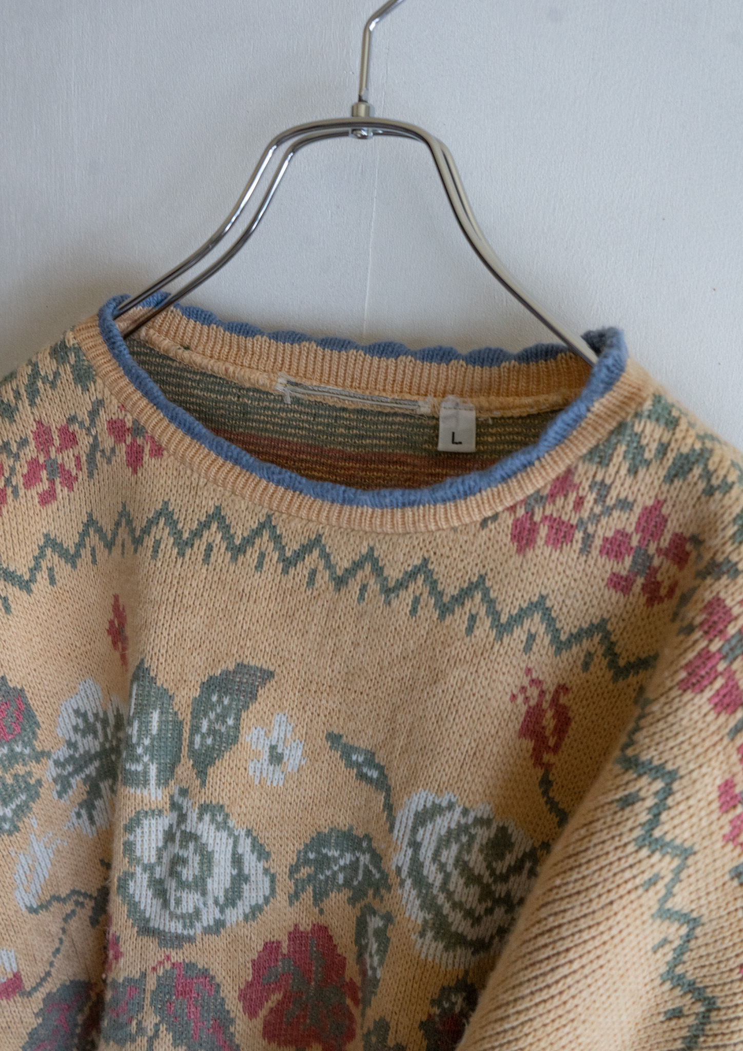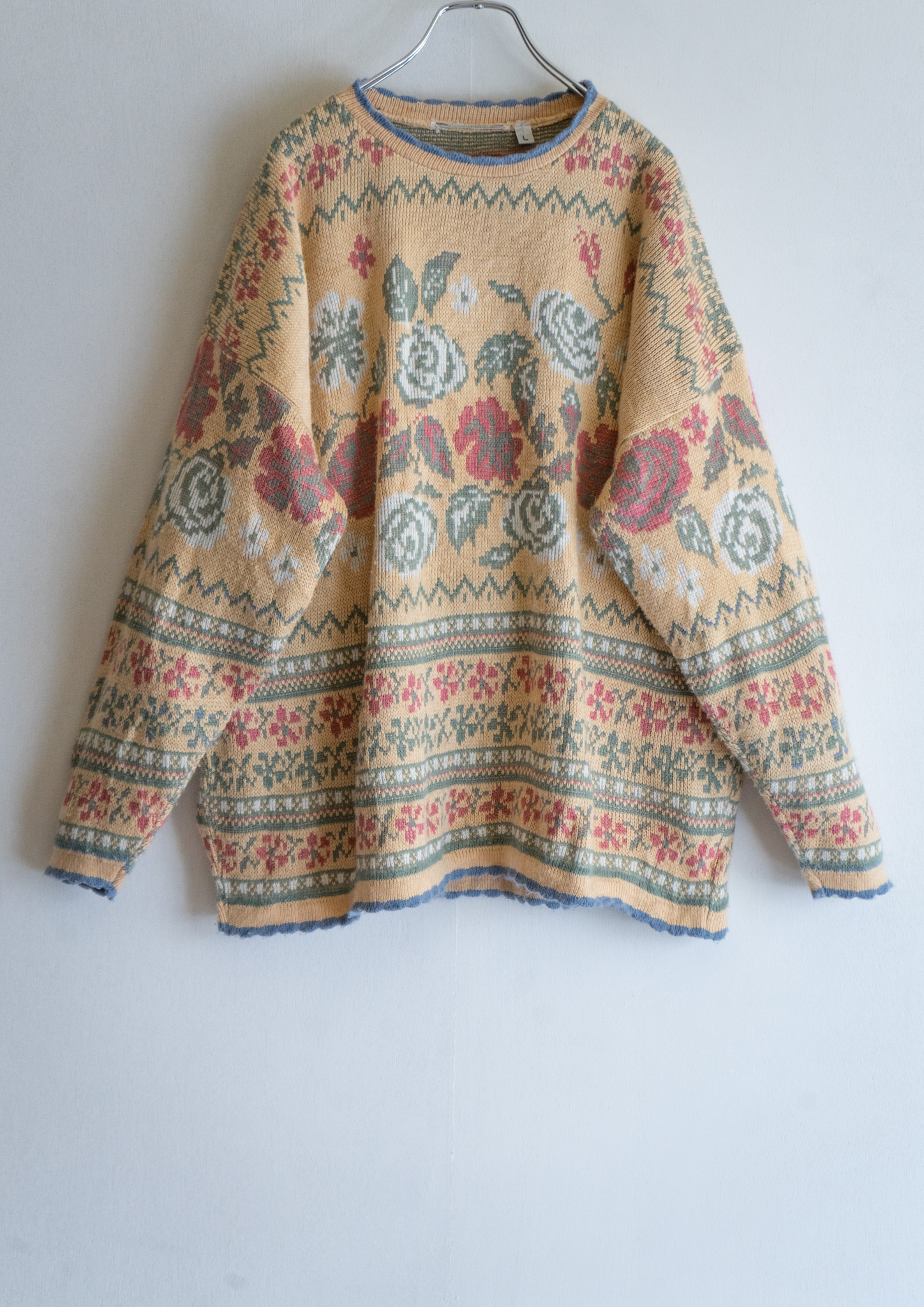 80~90's Flower × Nordic Pattern Smoky Yellow Sweater