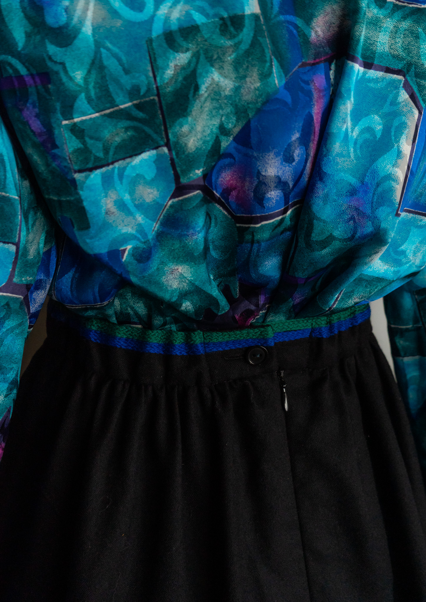 80~90's Euro Coin Chain Design Black Over dye Tyrol Skirt
