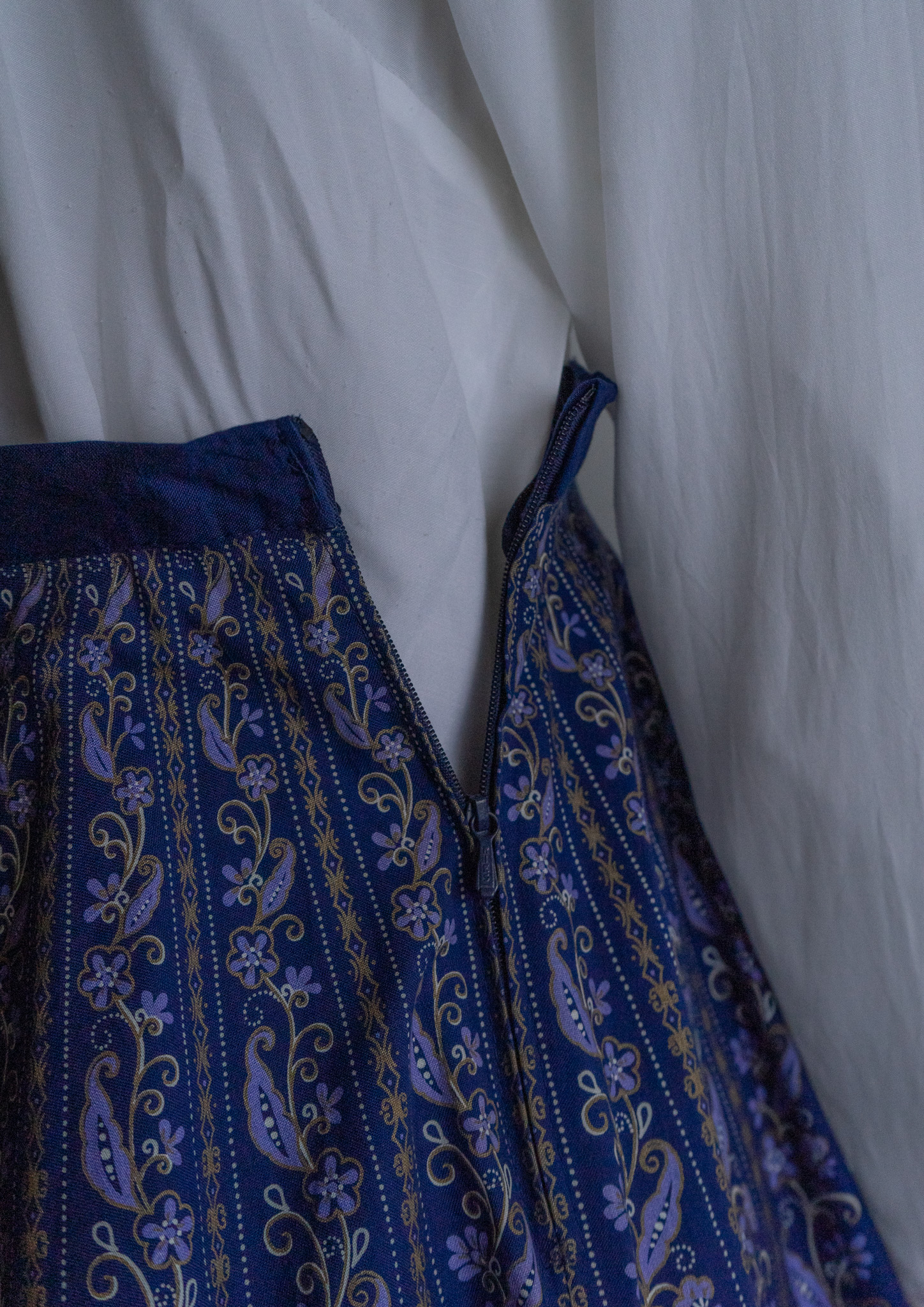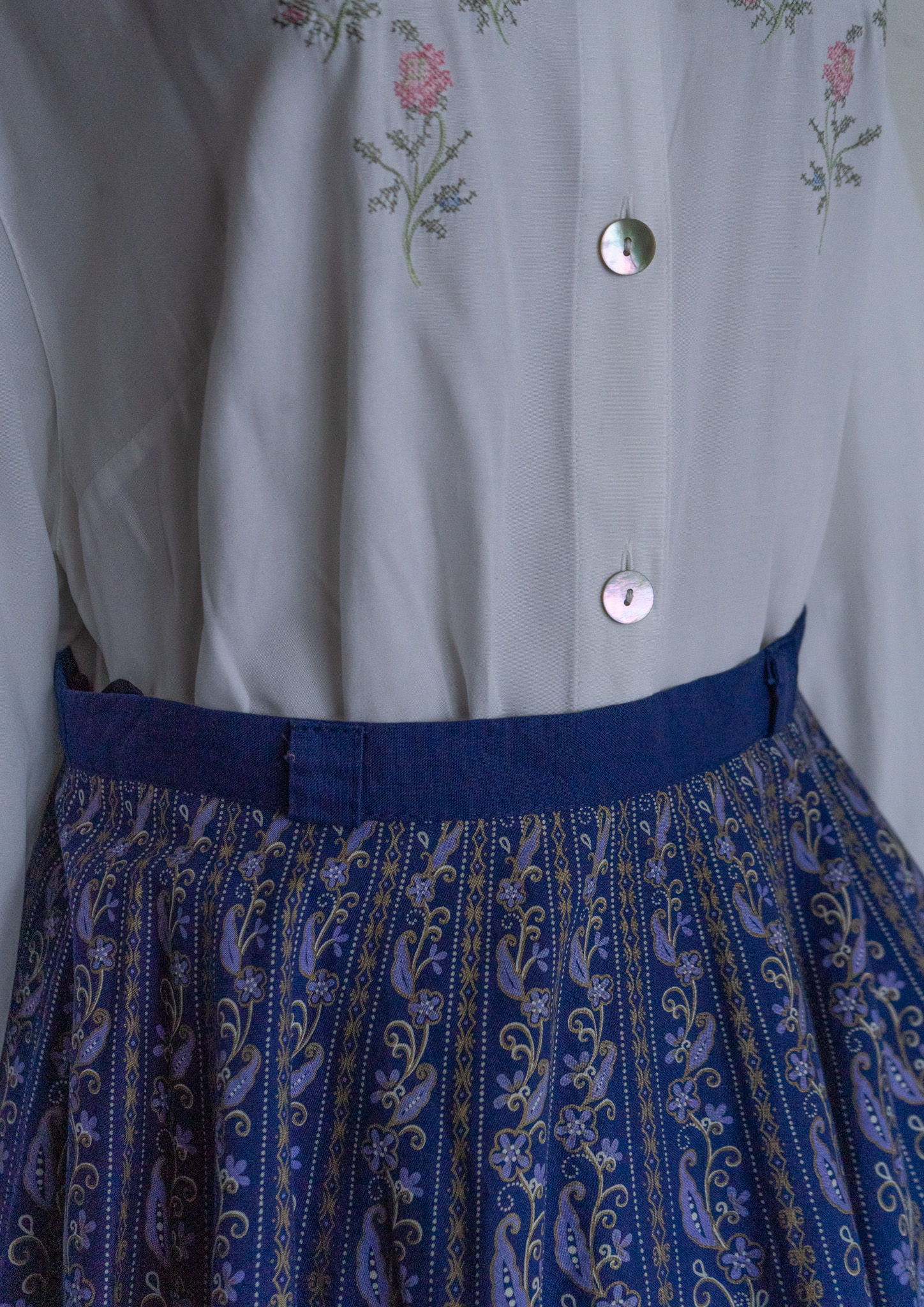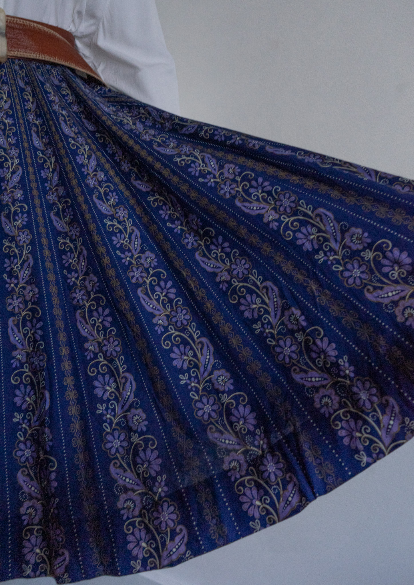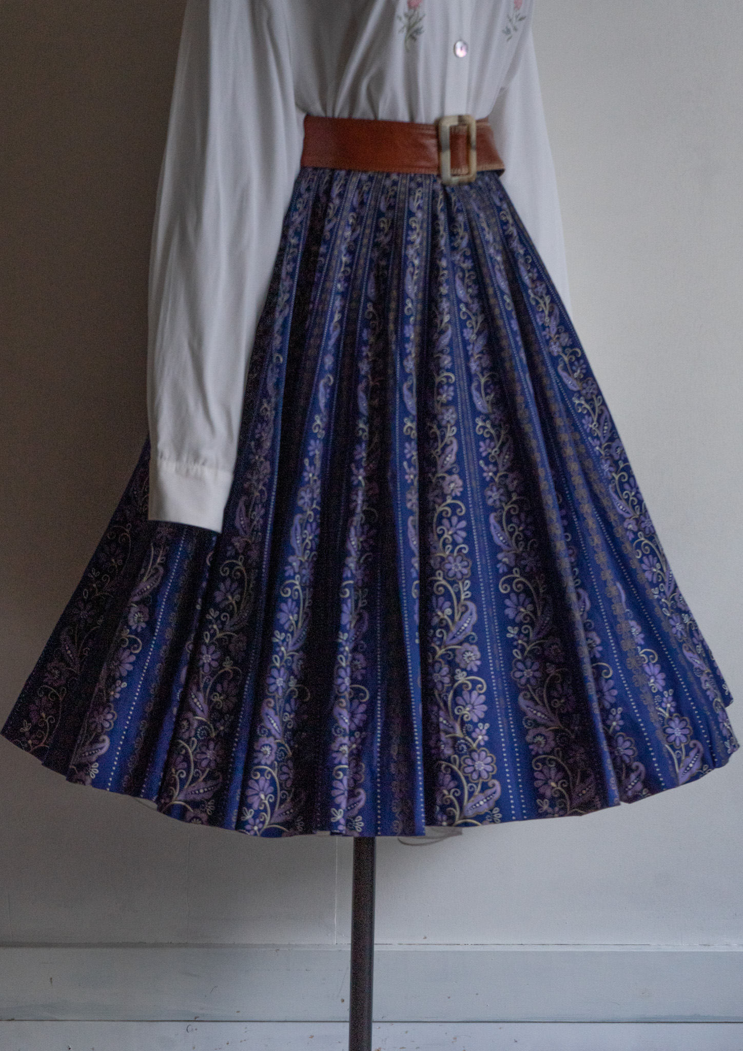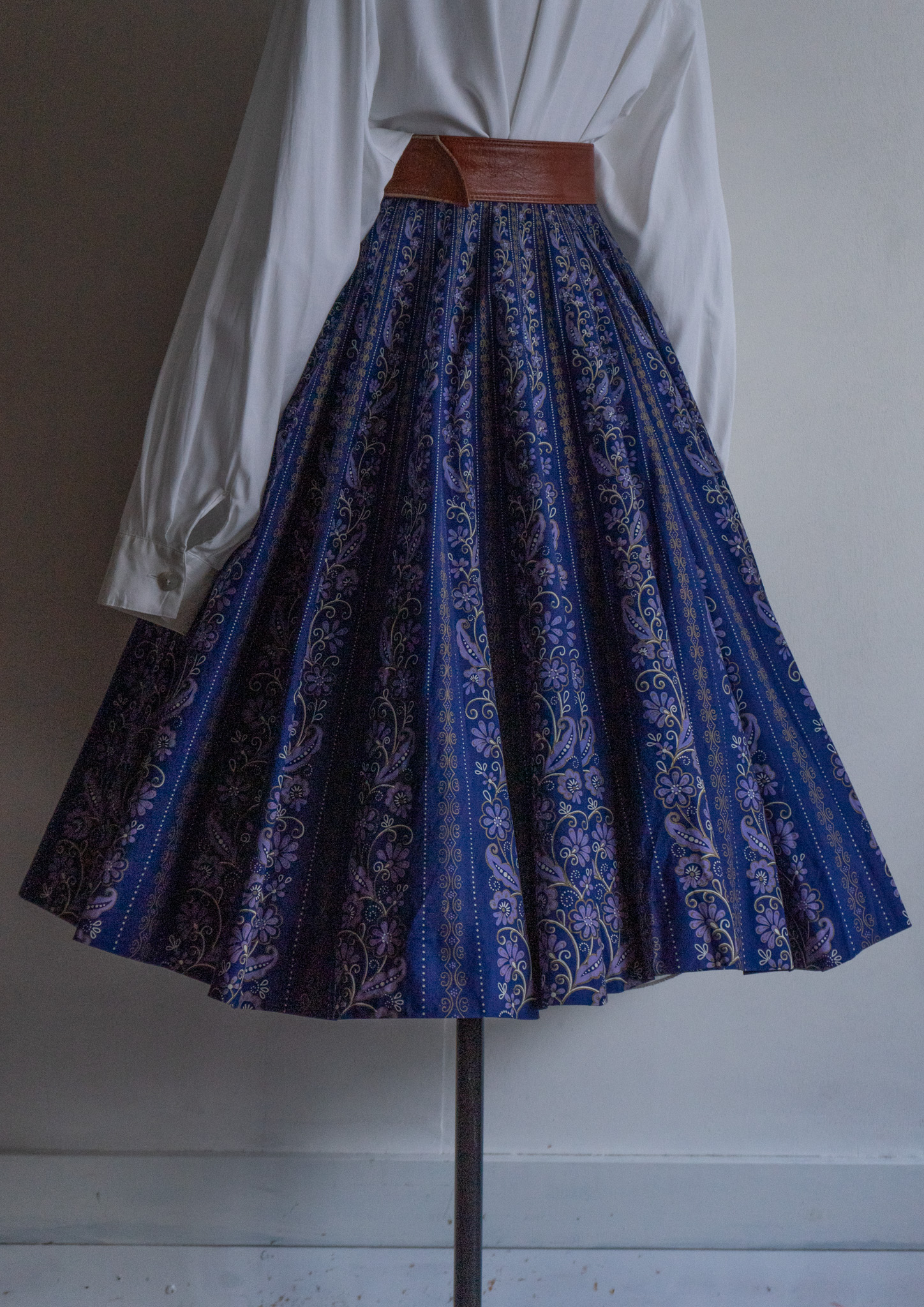 90's Botanical Stripe Pattern Navy Tyrol Skirt