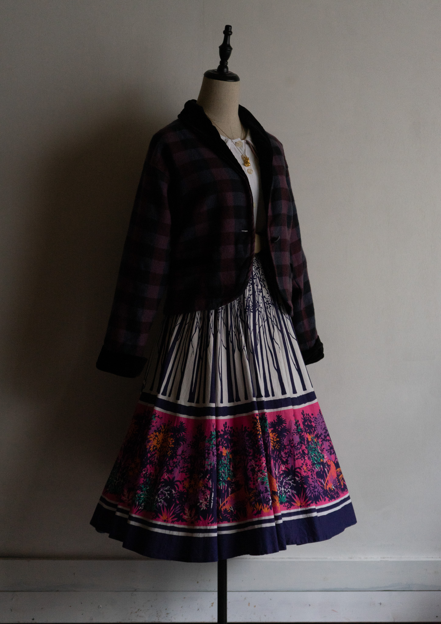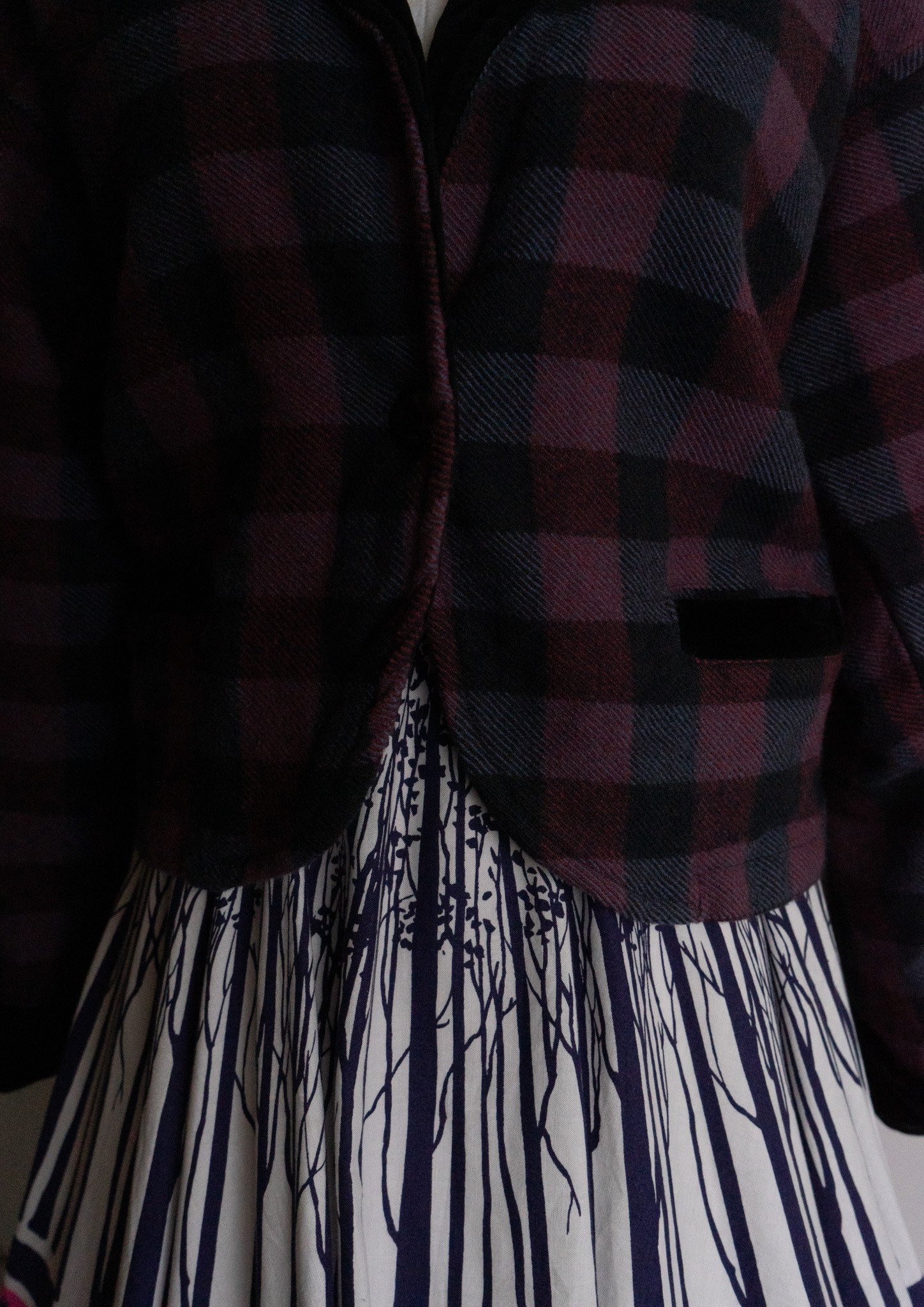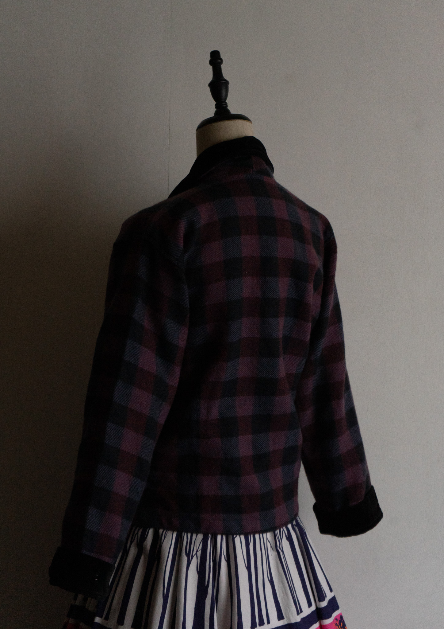 80's Red × Blue Check Pattern Velour Collar Jacket