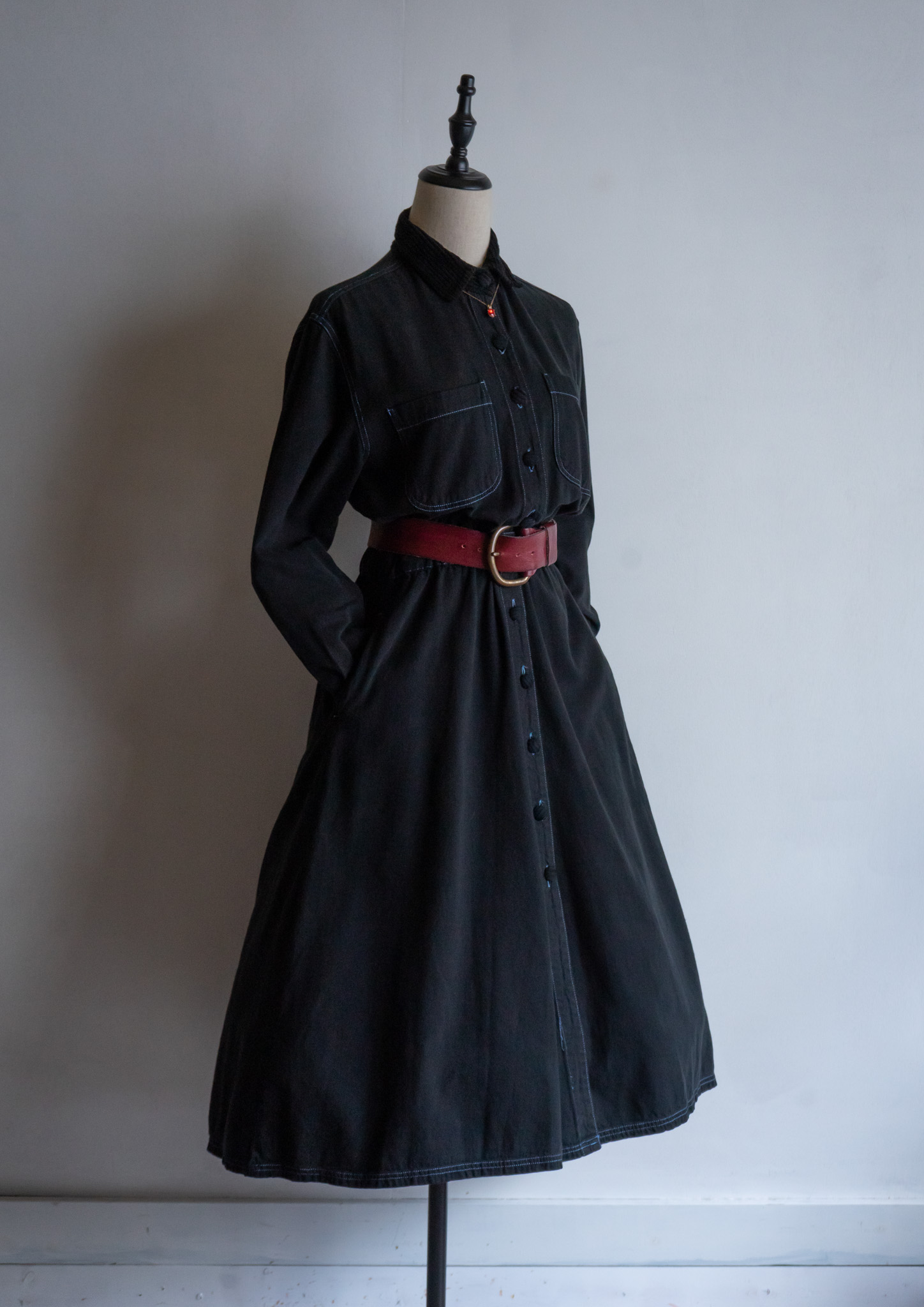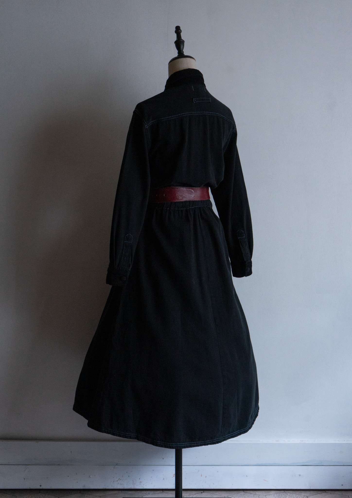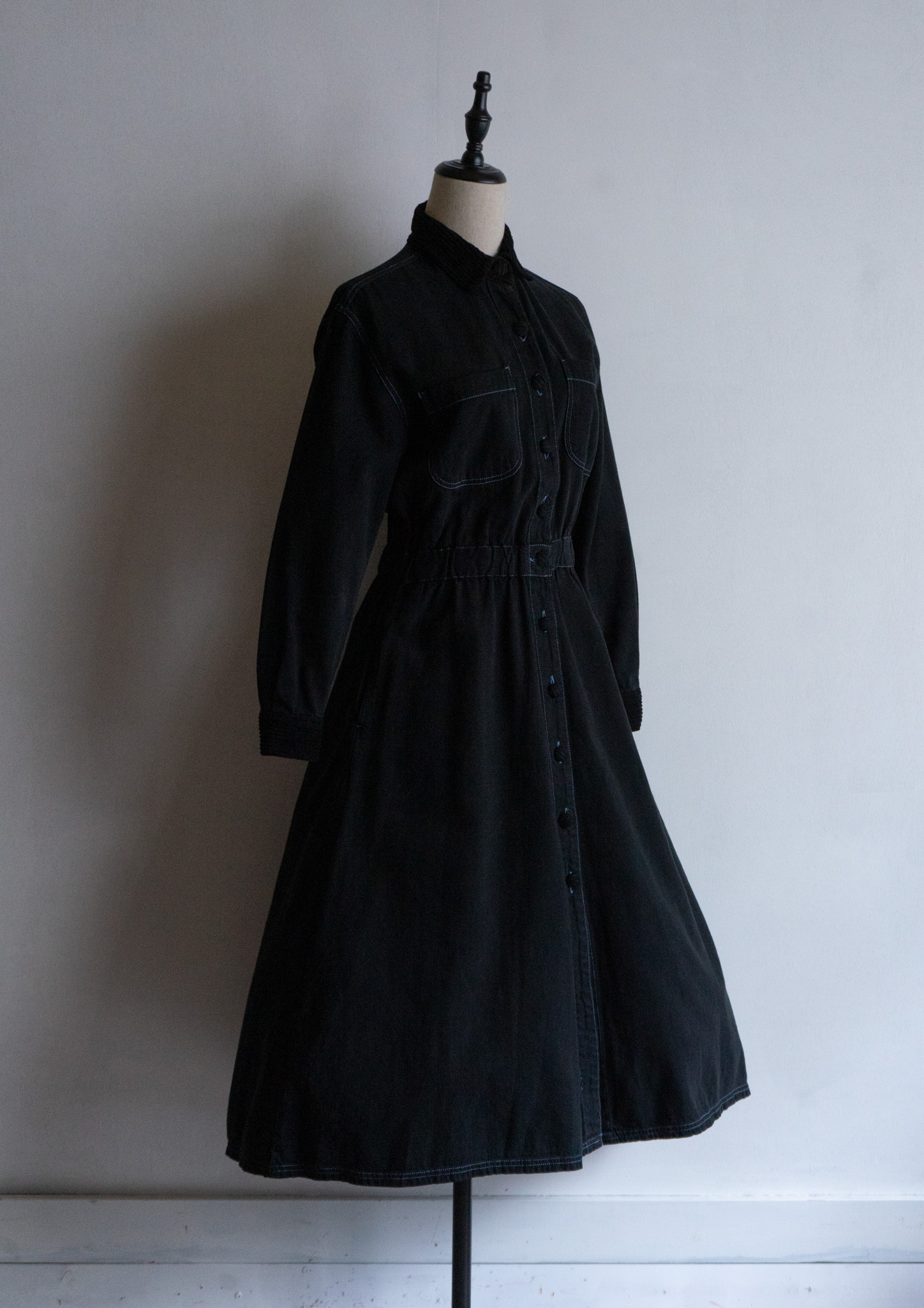 90's Blue Stitch Black Over dye Denim Shirts Dress