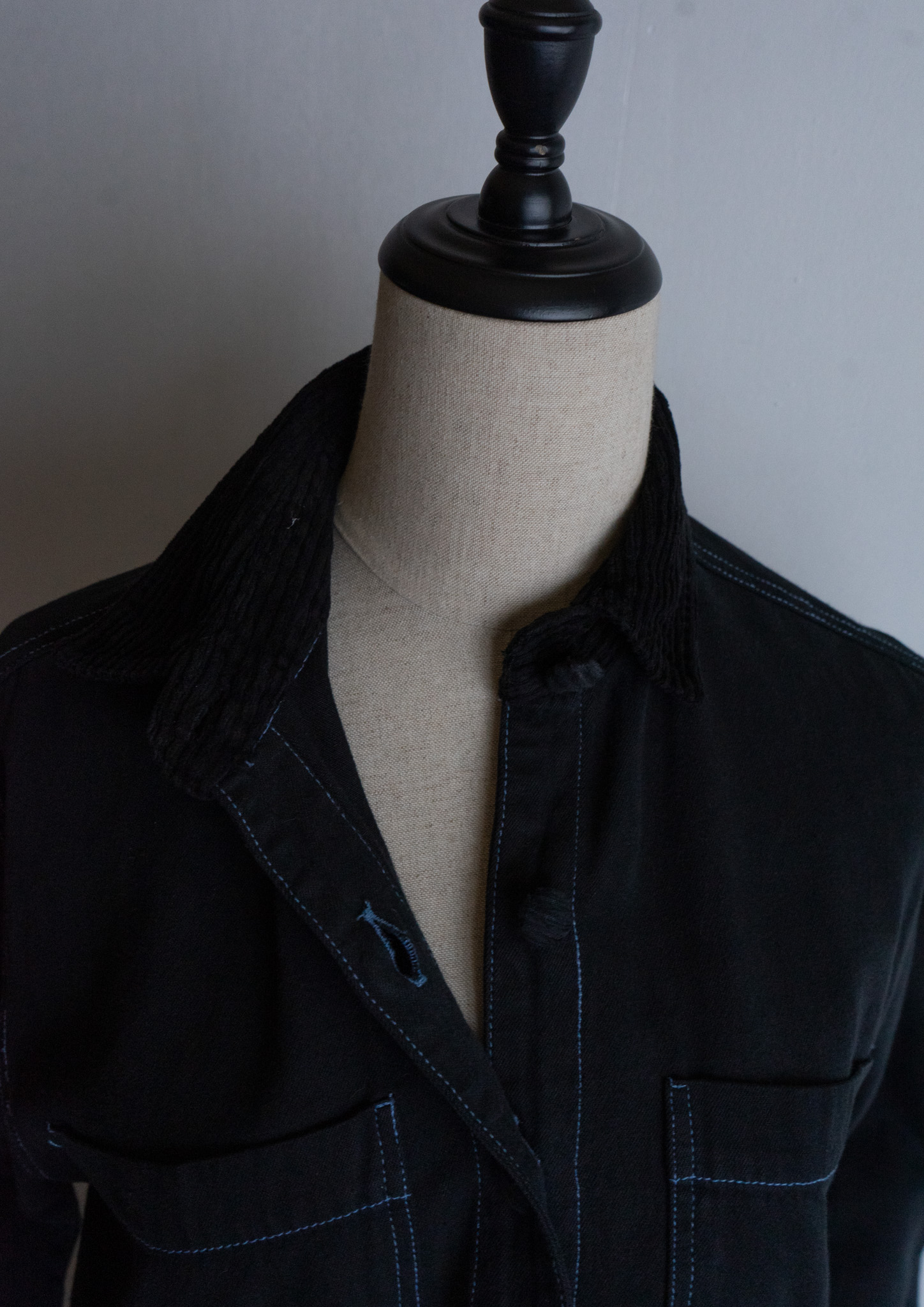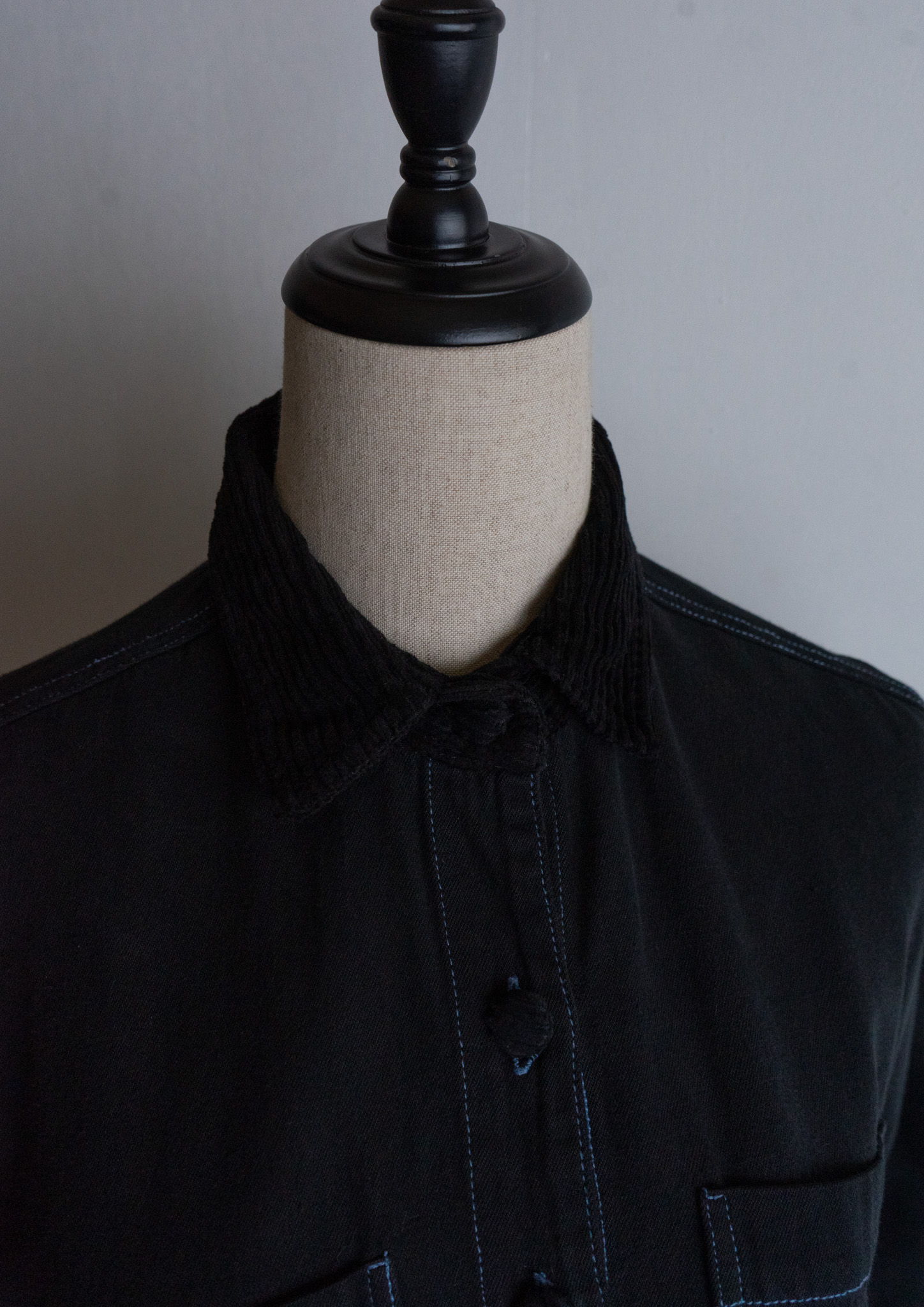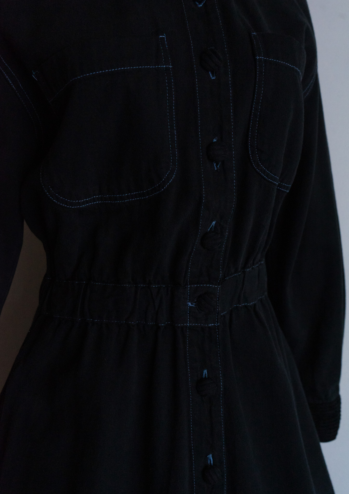90's Blue Stitch Black Over dye Denim Shirts Dress