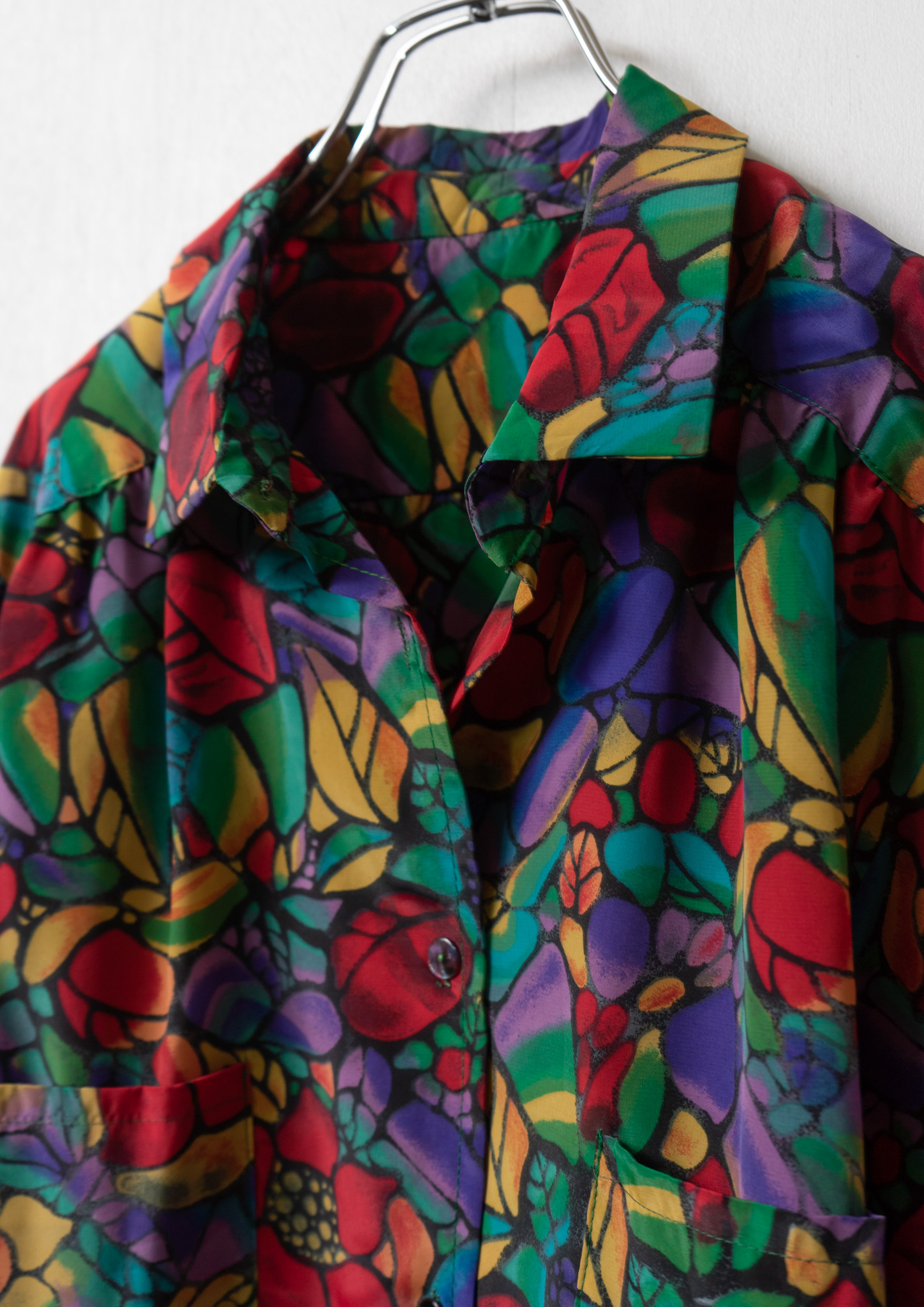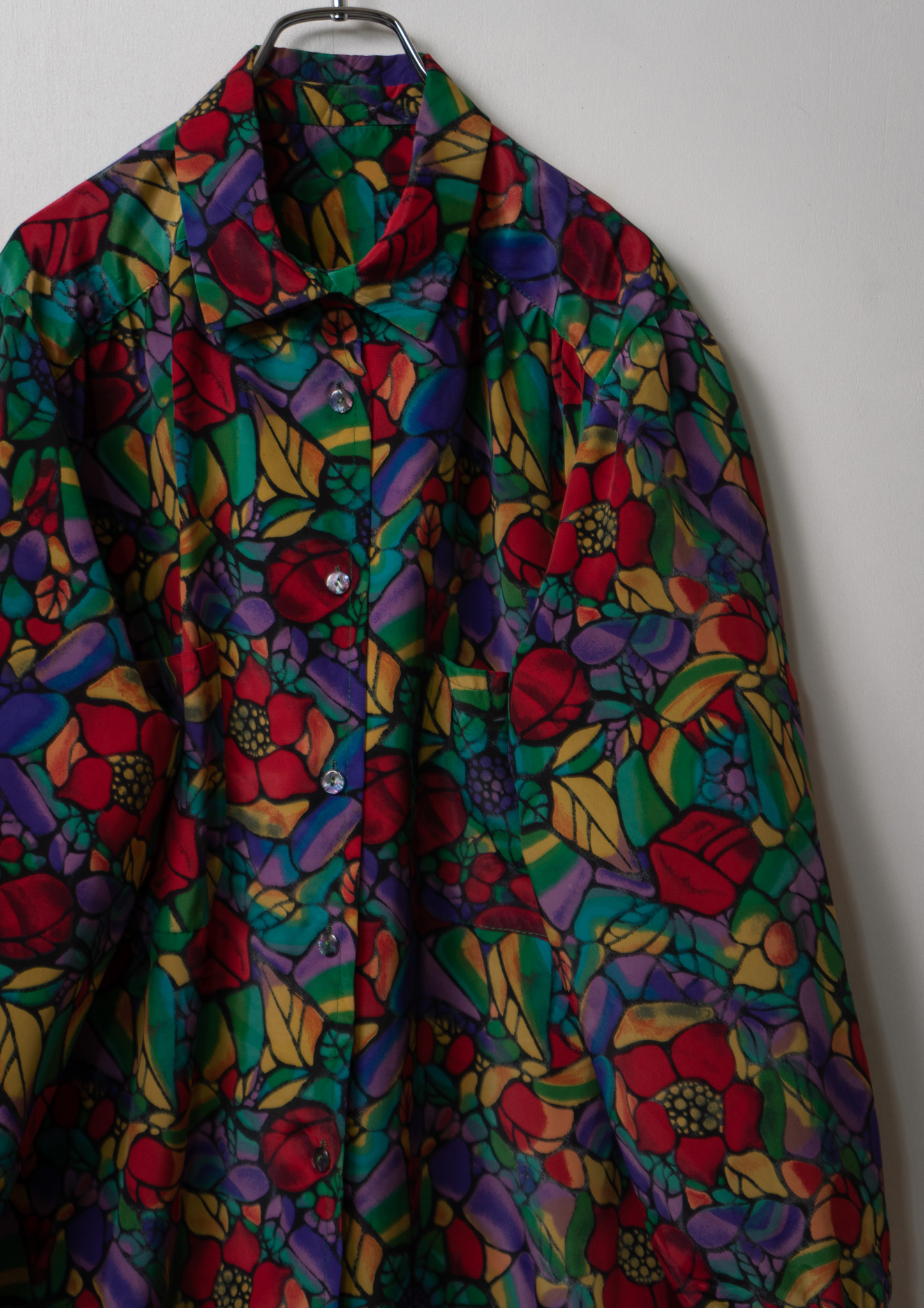 80's Euro Point Velor Design Check Pattern Vivid Pink Jacket Blouse