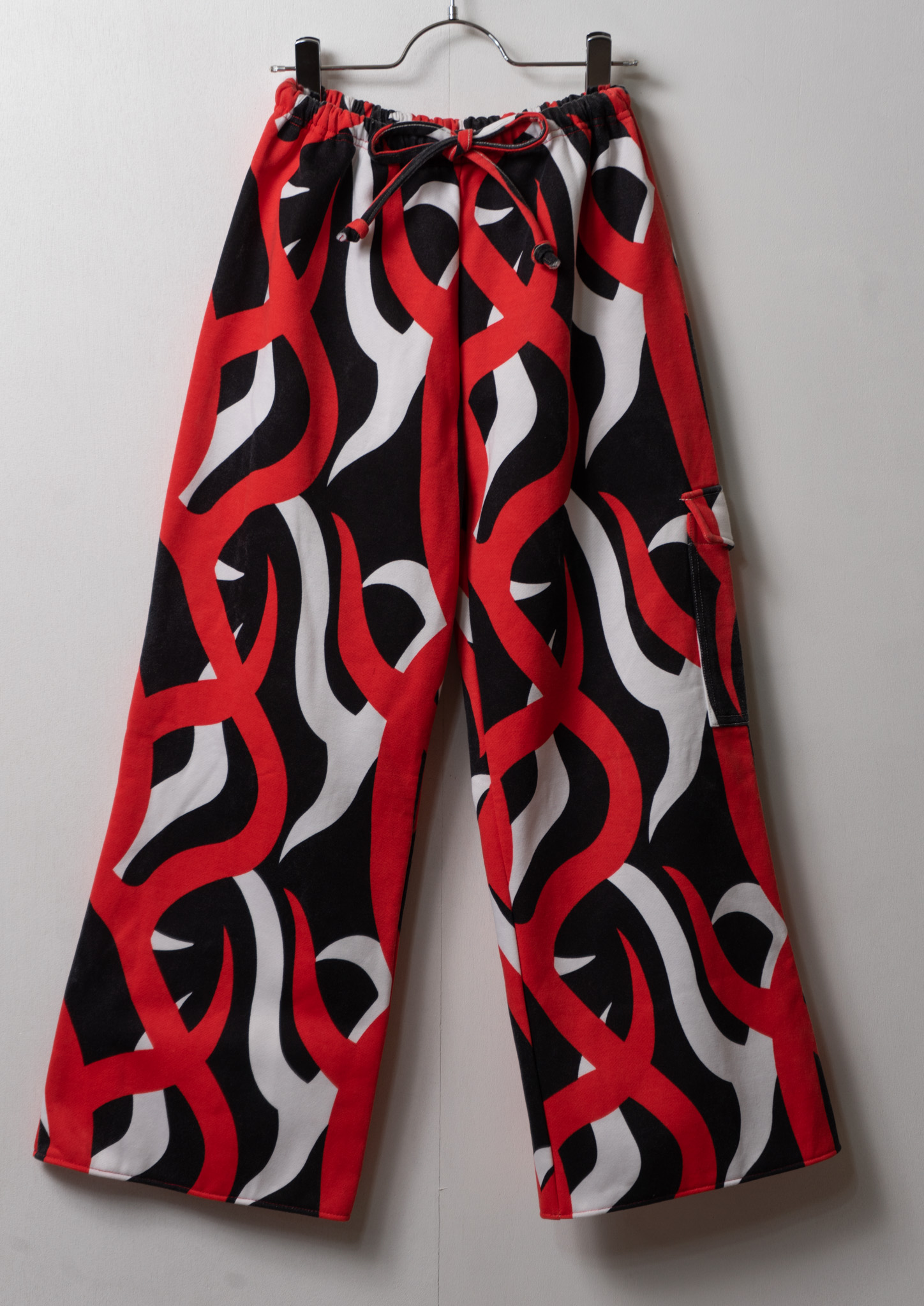 80~90's Euro White Stitch Design Black Over dye Tuck Pants