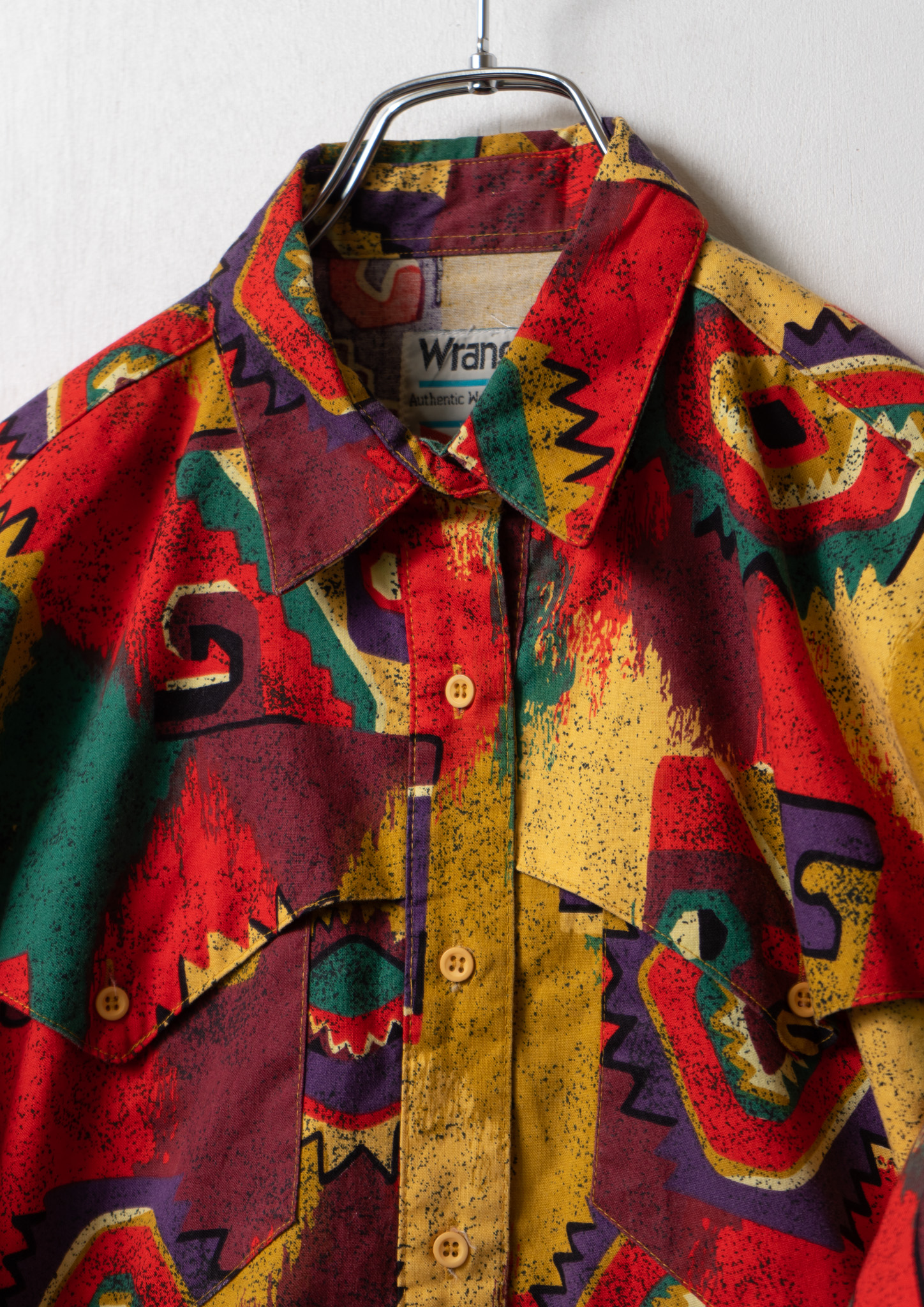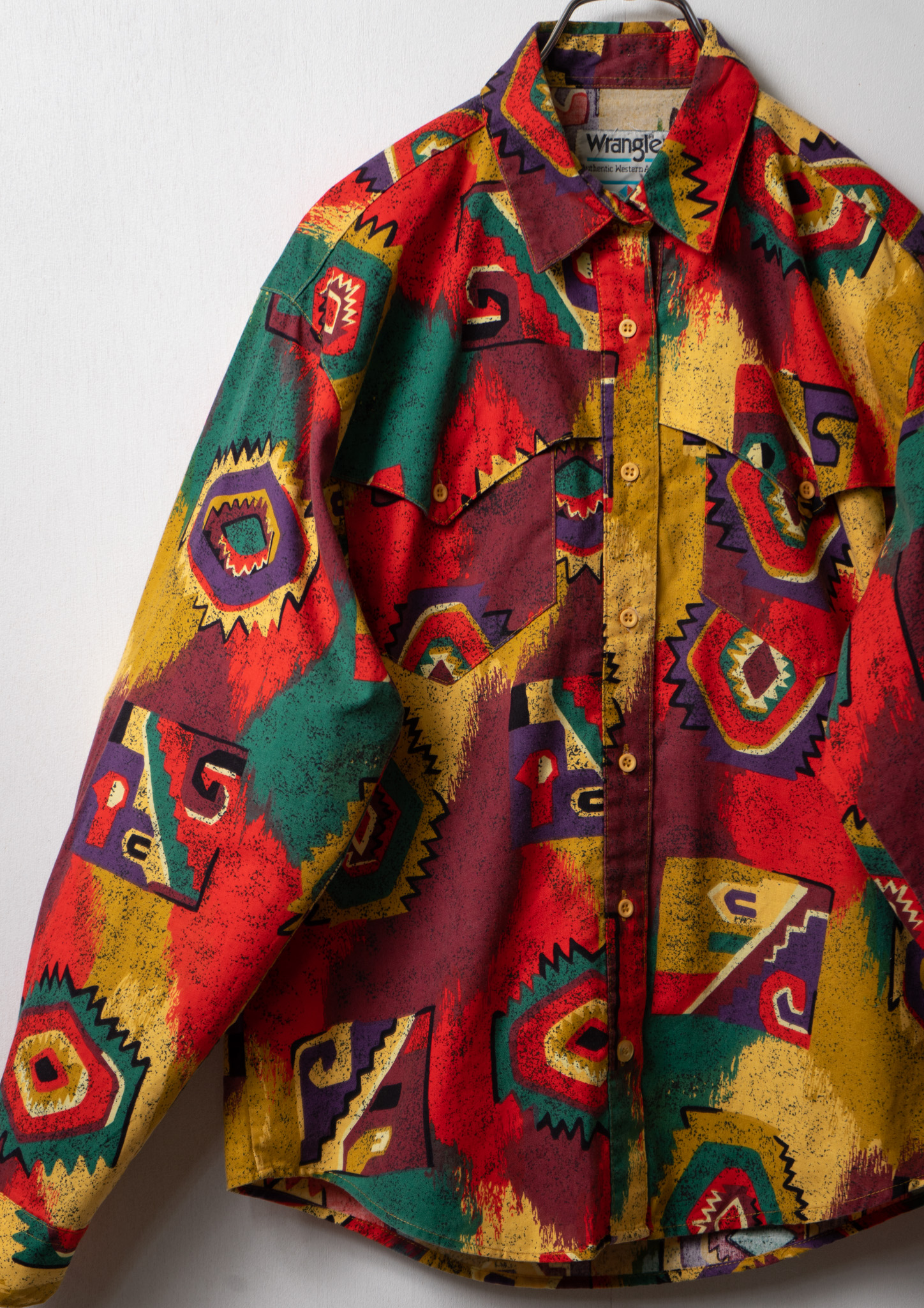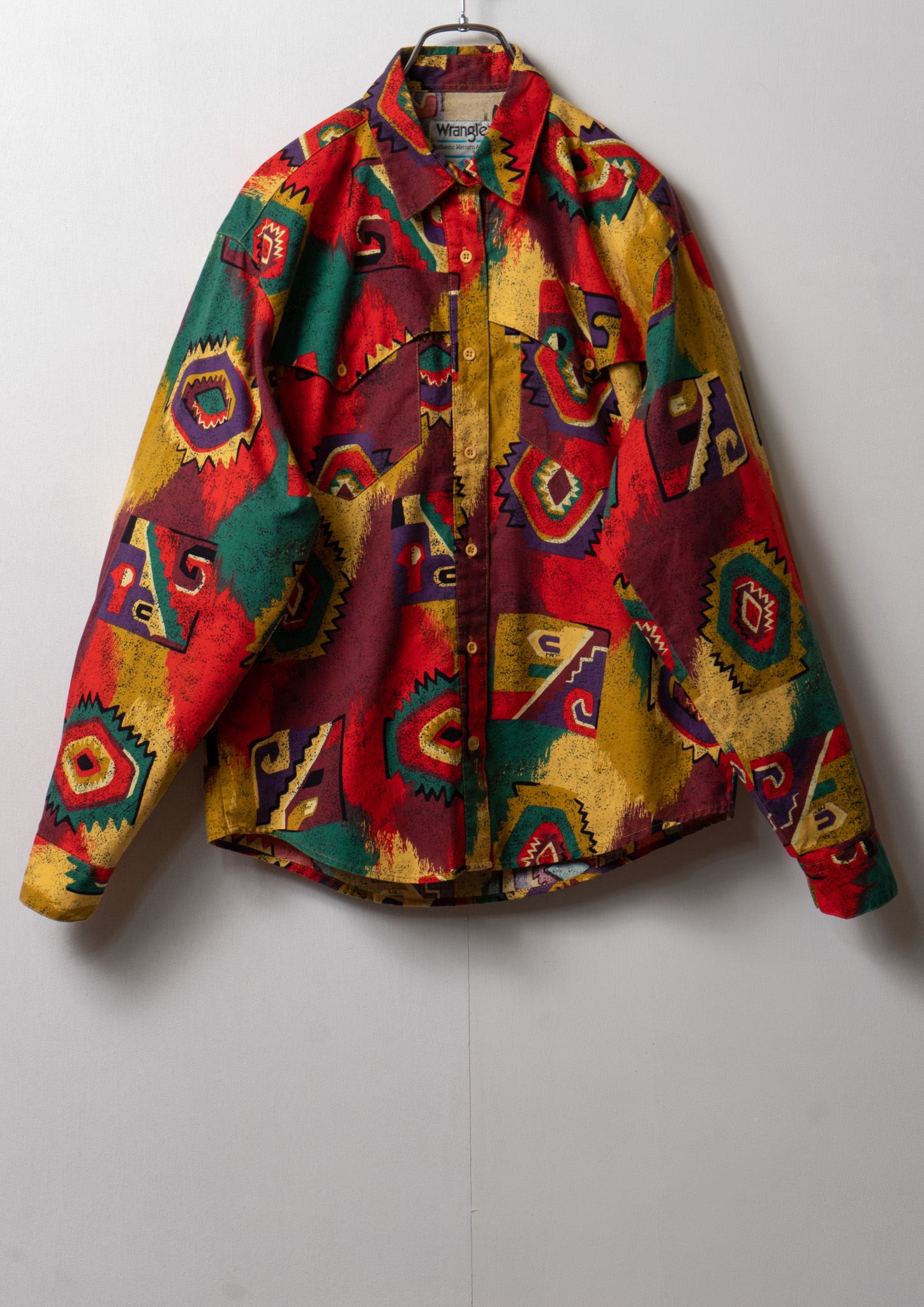80~90's Wrangler Double Pocket Design Unique Art Pattern Blouse