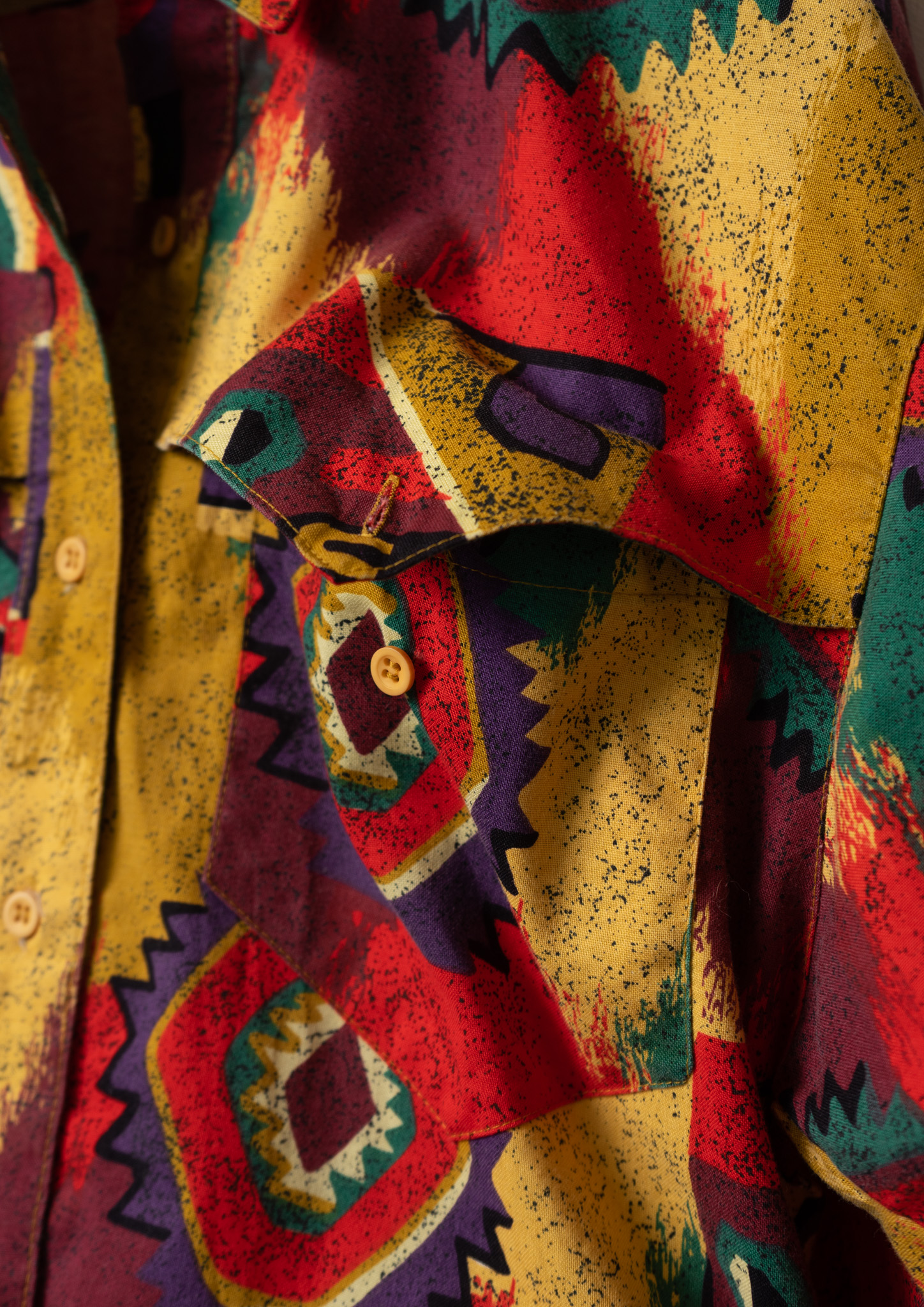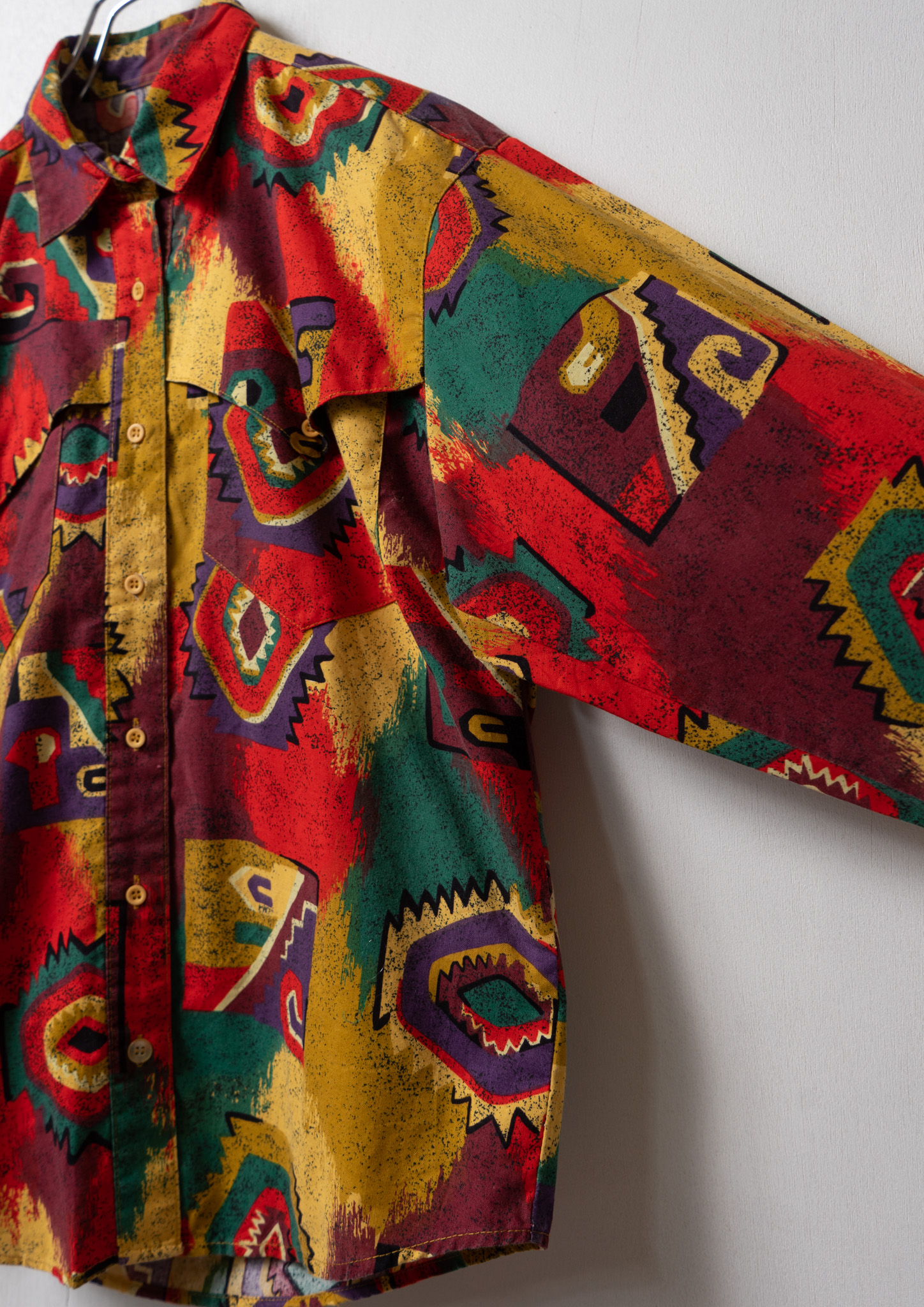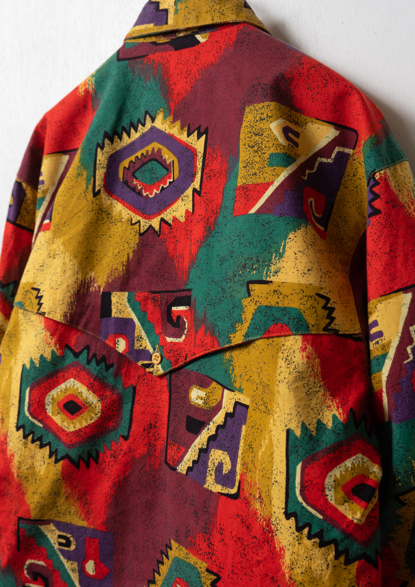 80~90's Wrangler Double Pocket Design Unique Art Pattern Blouse