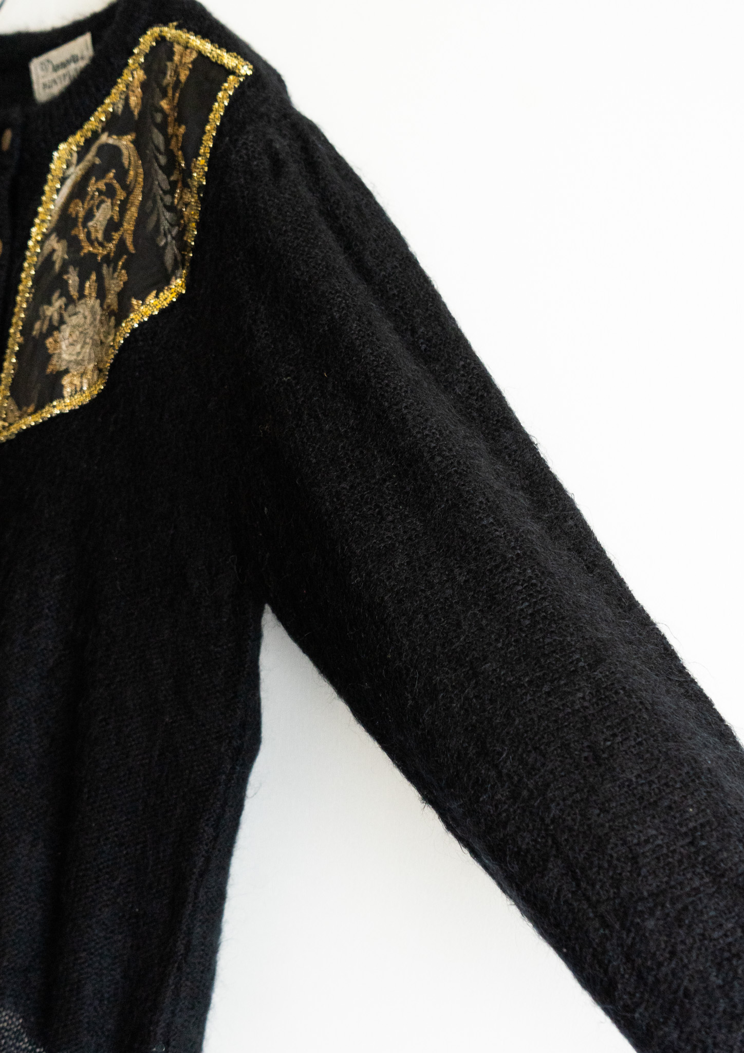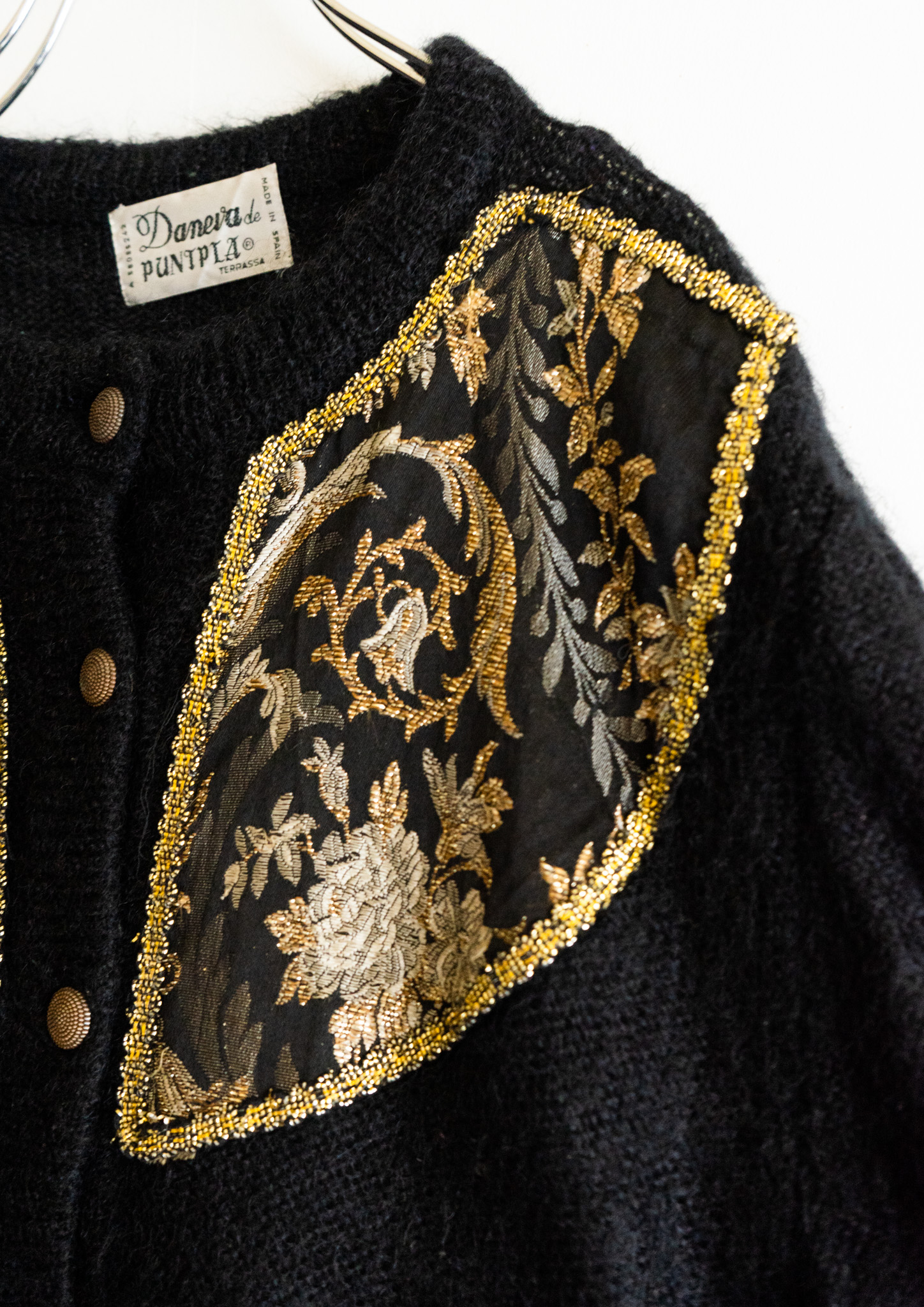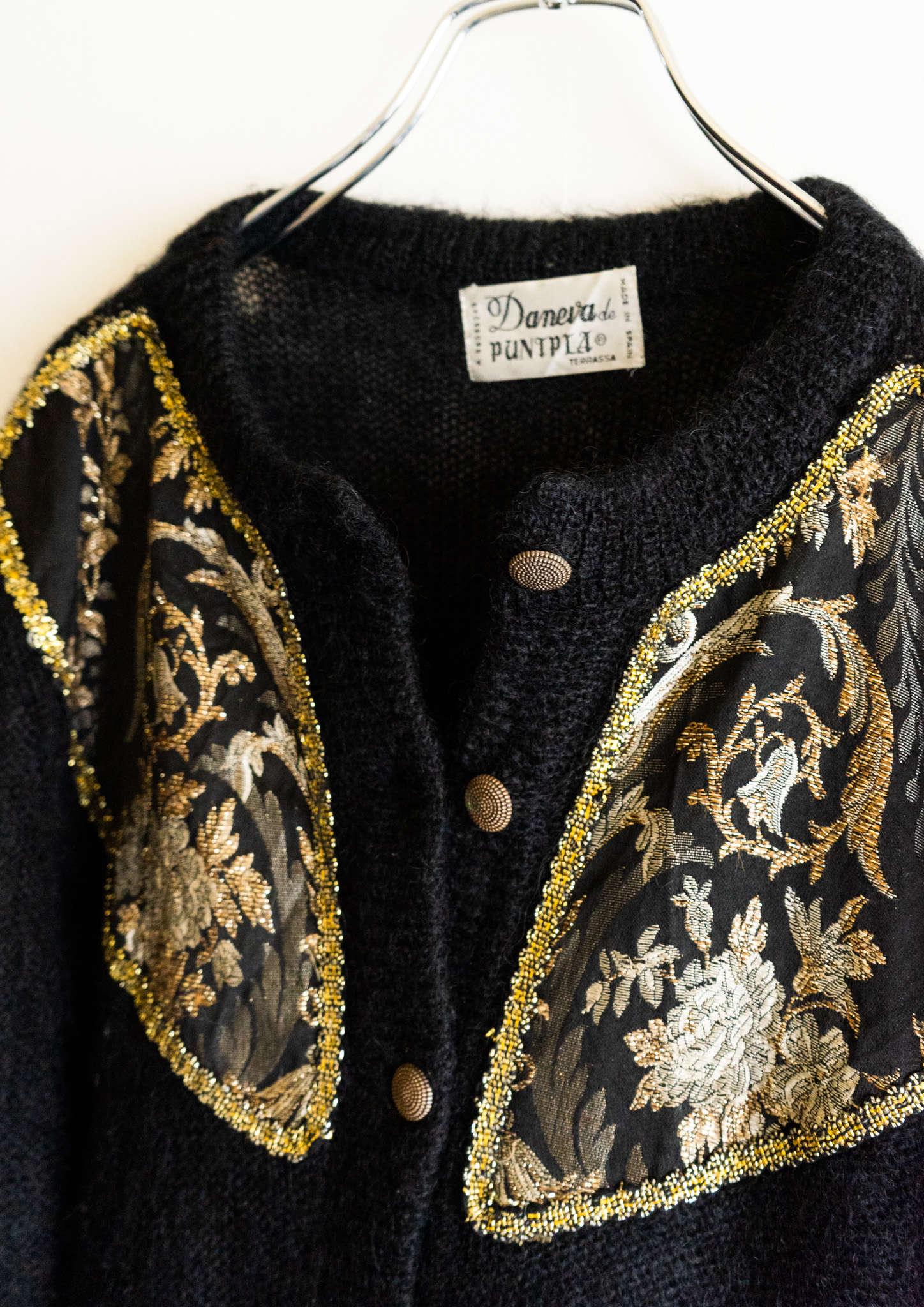 80's Spain Point Botanical Black Knit Pattern Cardigan