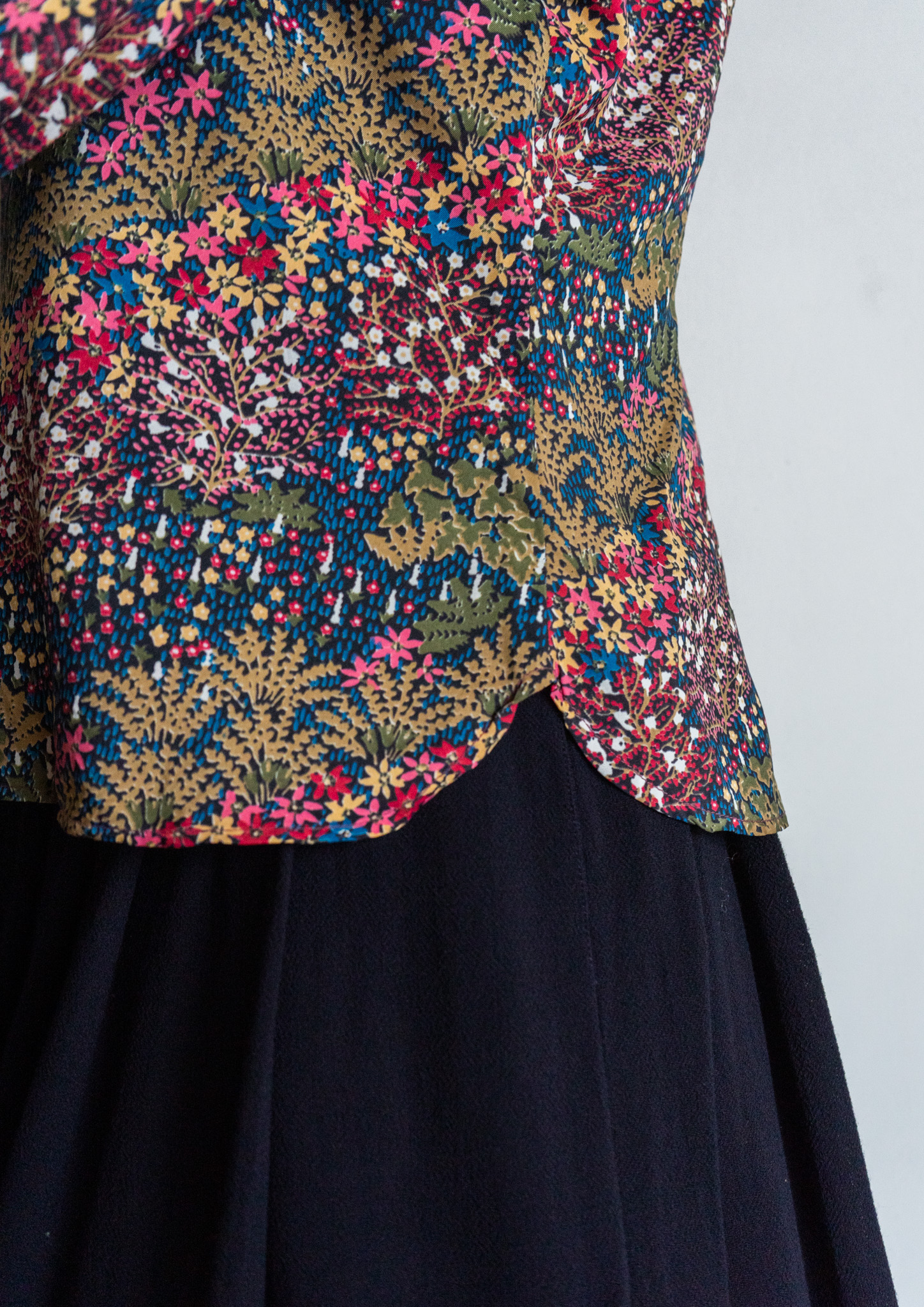 90's Finland Lace Collar Small Flower Pattern Black Blouse