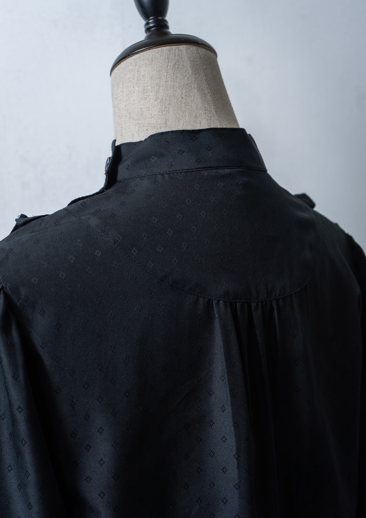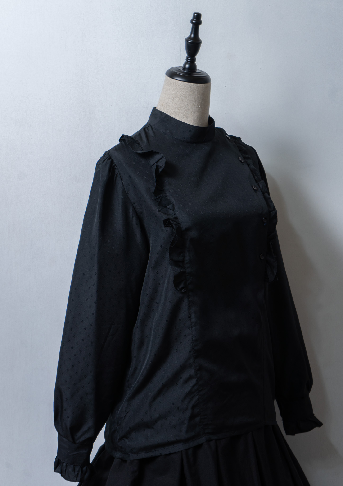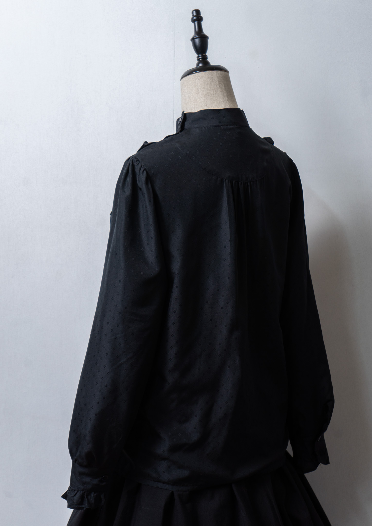90's Finland Lace Collar Small Flower Pattern Black Blouse