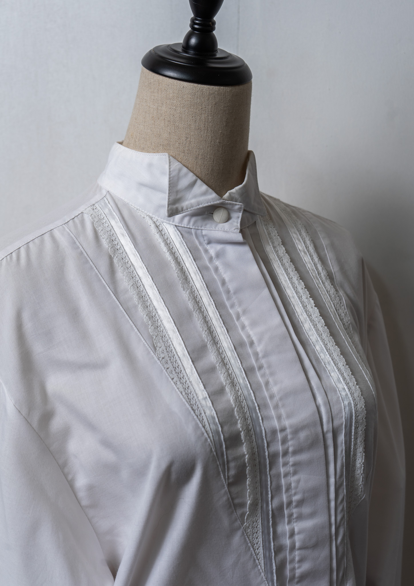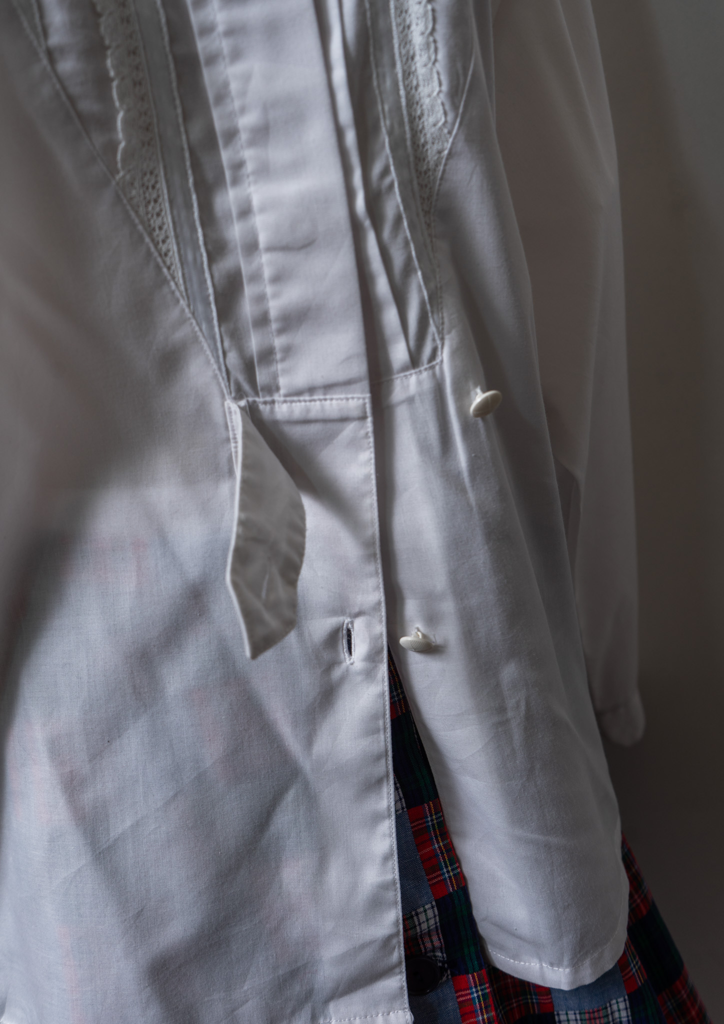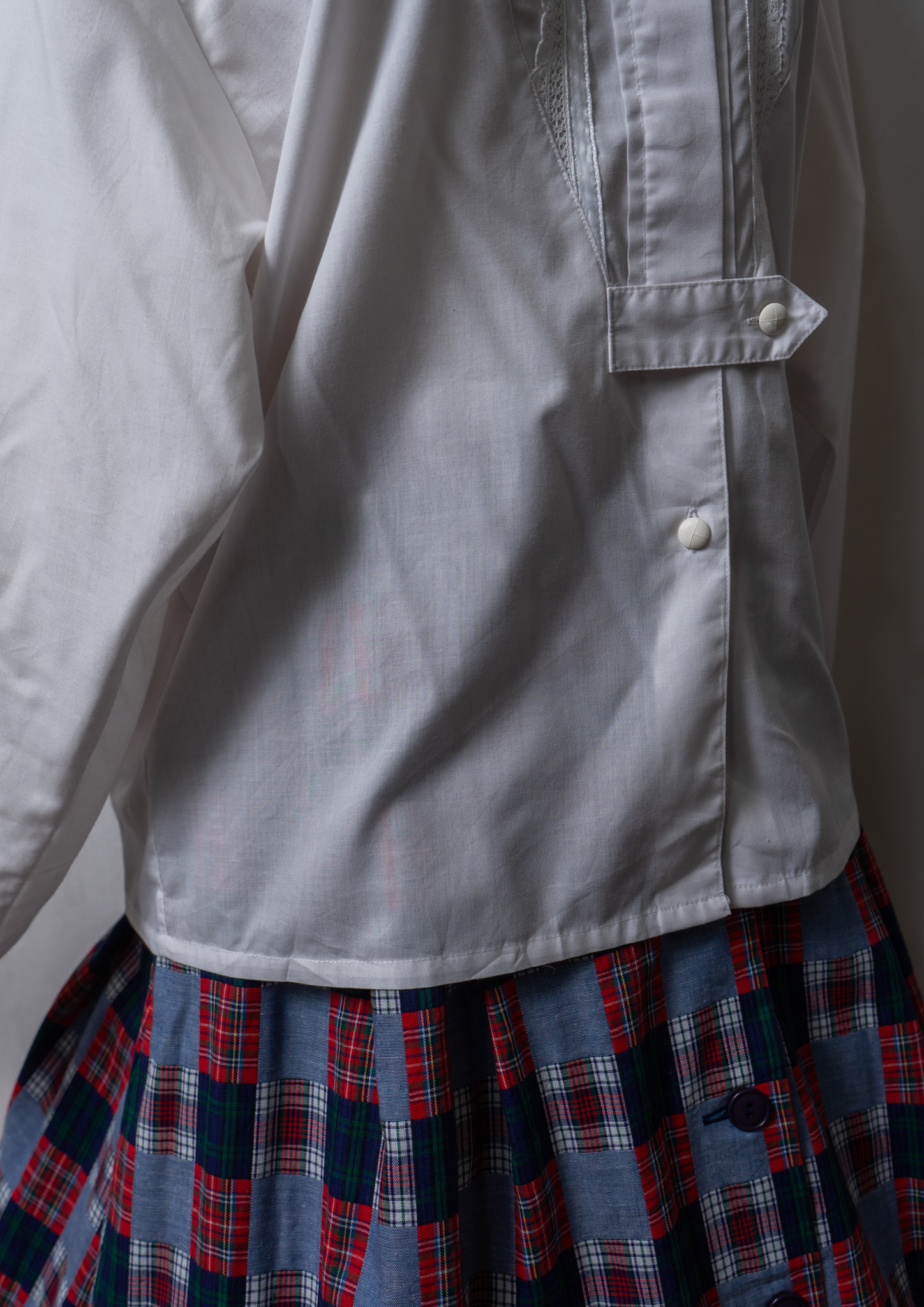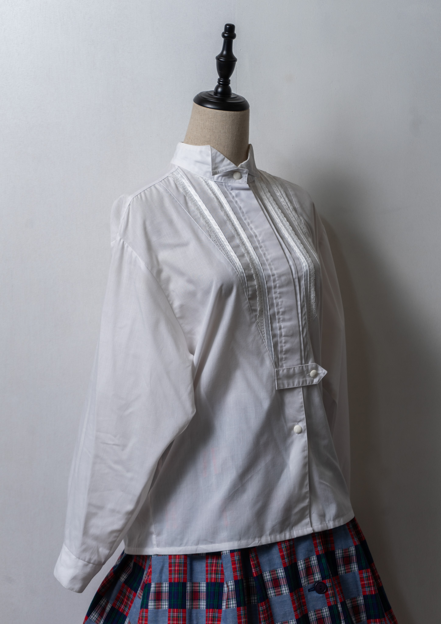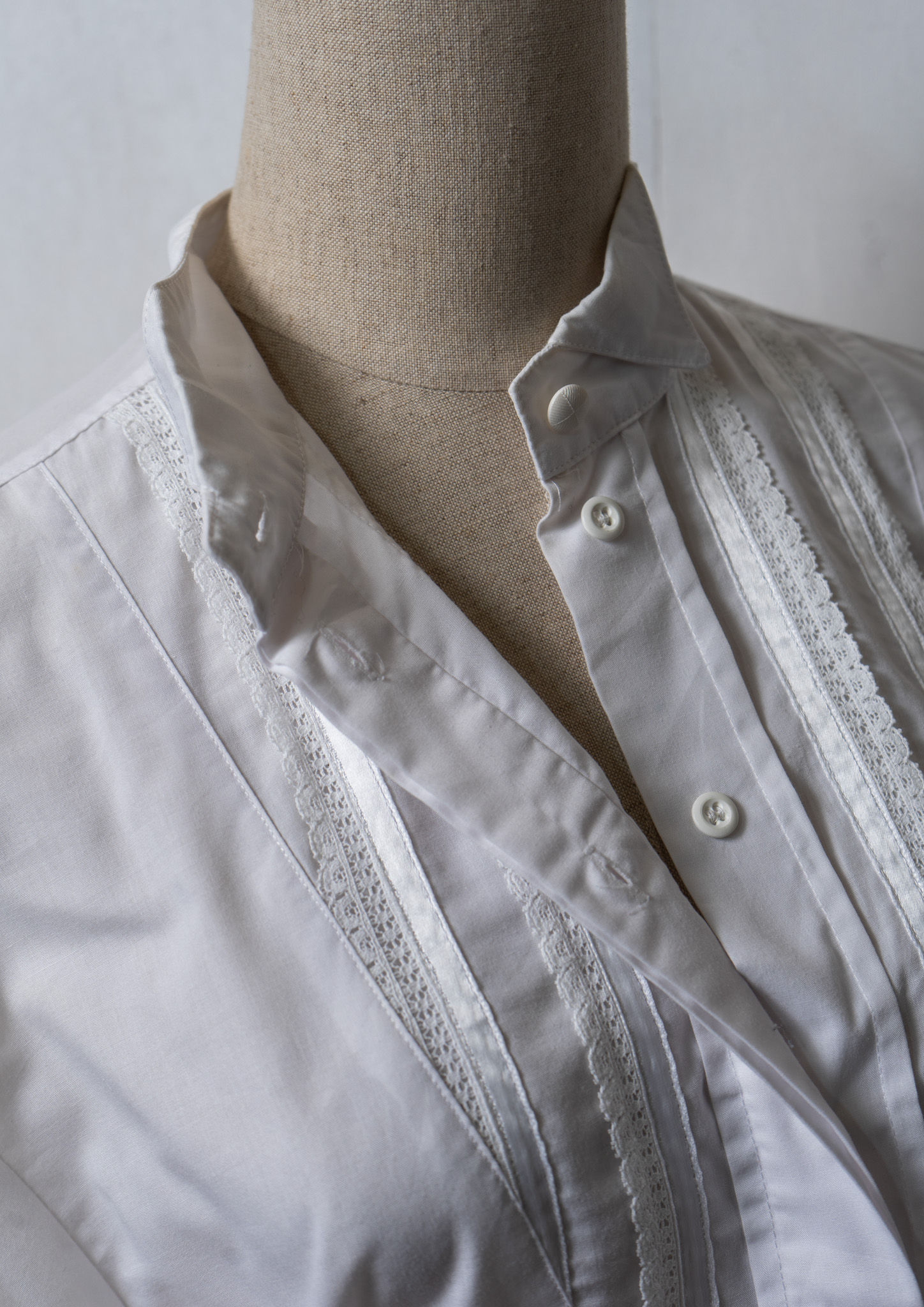 90's Euro Lace Frill Collar Decorative Button Design White Blouse