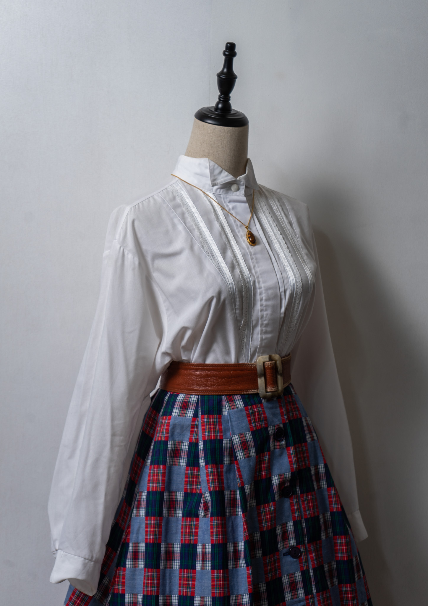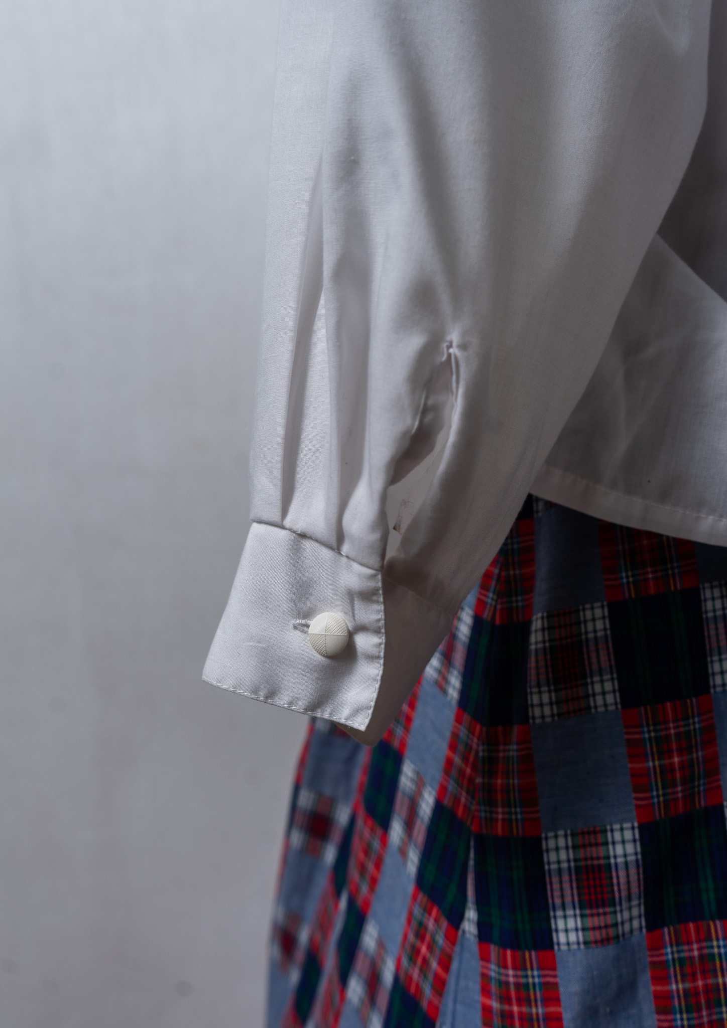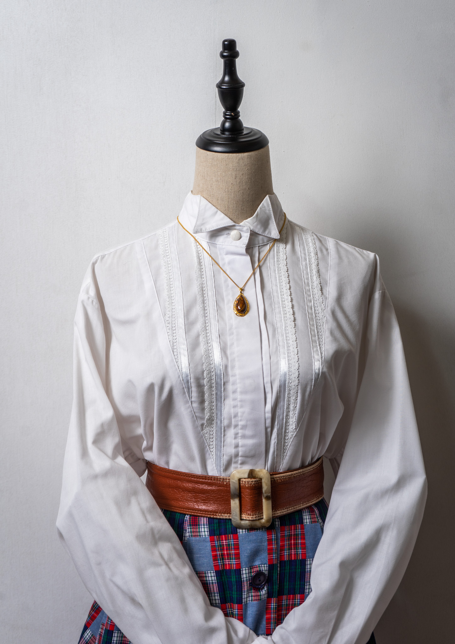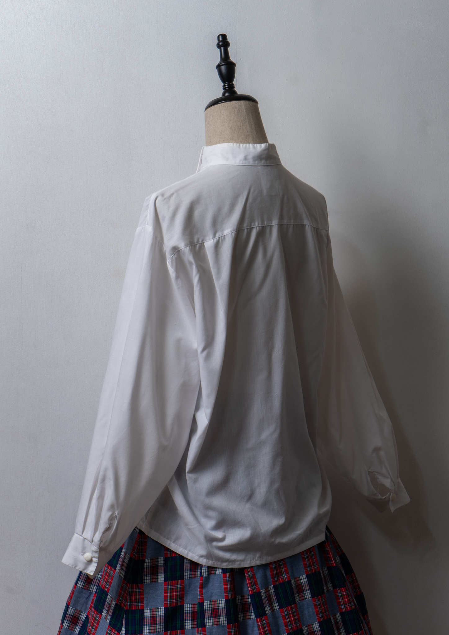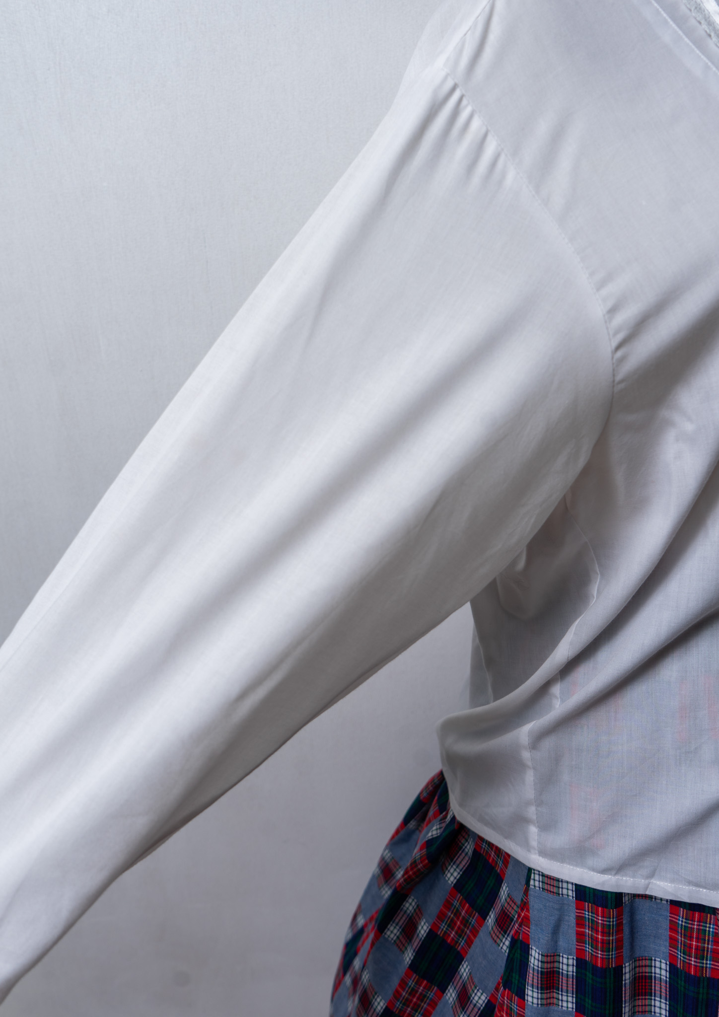 90's Euro Lace Frill Collar Decorative Button Design White Blouse