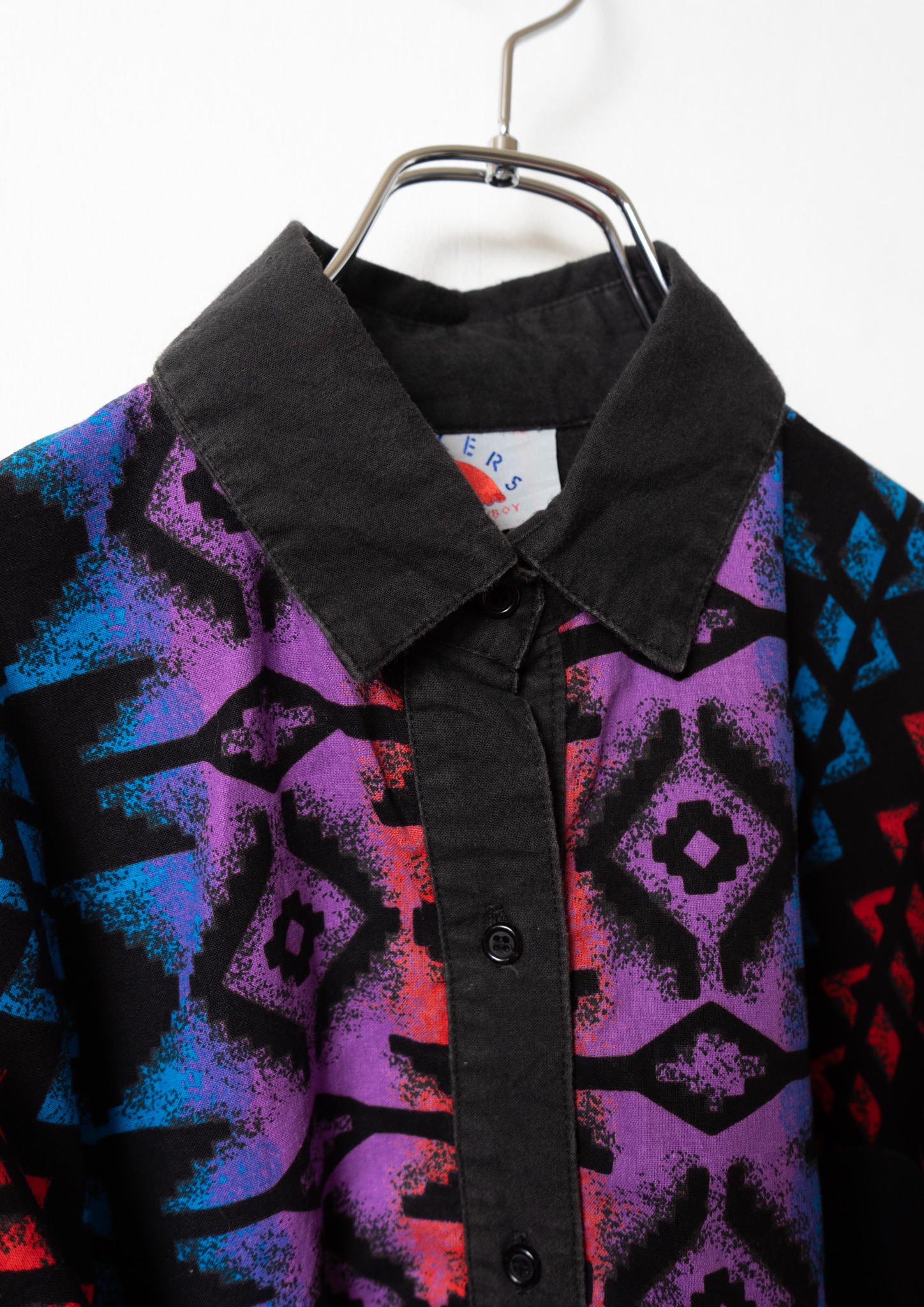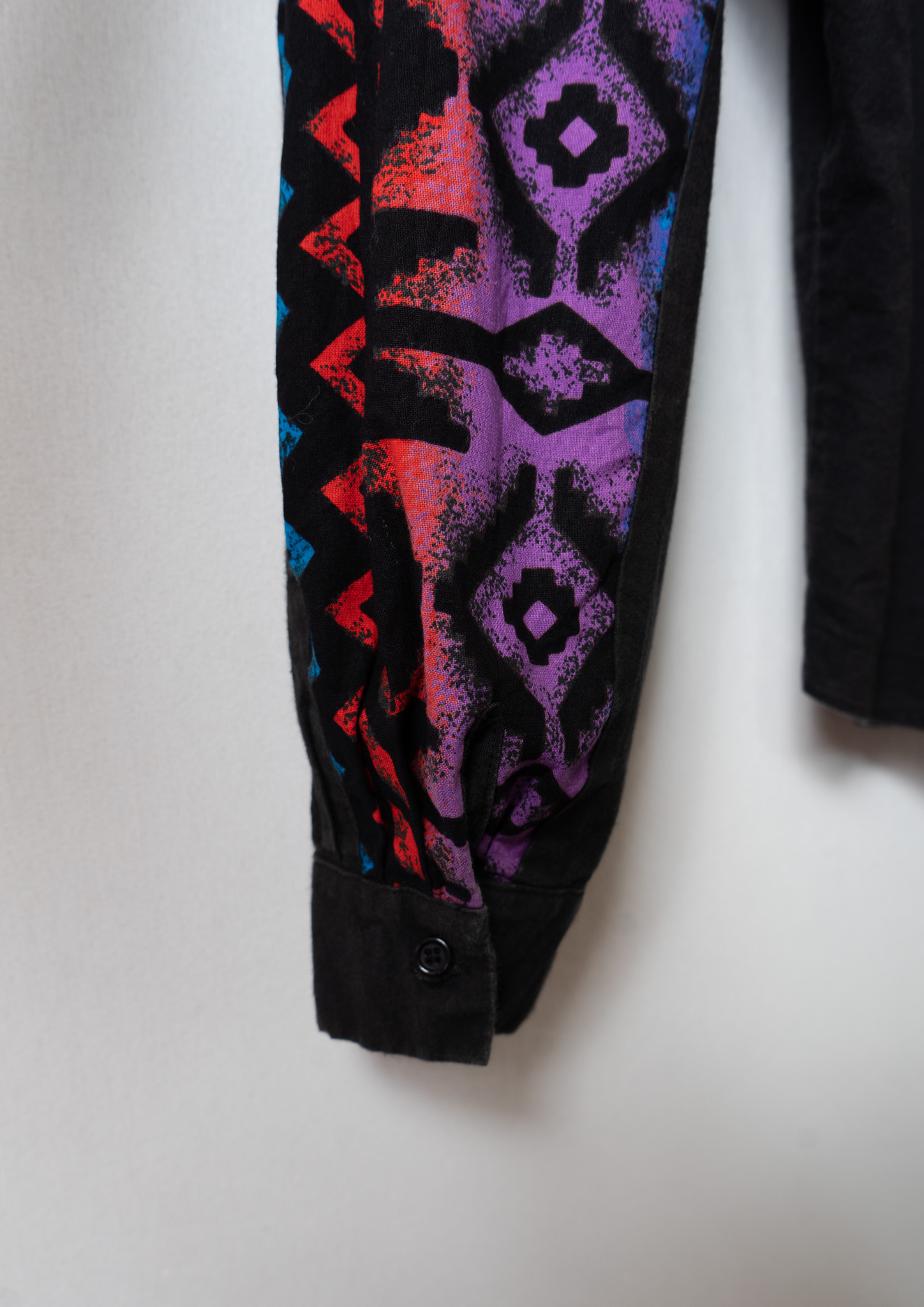 80's Euro Point Velor Design Check Pattern Vivid Pink Jacket Blouse