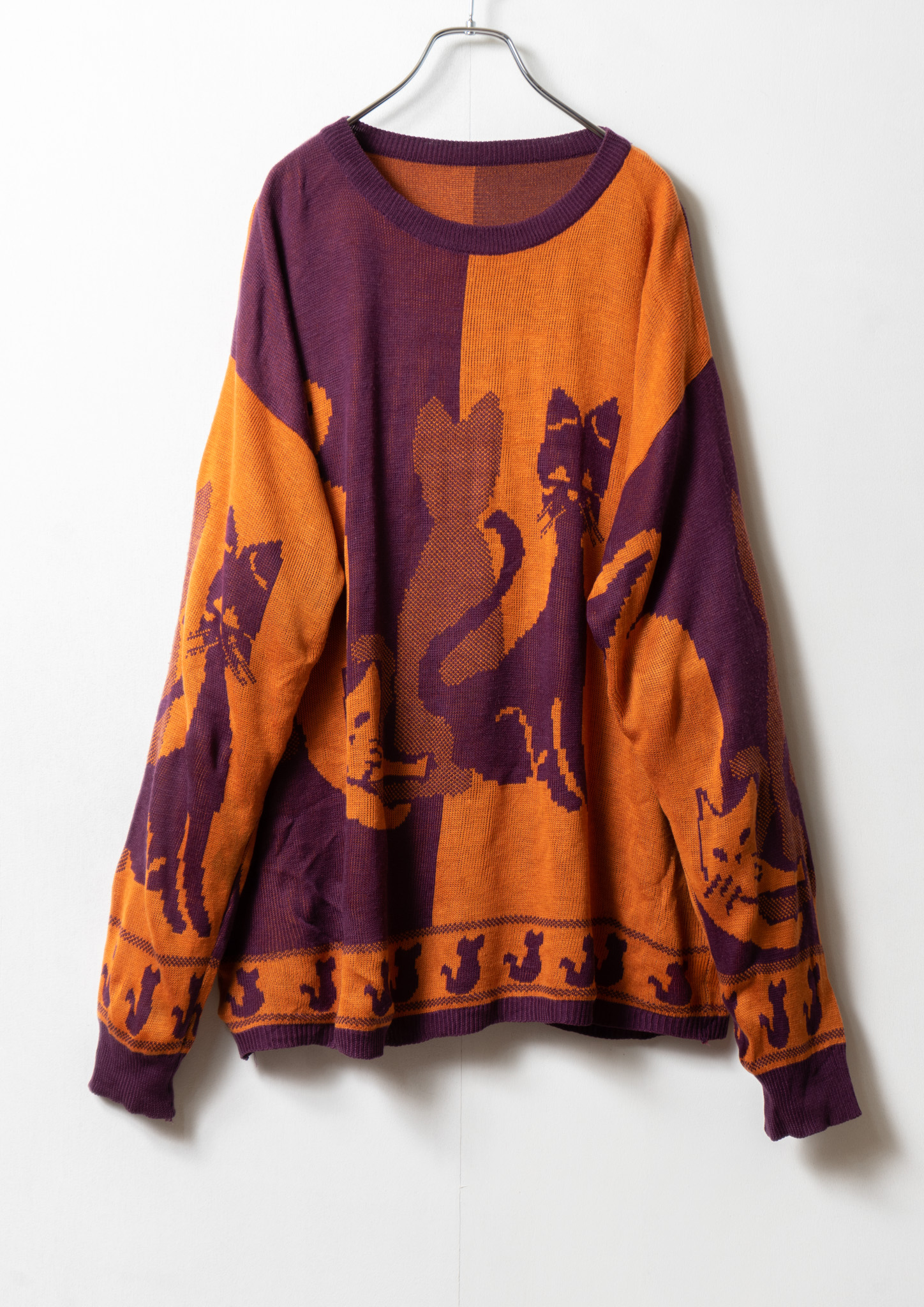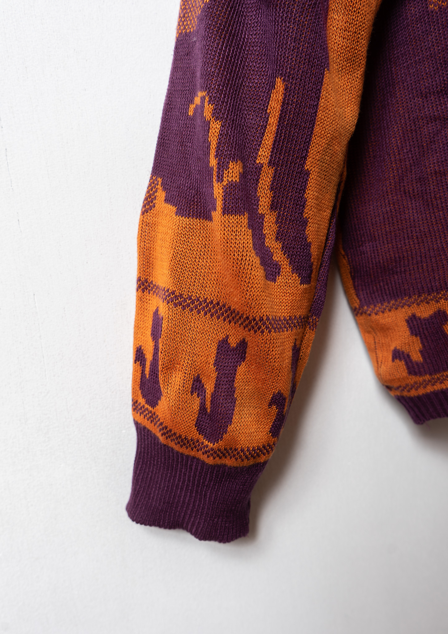 80's Double Pocket Design Unique Pattern Multi Color Mohair Cardigan