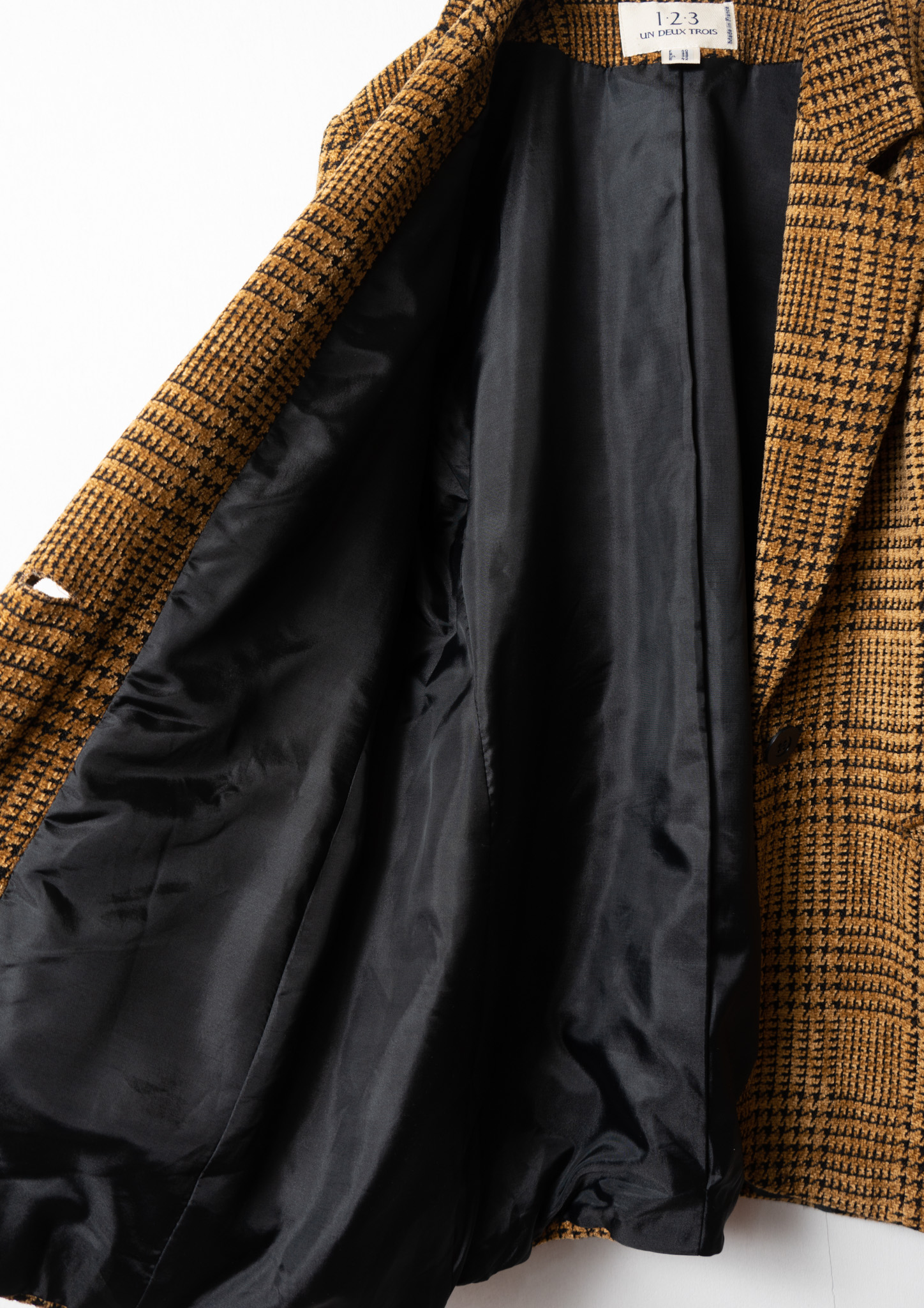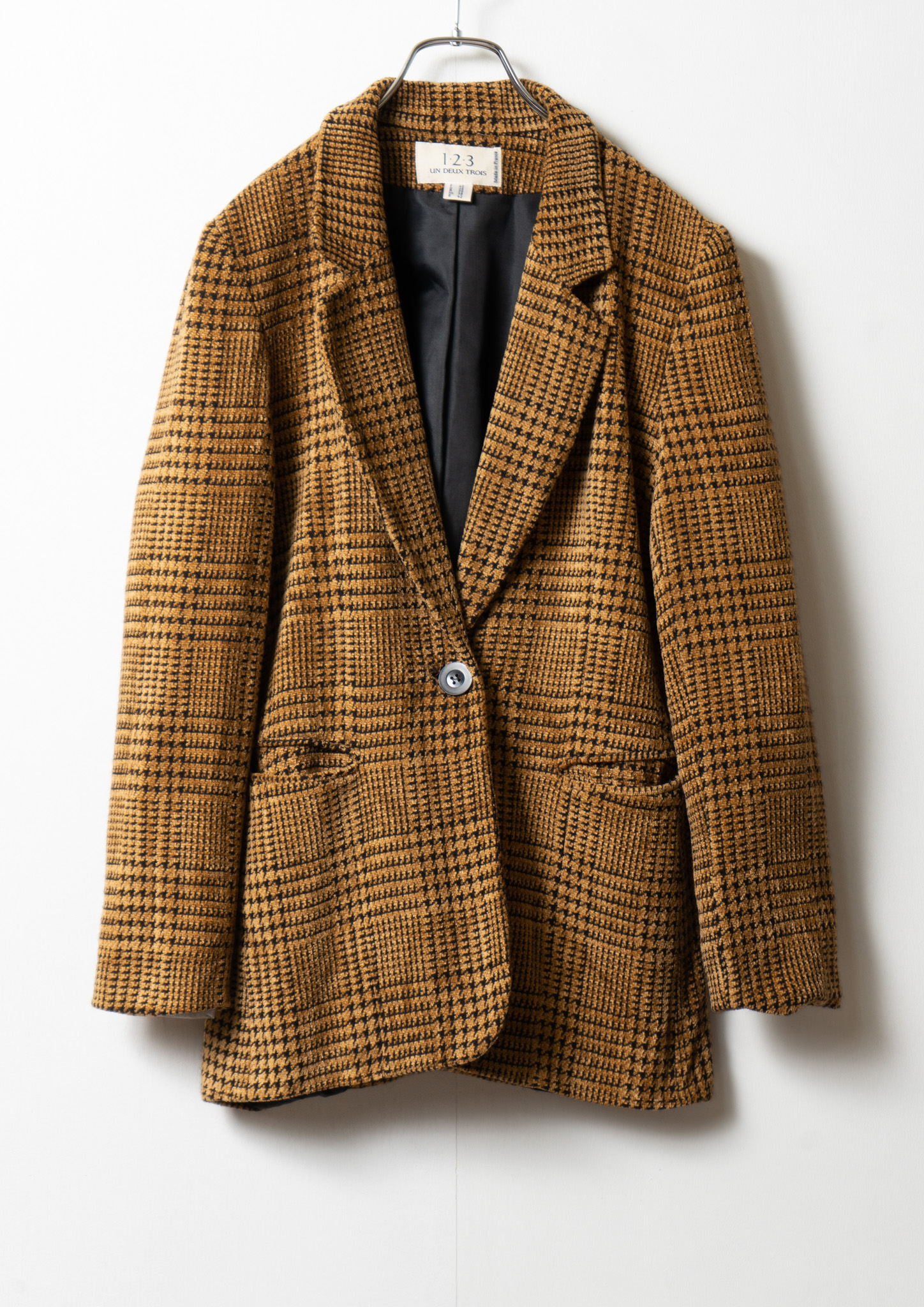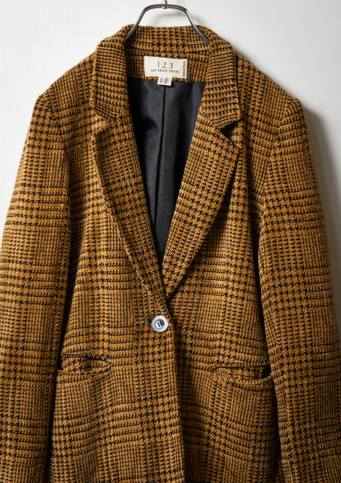 90's France Black × Beige Houndstooth Pattern Tailored Jacket
