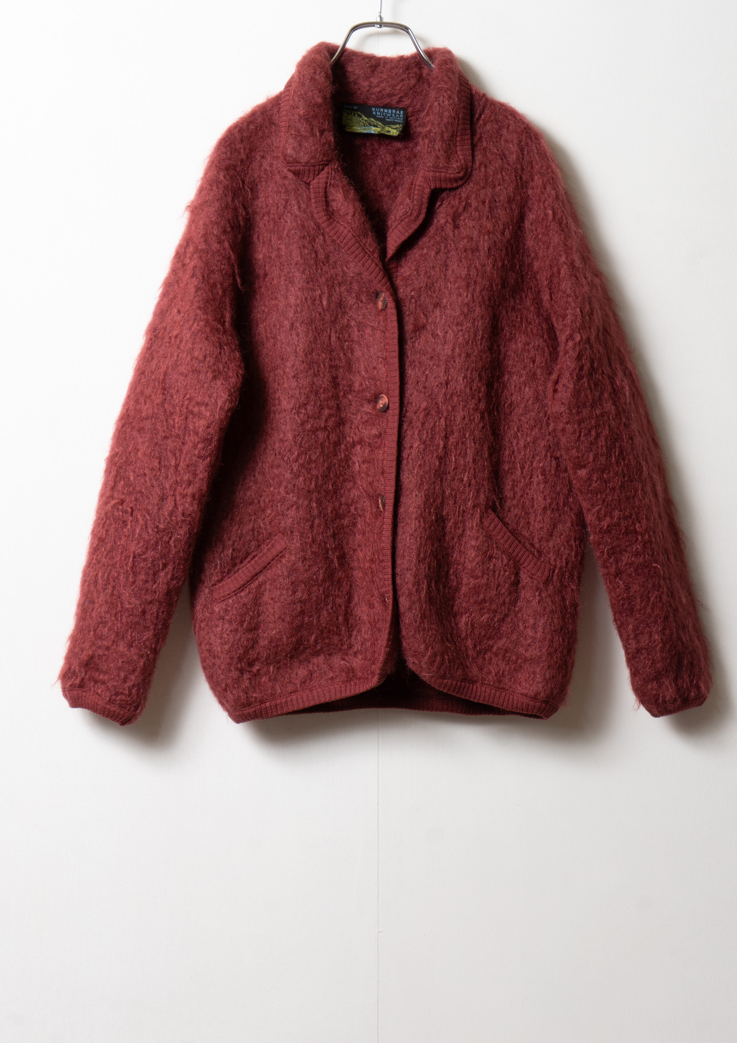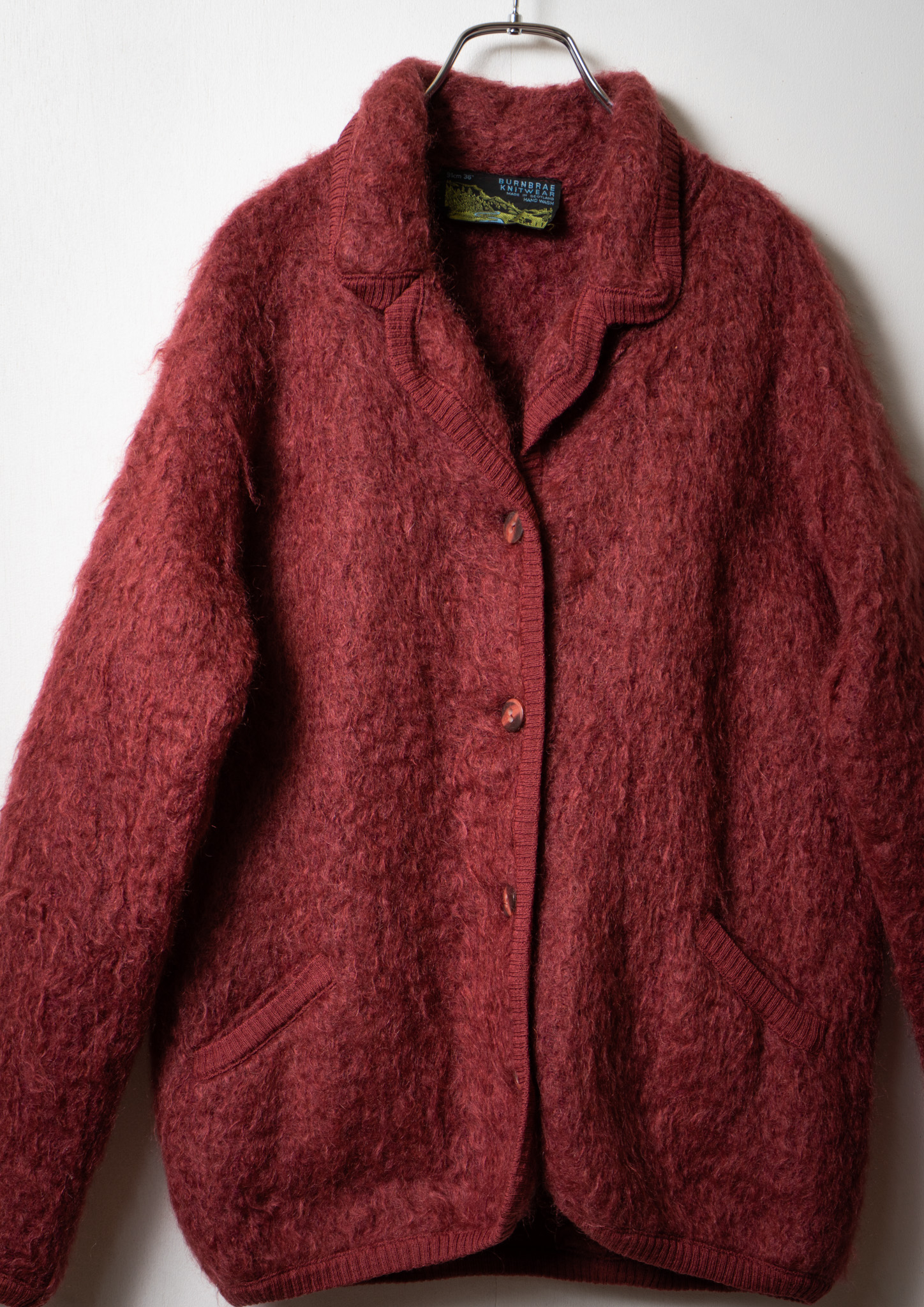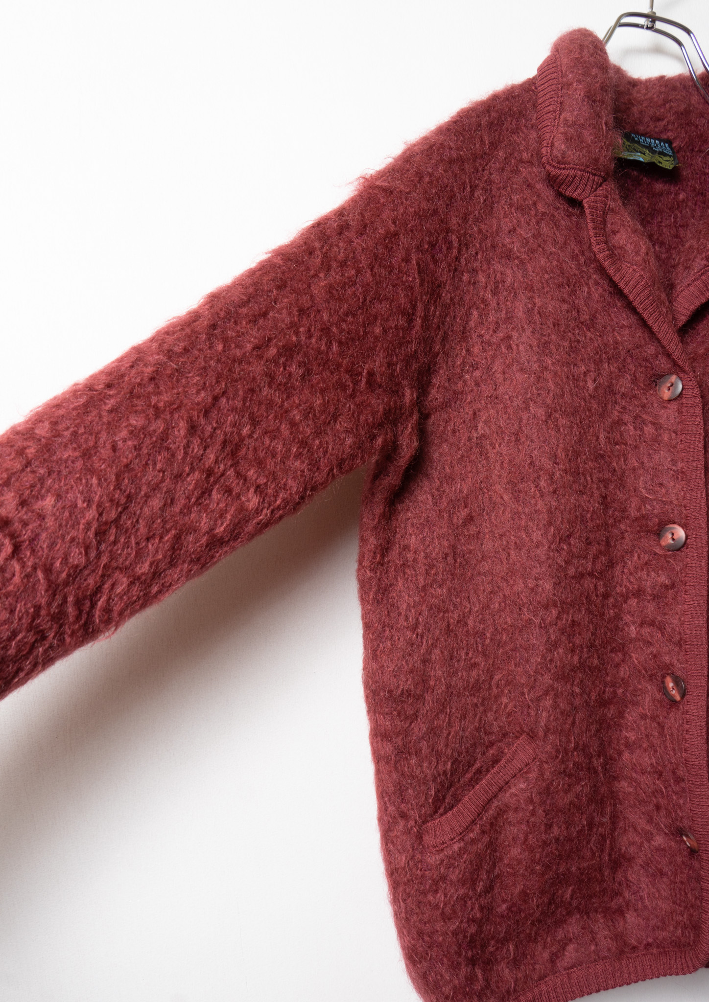 70's Scotland Smoky Bordeaux Mohair Blend Cardigan