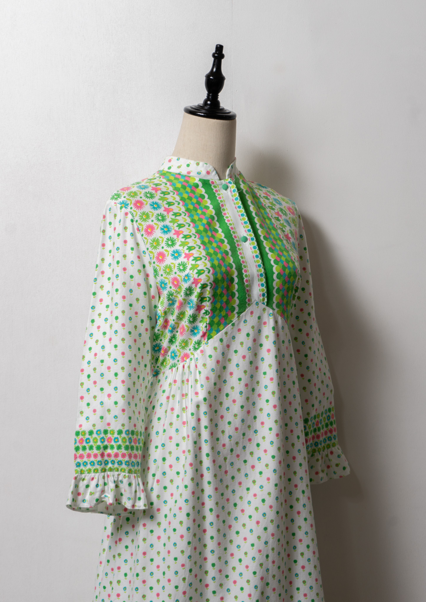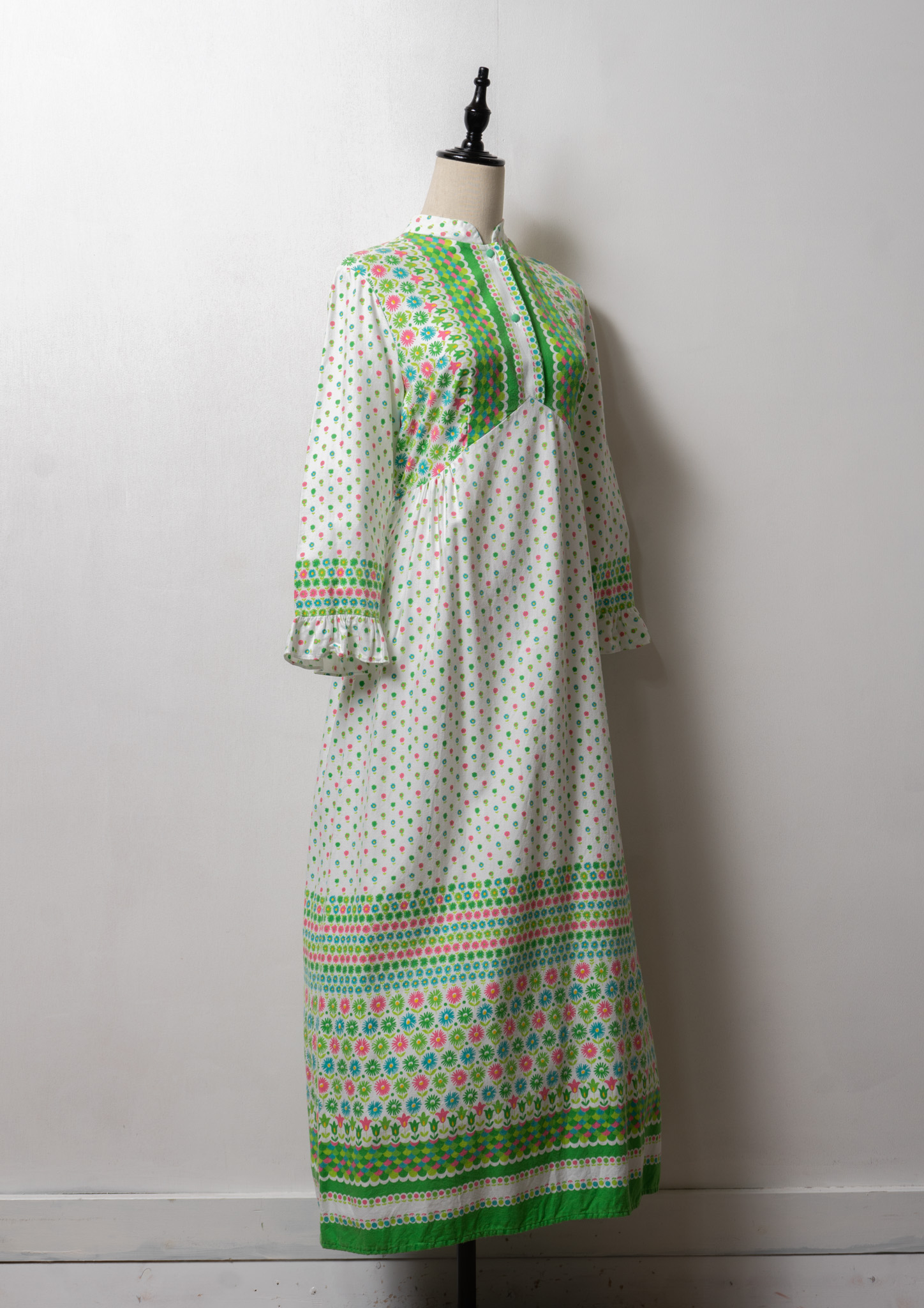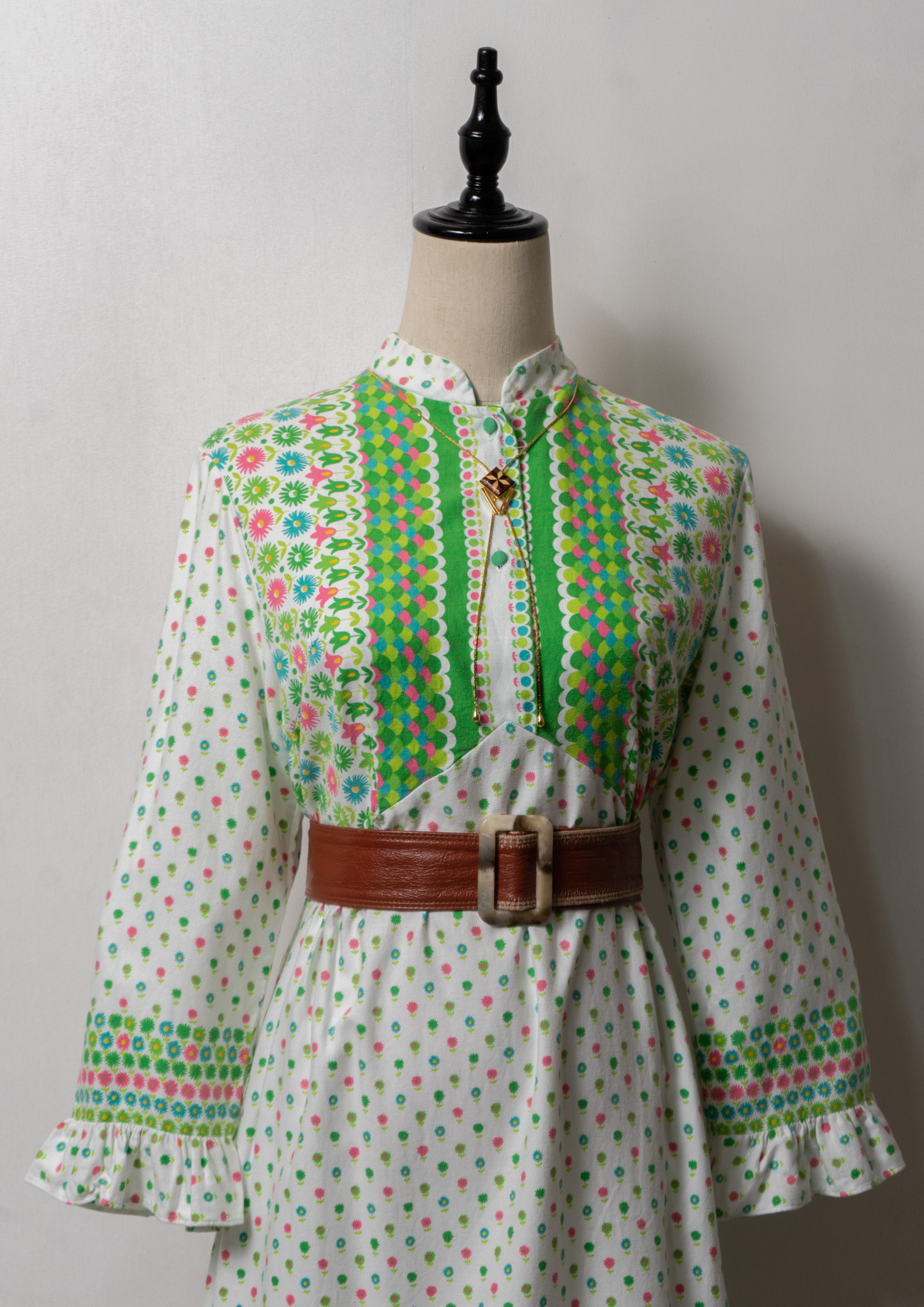80's USA Houndstooth Pattern Velour Collar × Button Dress