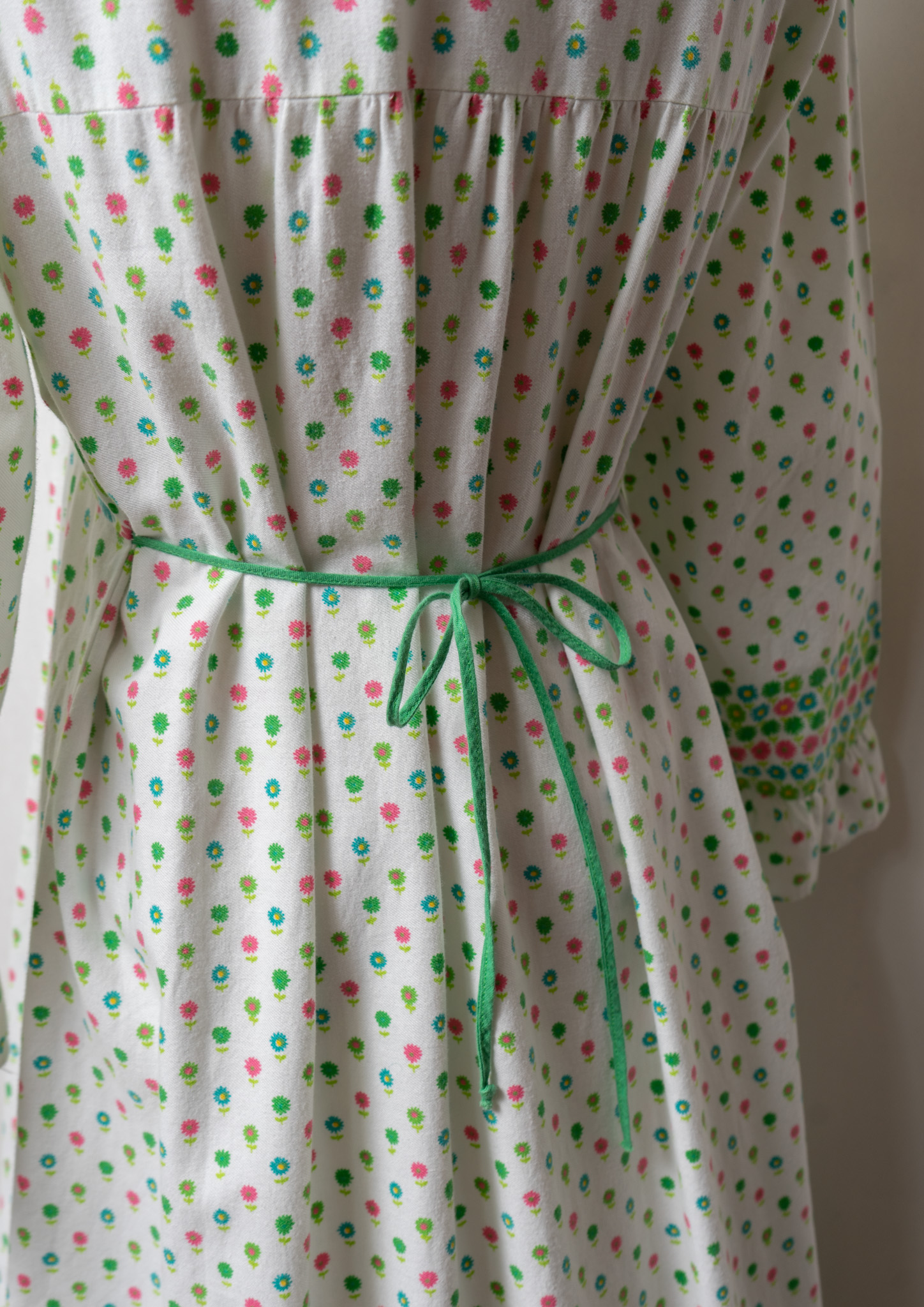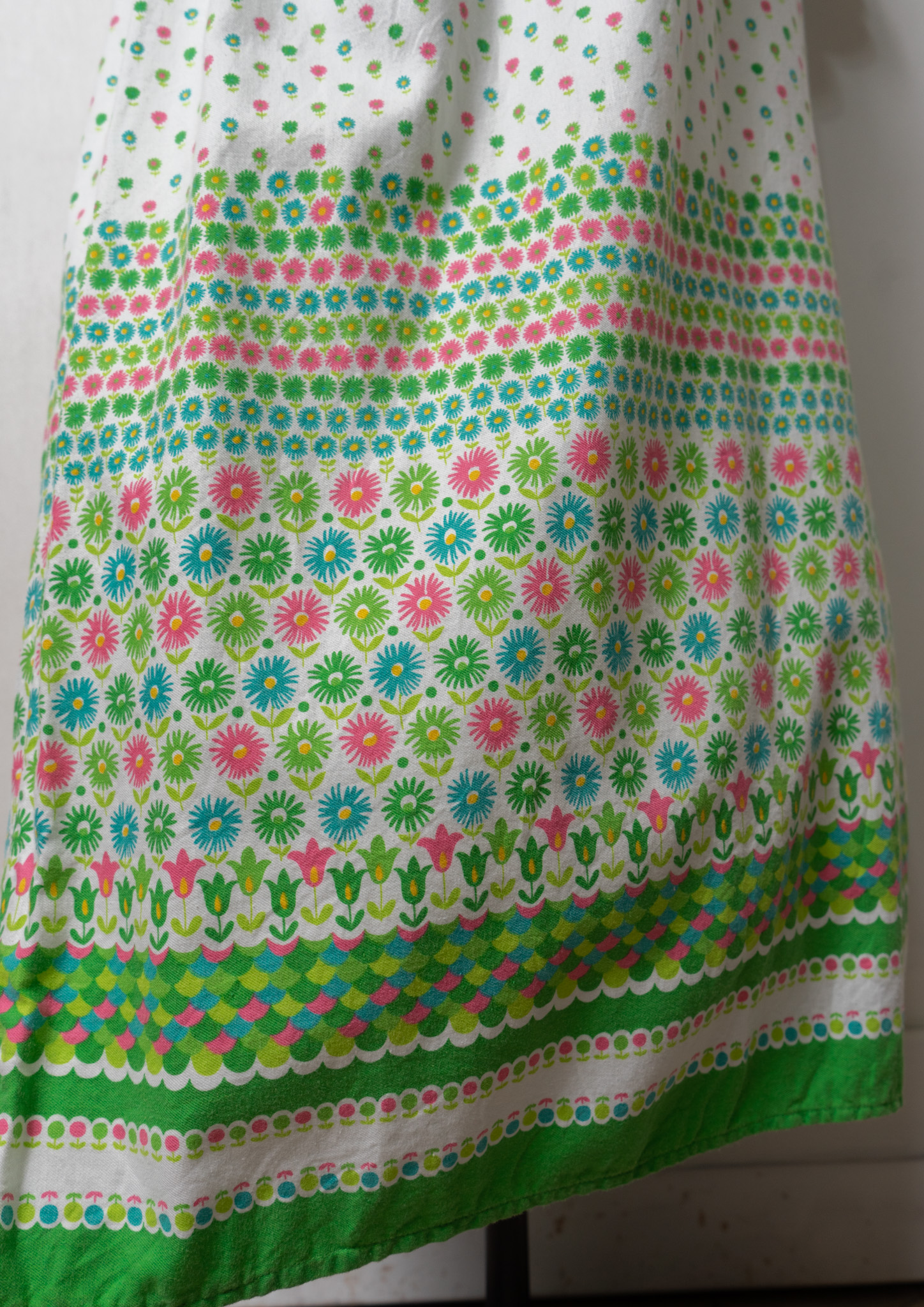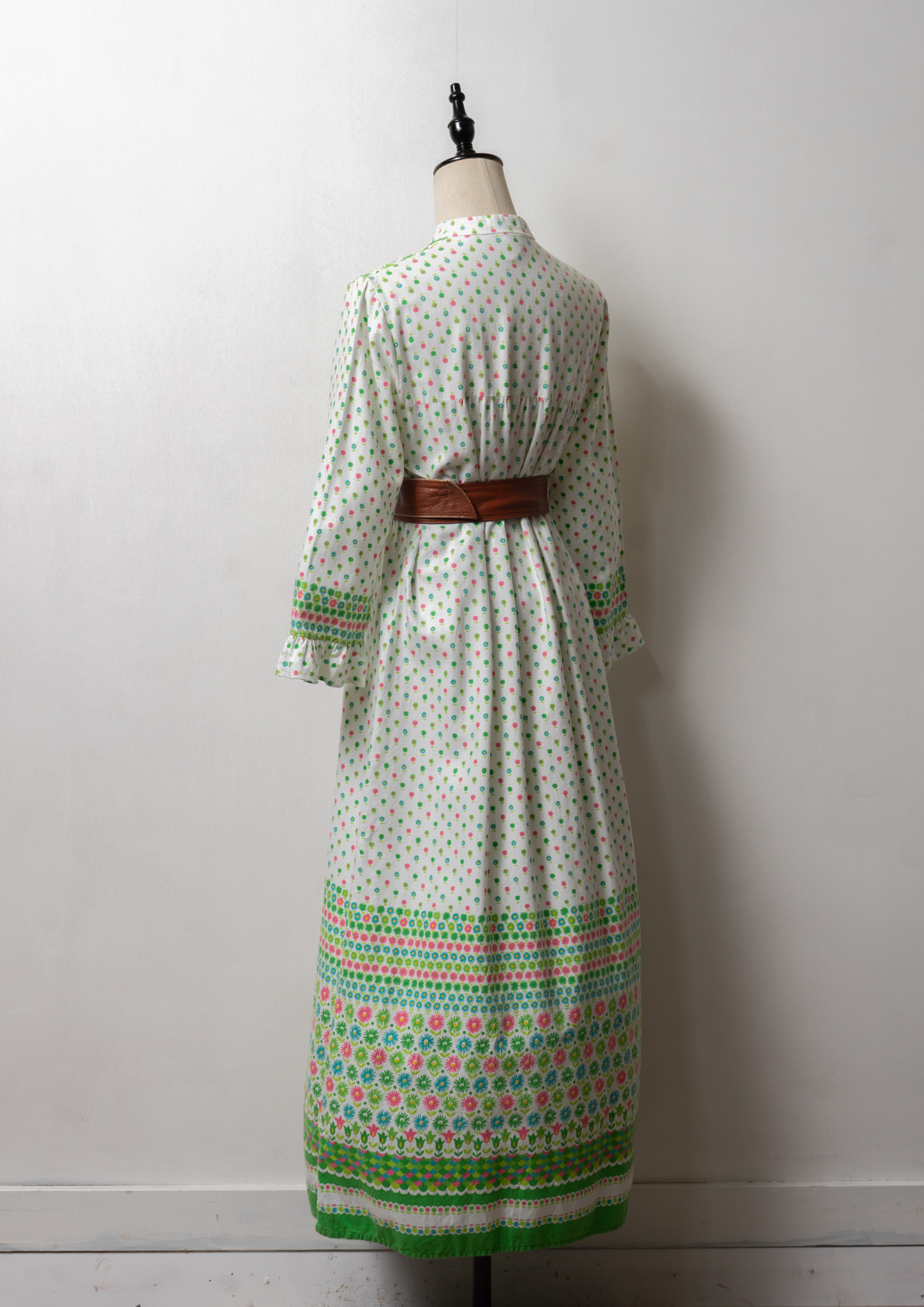 80's USA Houndstooth Pattern Velour Collar × Button Dress