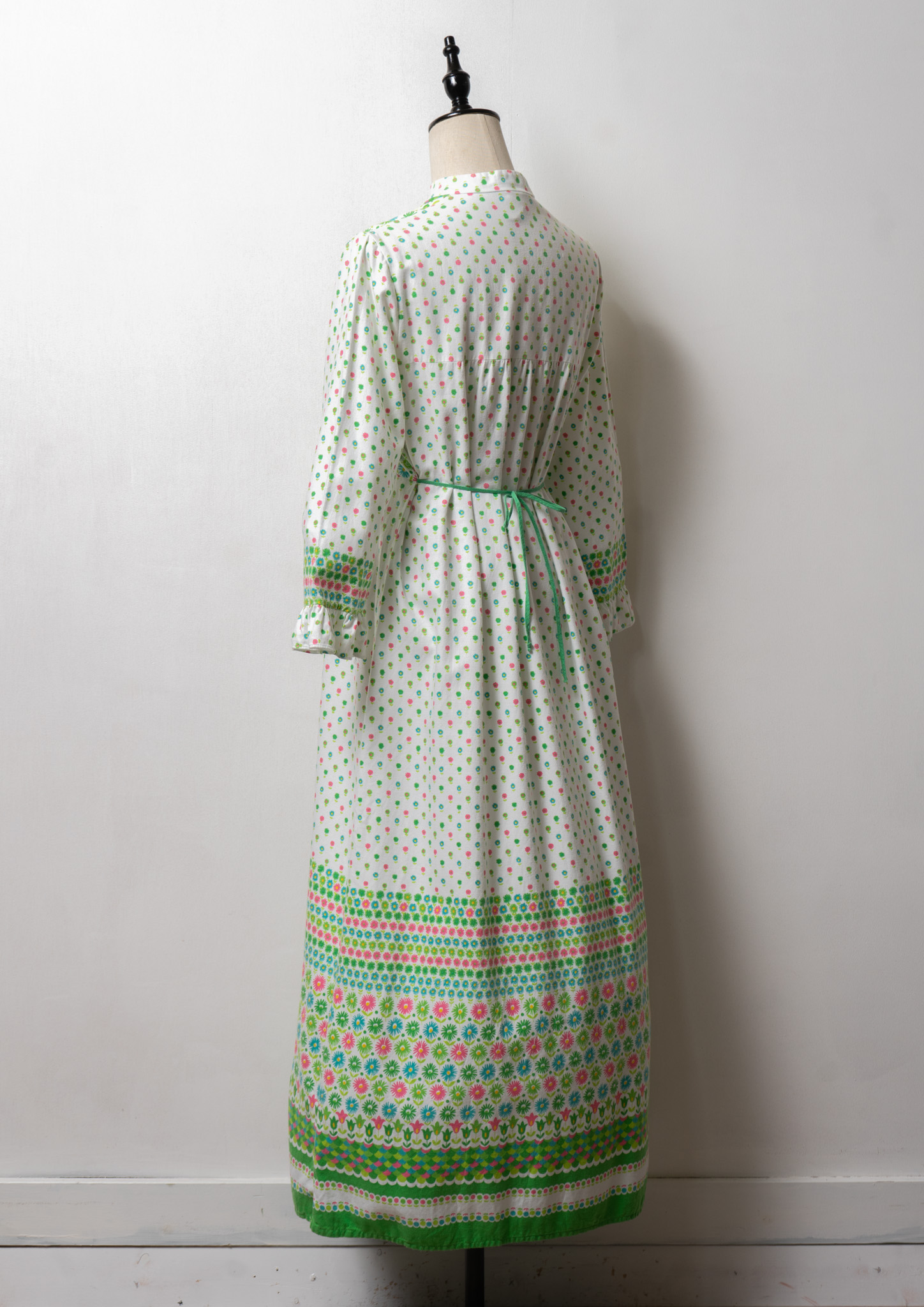 90's Black Velour Collar × Button Gray Over Dye Maxi Dress
