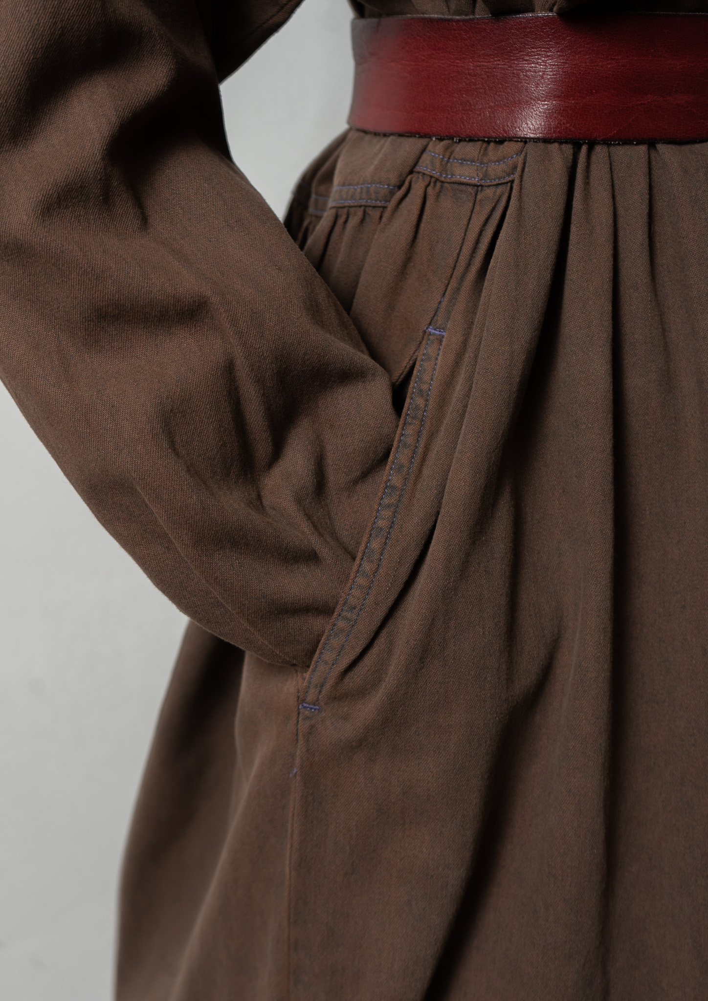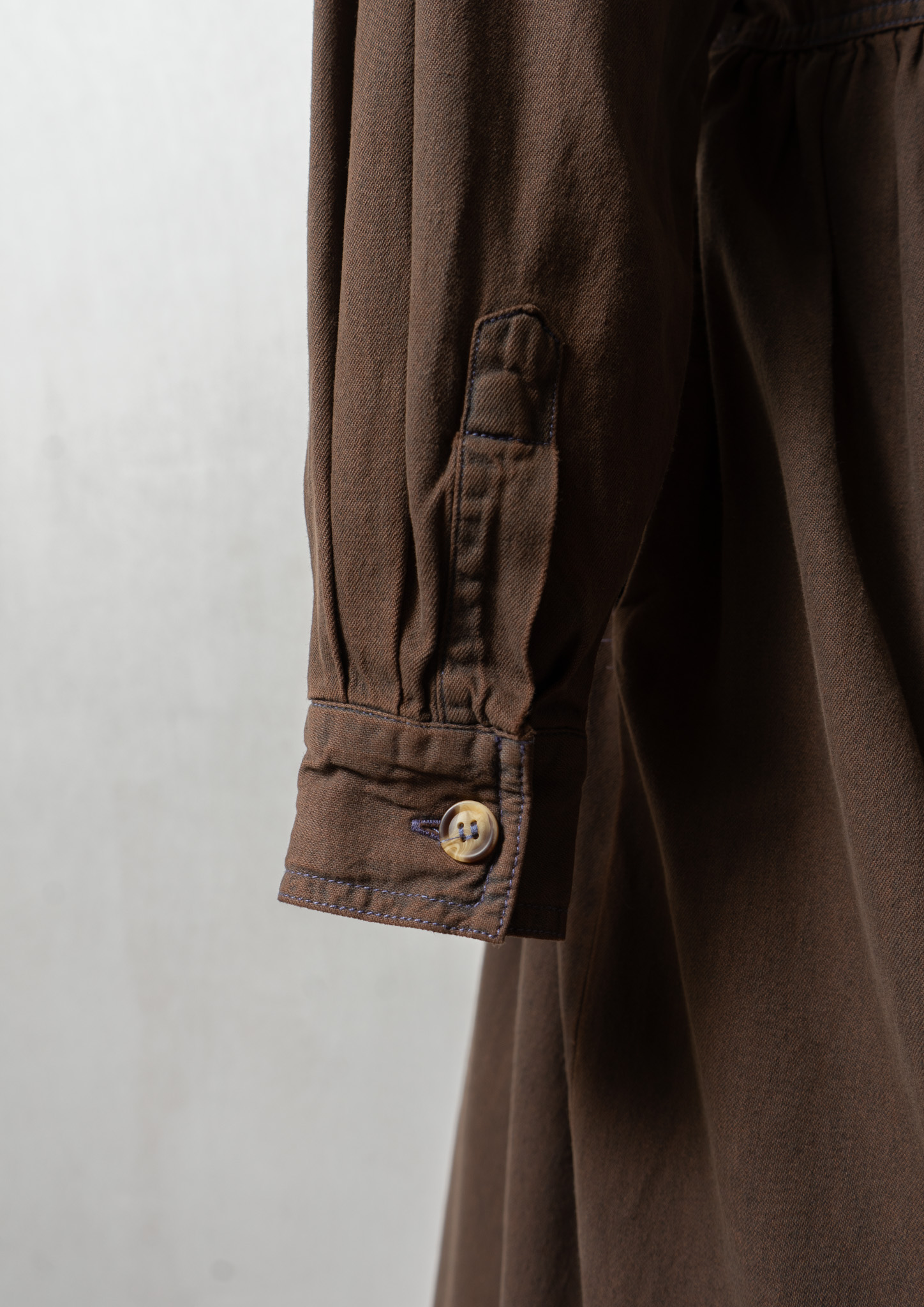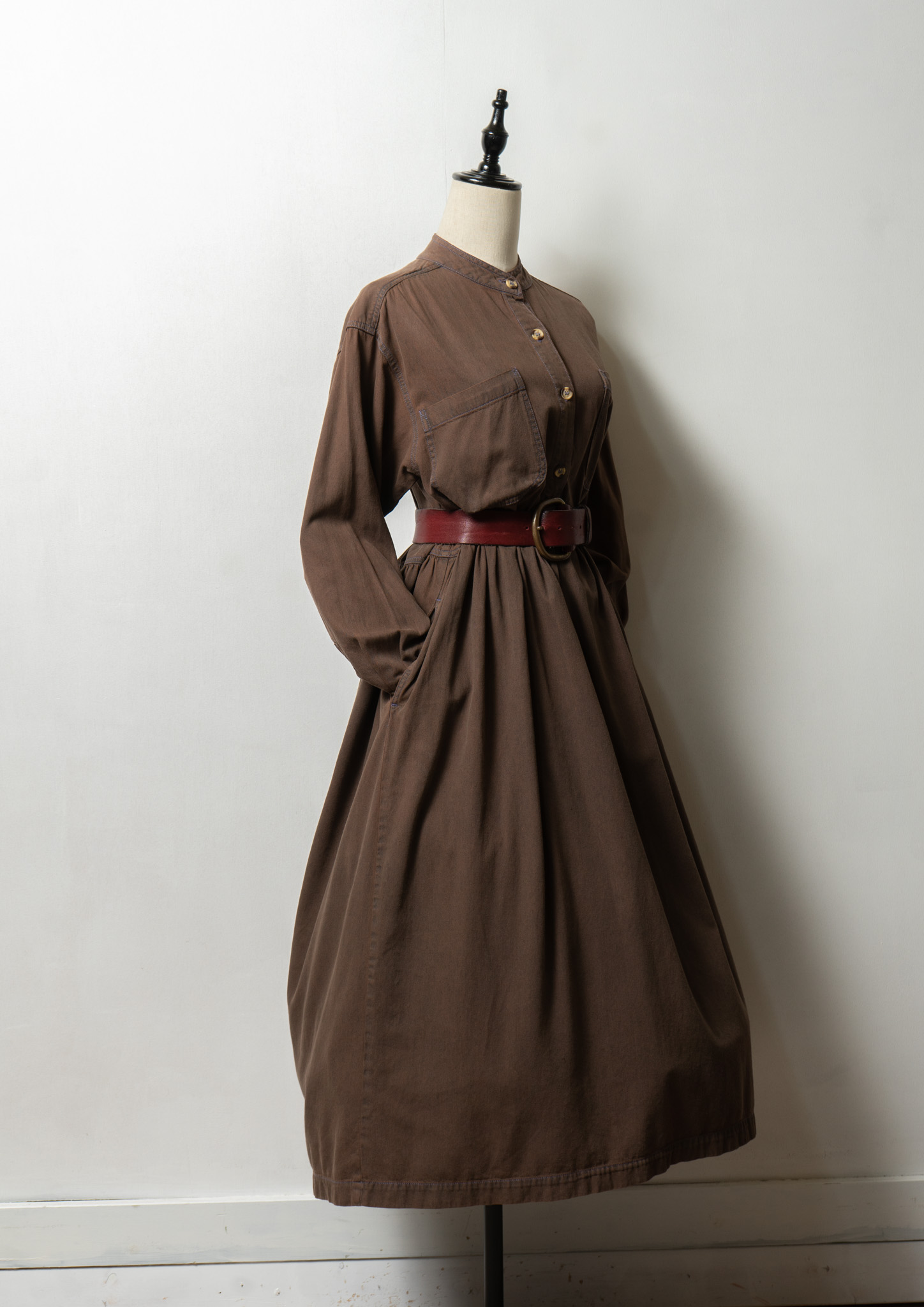 70~80's Blue Stitch Brown Over dye Stand Collar Dress