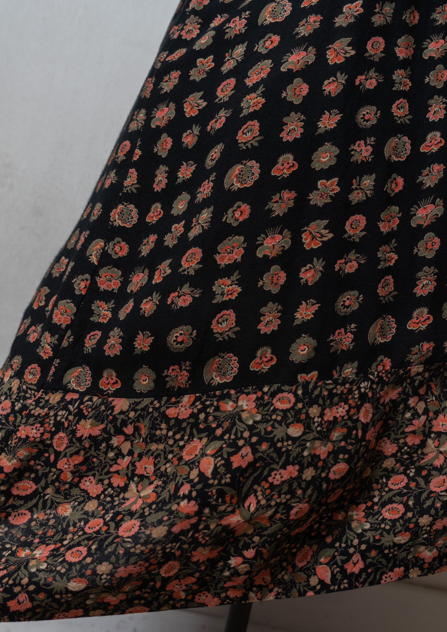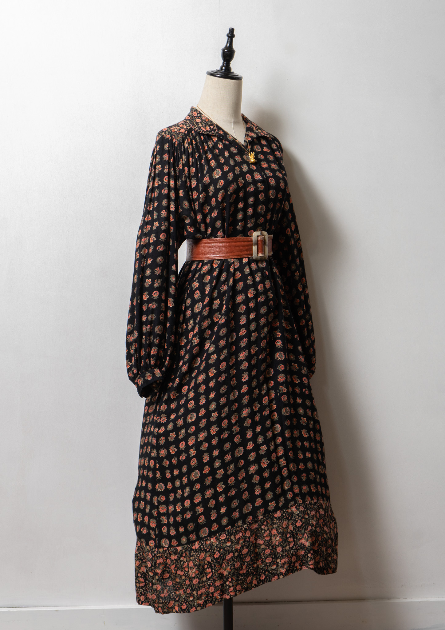 90's Black Velour Collar × Button Gray Over Dye Maxi Dress