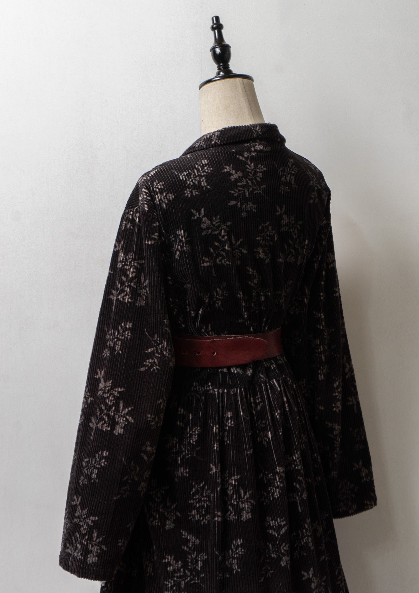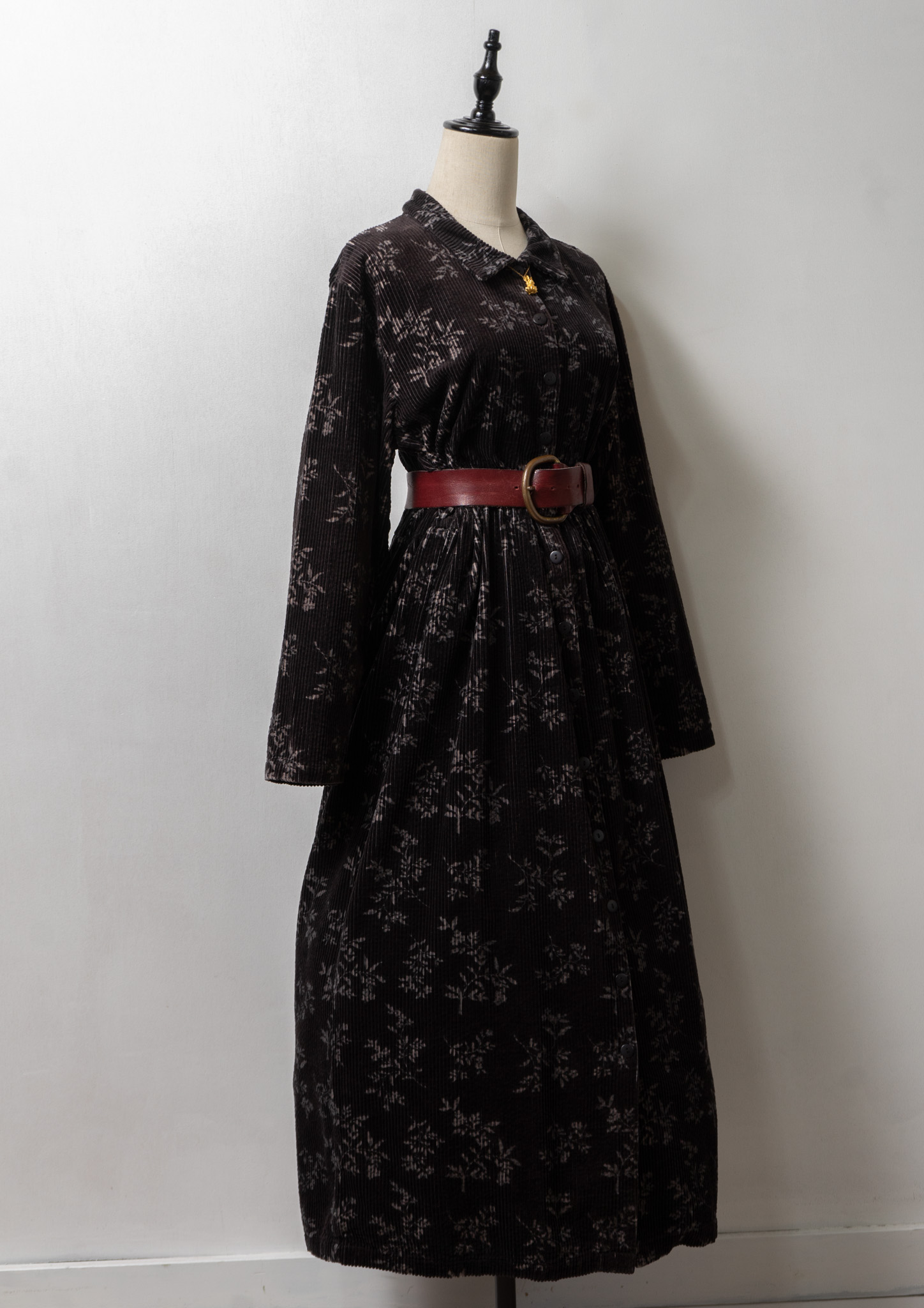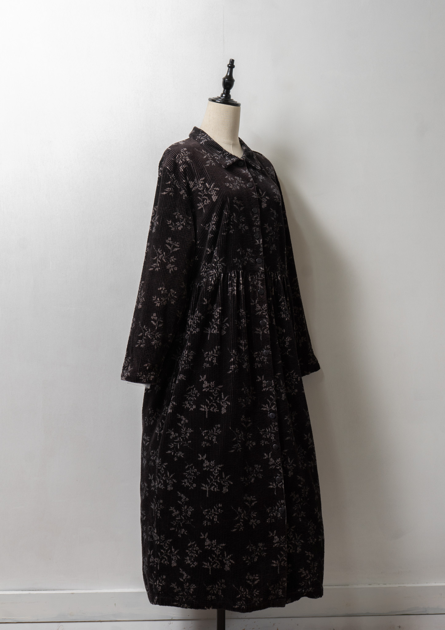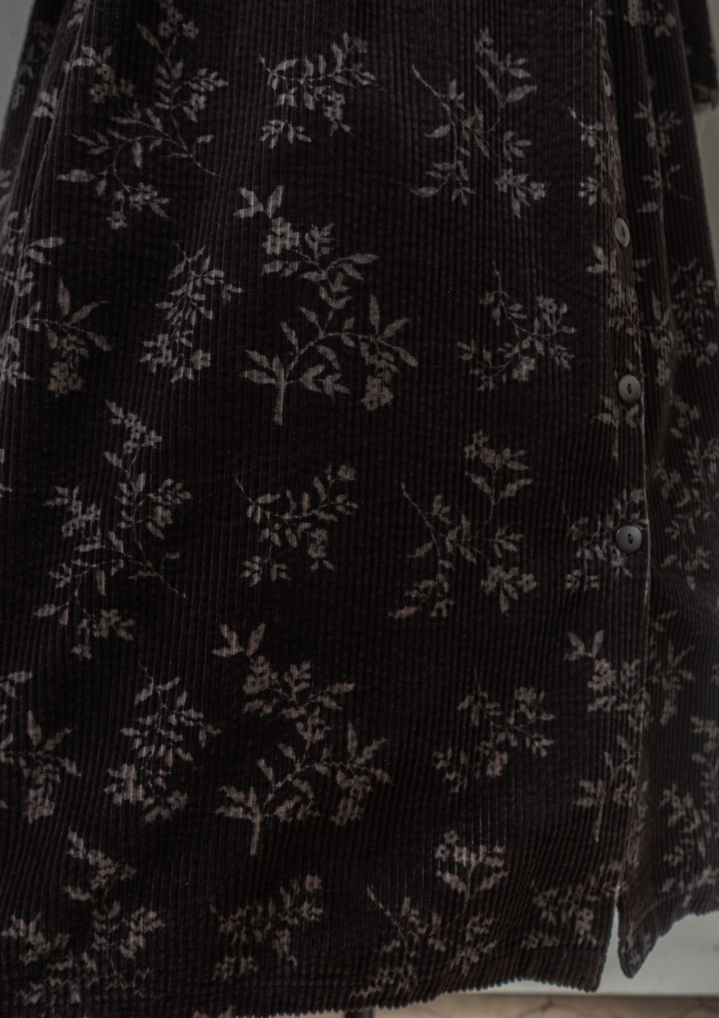 80~90's Flower Pattern Black Corduroy Dress