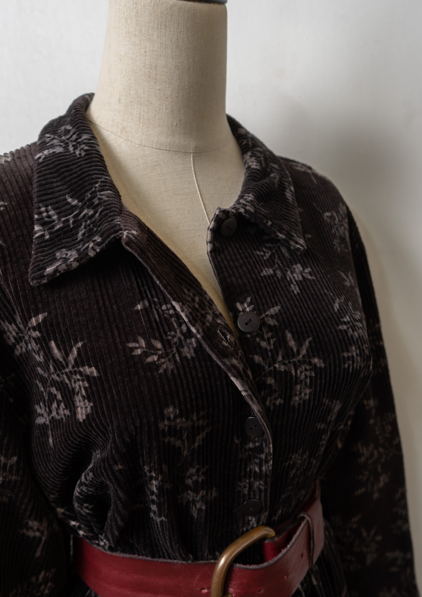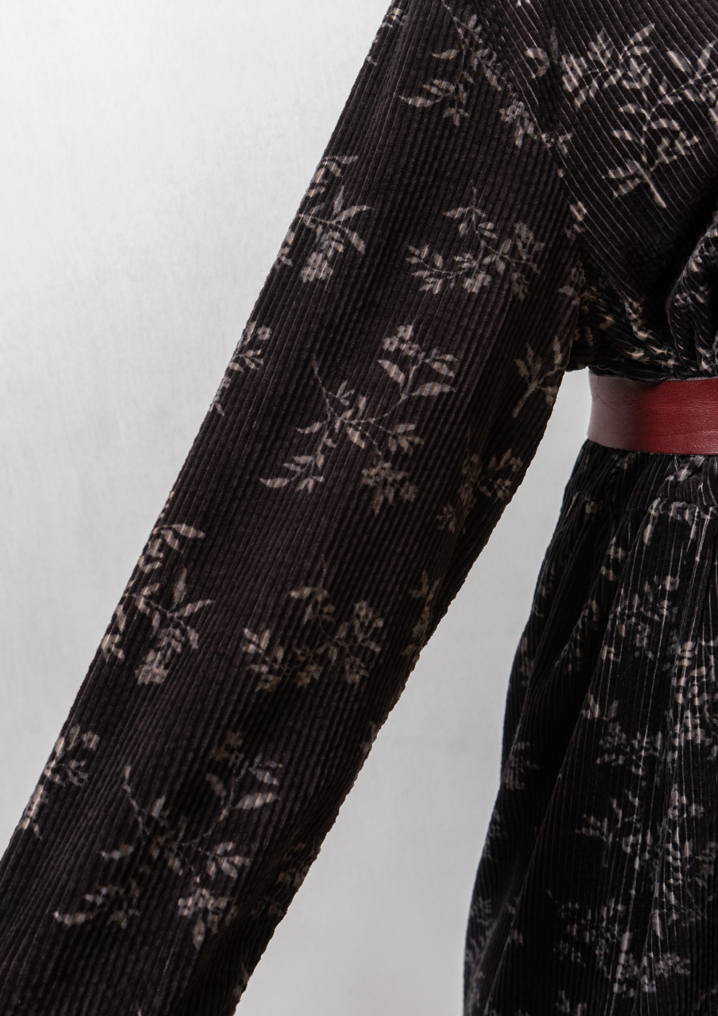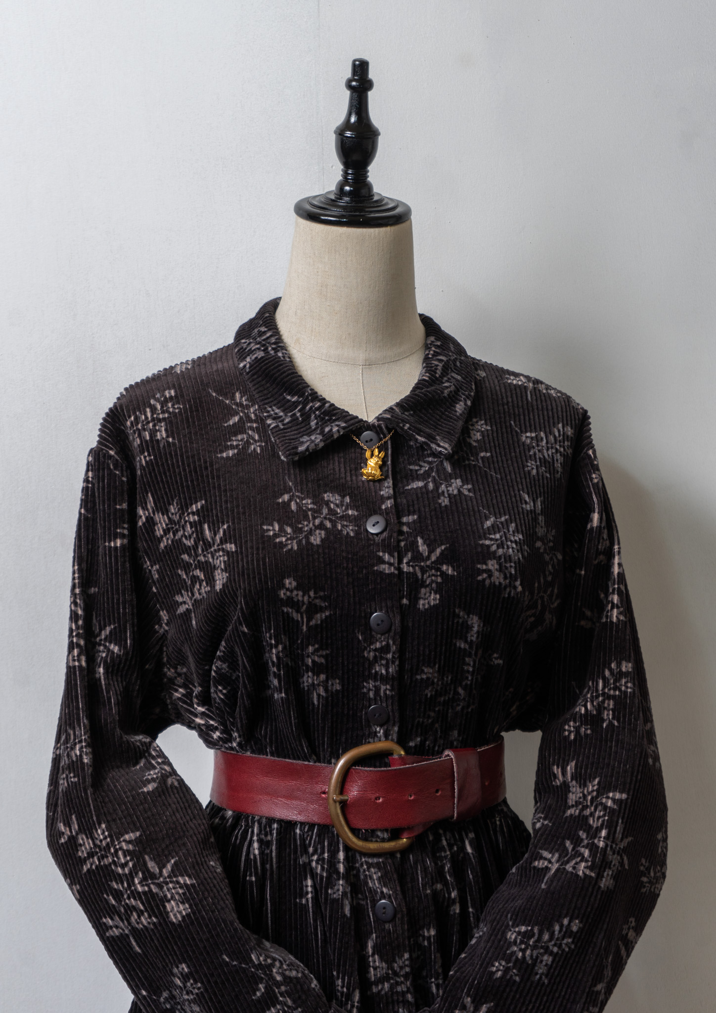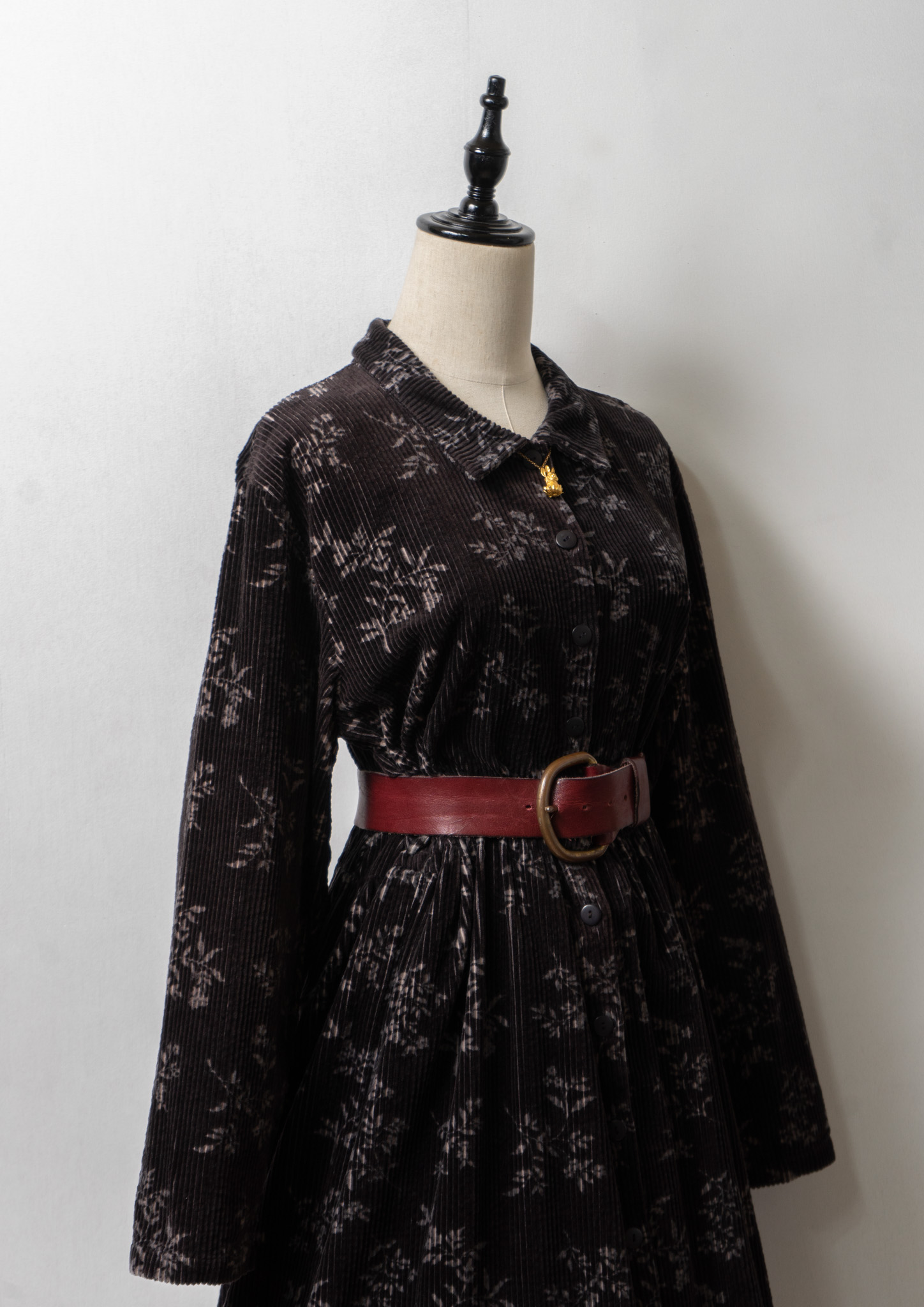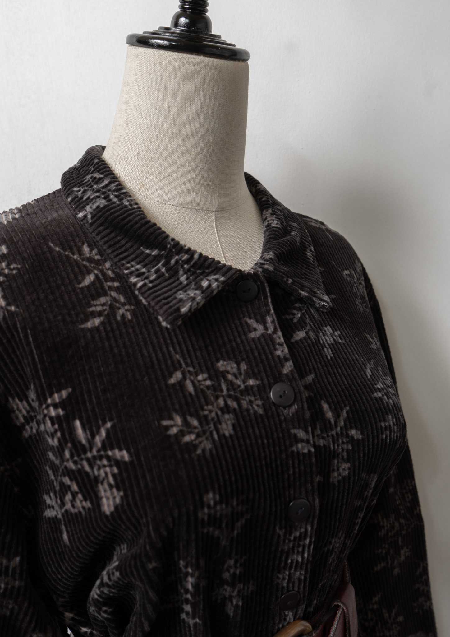 80~90's Flower Pattern Black Corduroy Dress