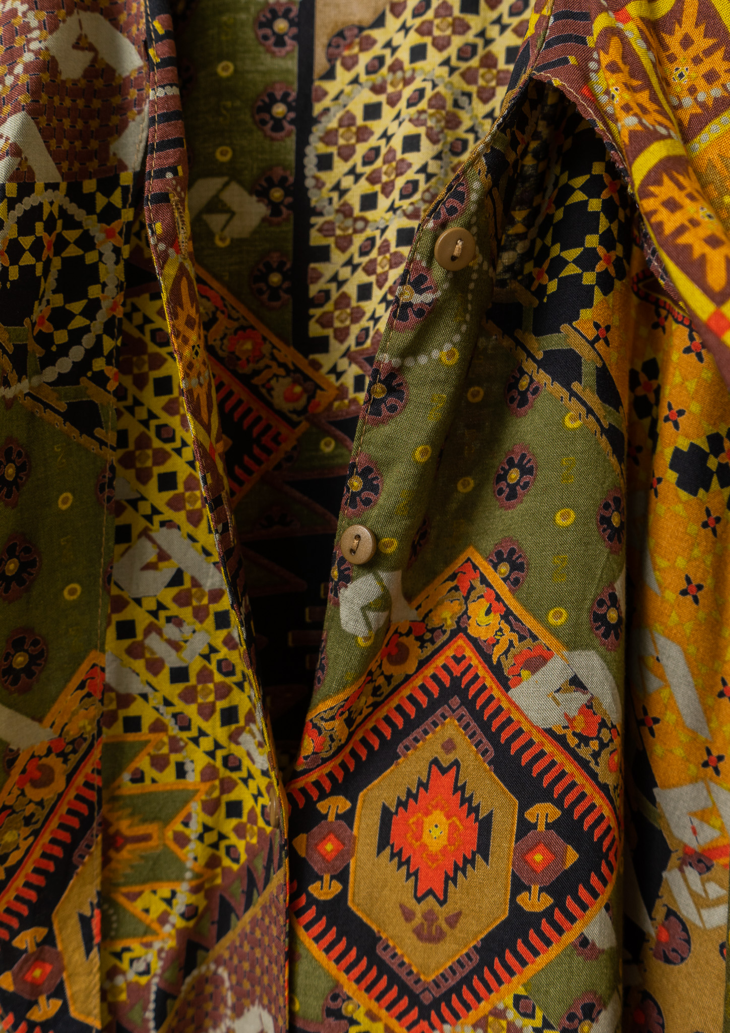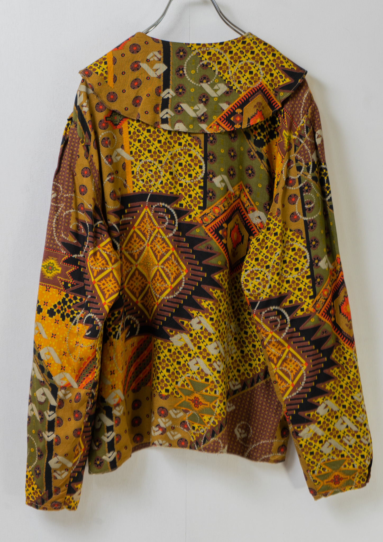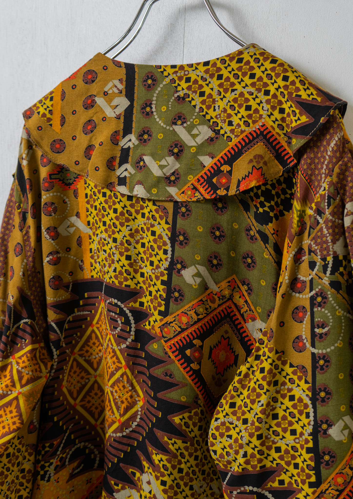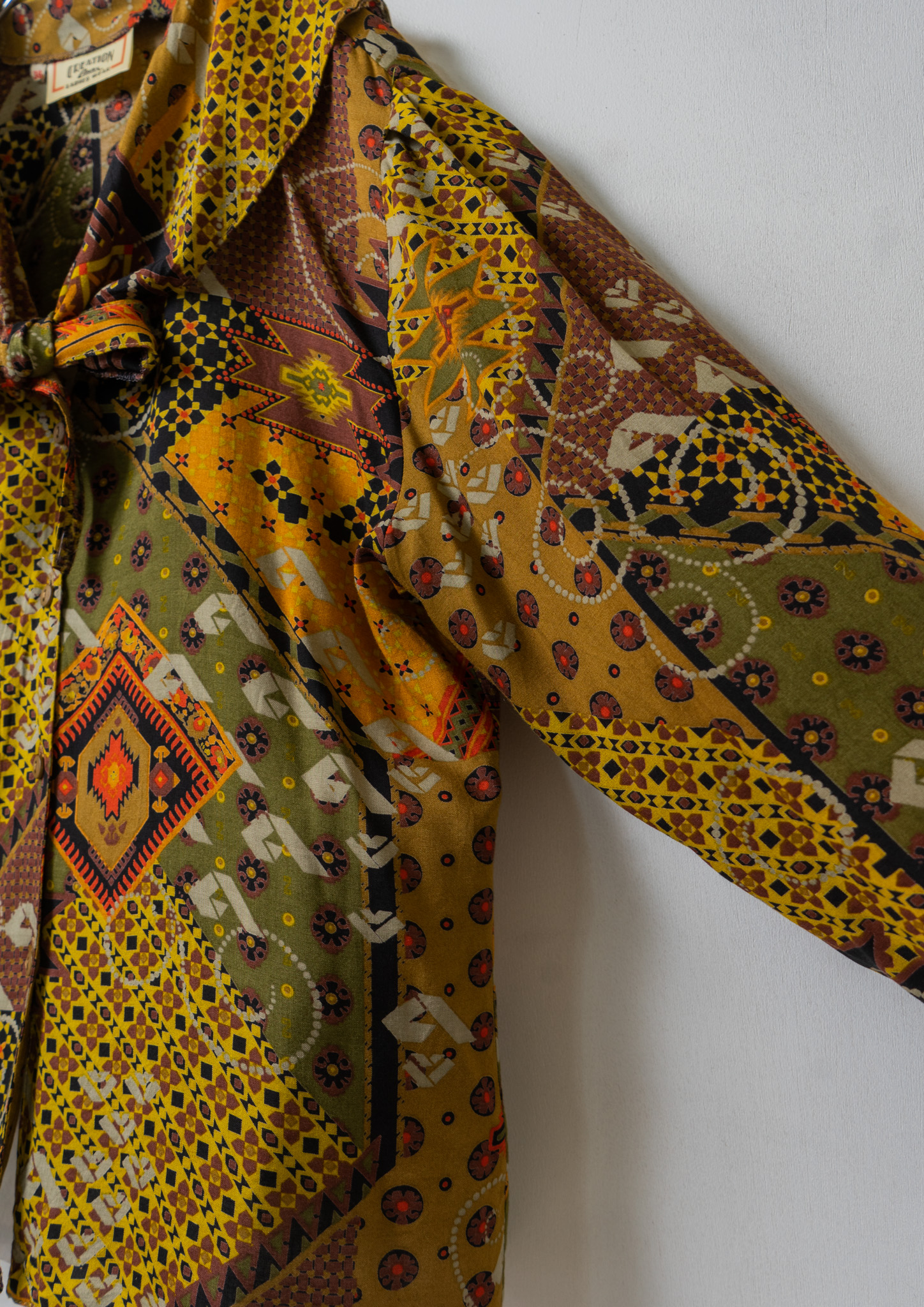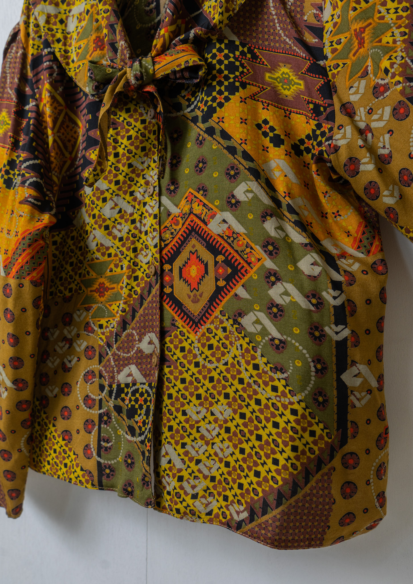 80's UK Unique Asian Inspired Pattern Bow-tie Blouse
