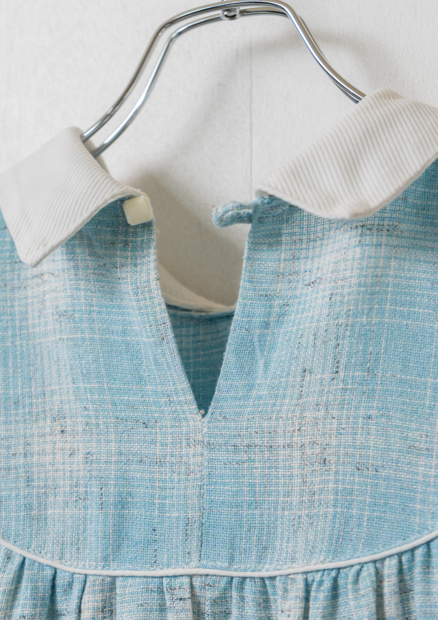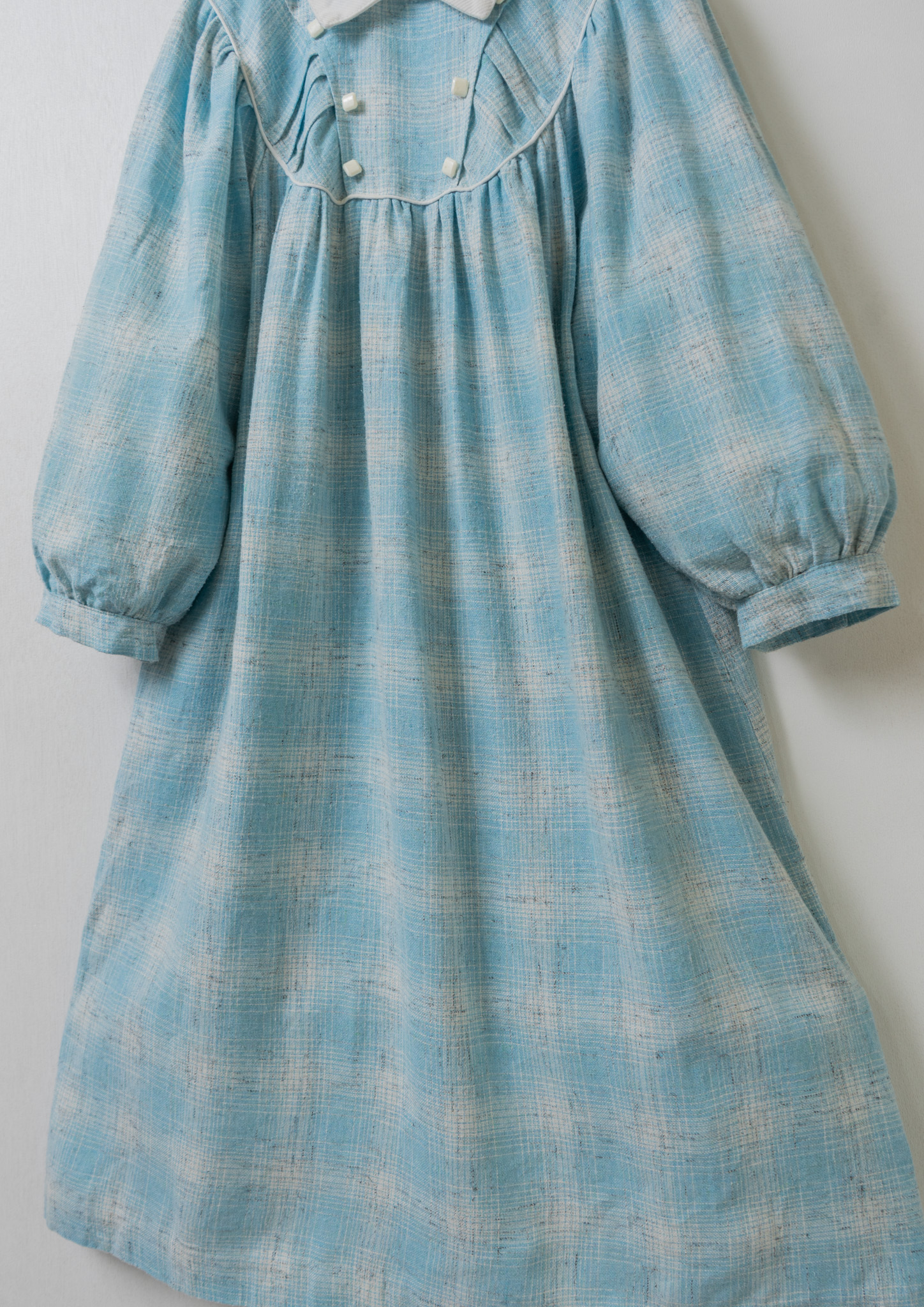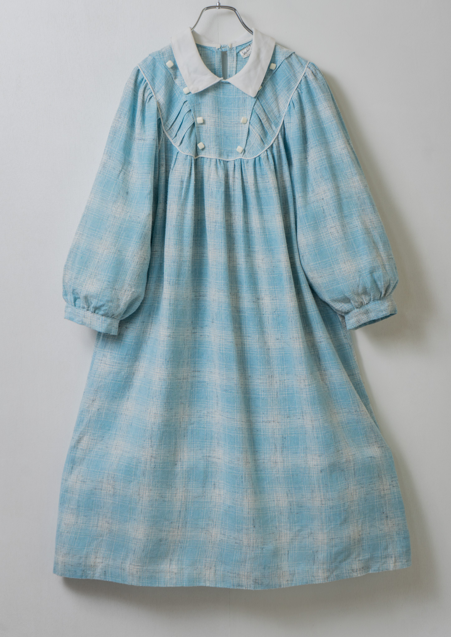 80's USA Houndstooth Pattern Velour Collar × Button Dress