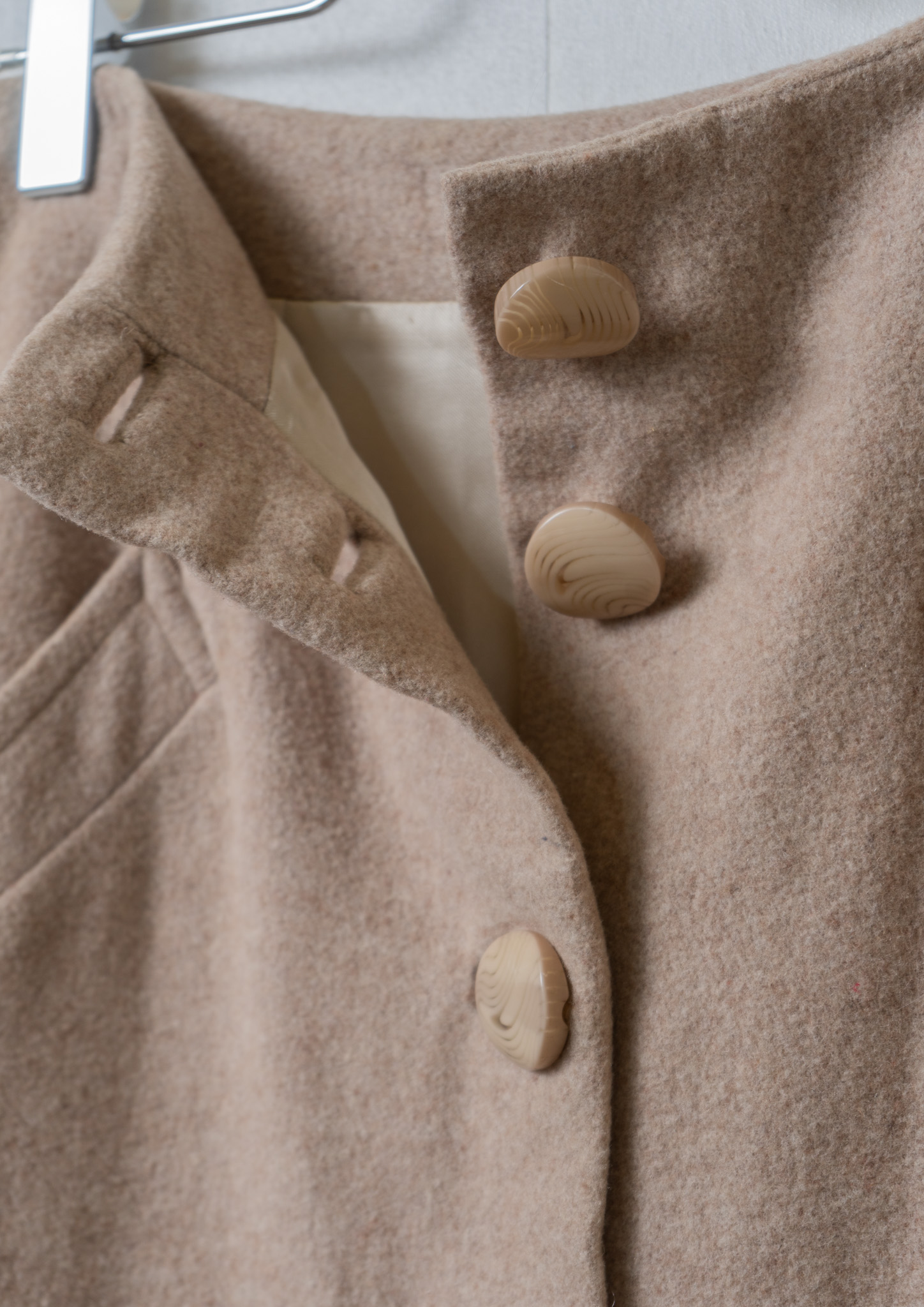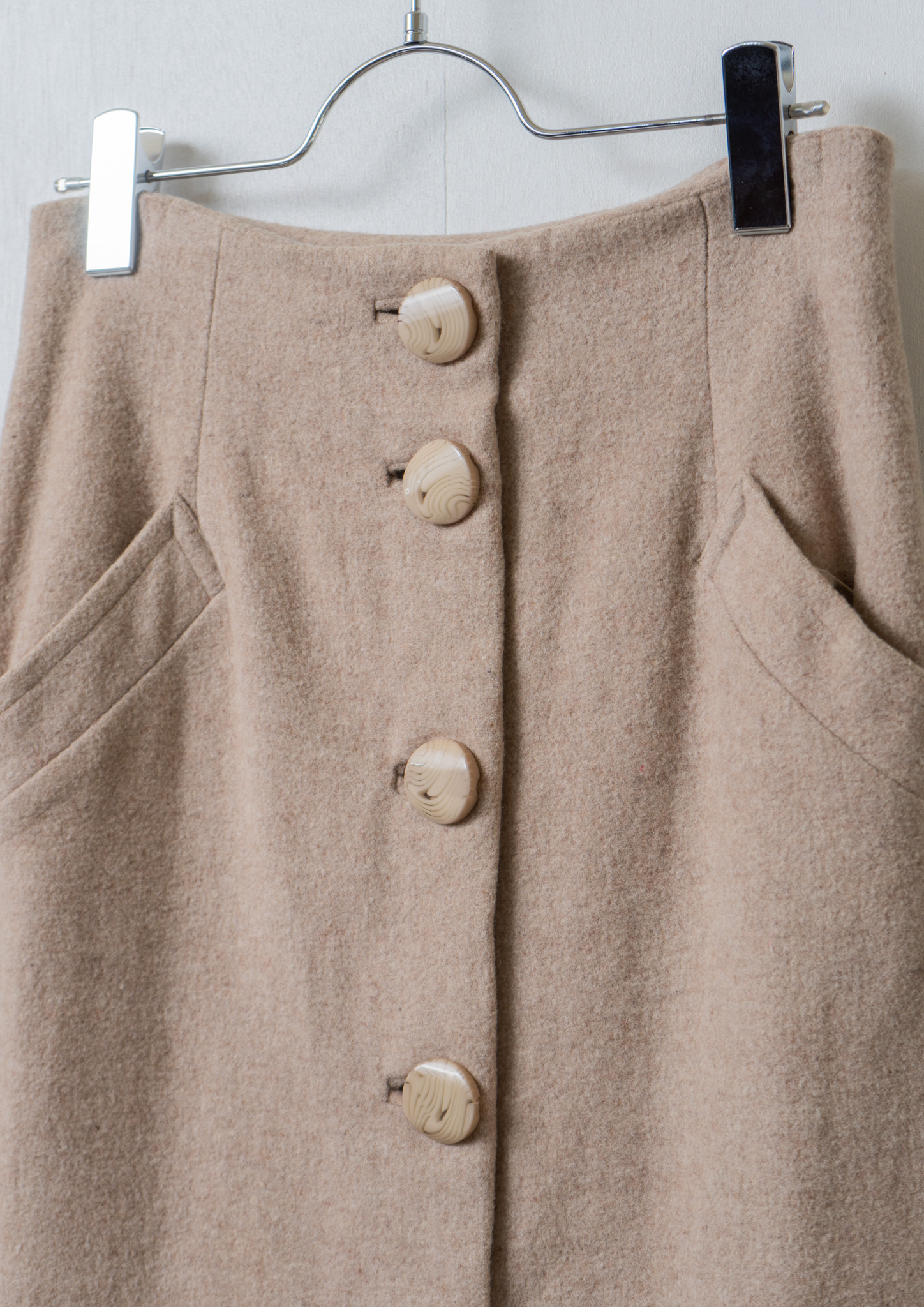 90's Euro Front Uique Big Button Design Check Pattern Brown Tyrol Skirt