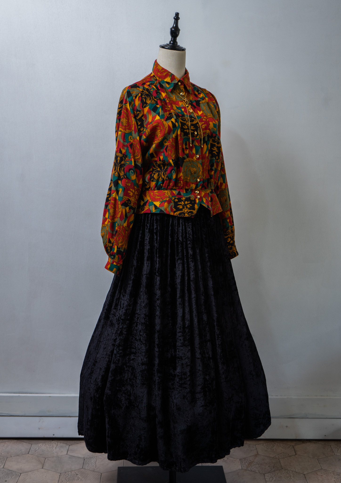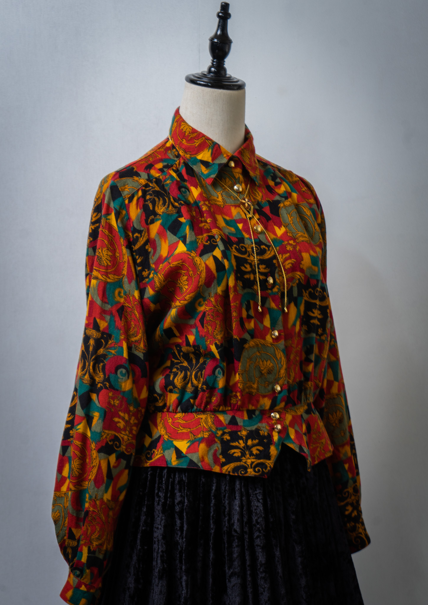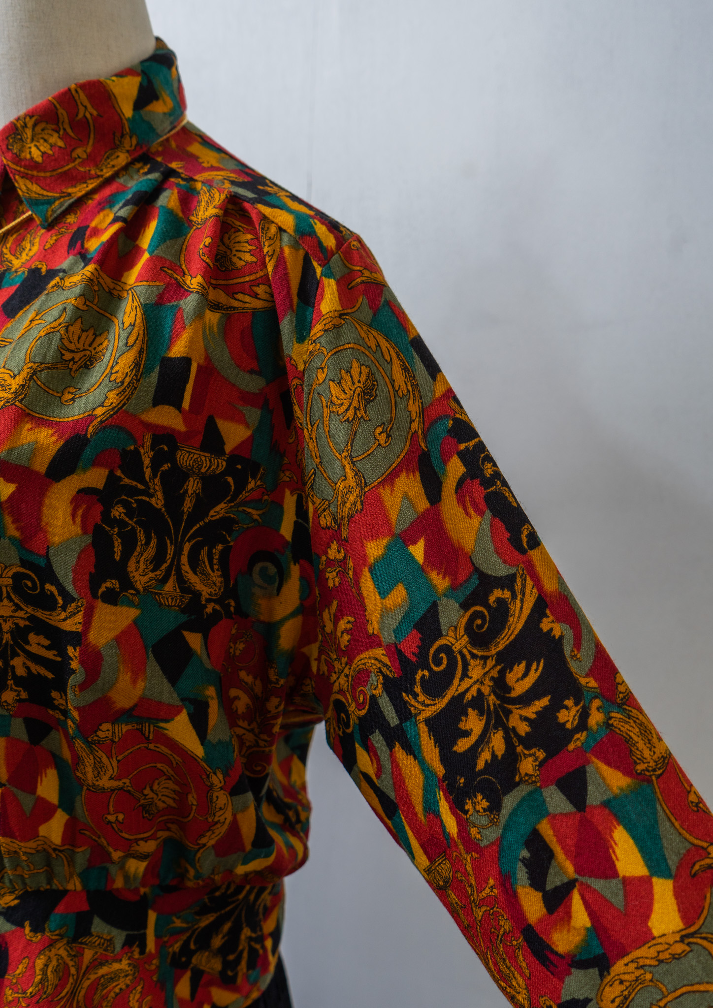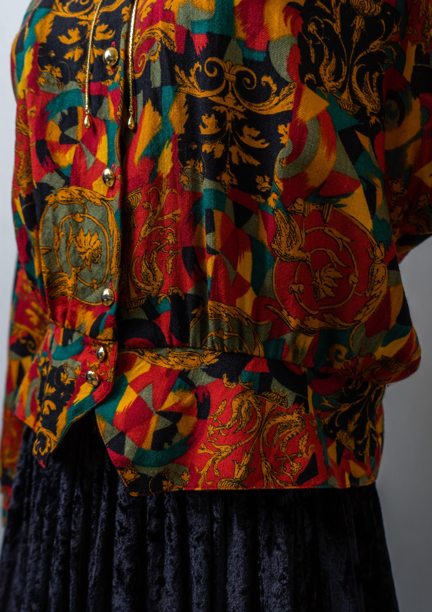 80's Euro Point Velor Design Check Pattern Vivid Pink Jacket Blouse