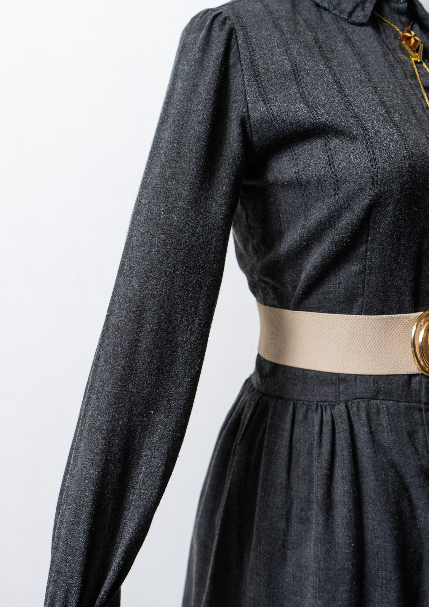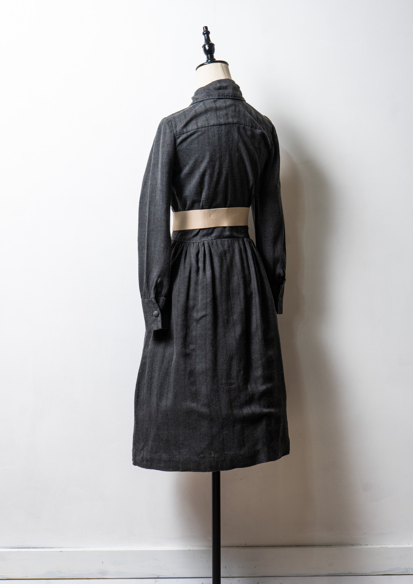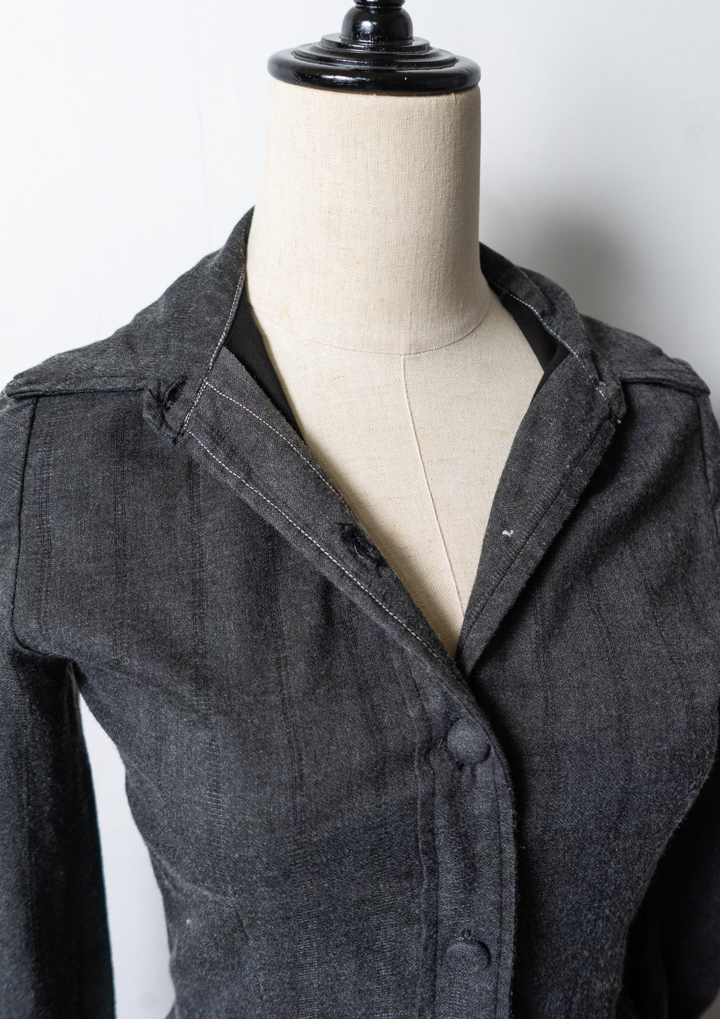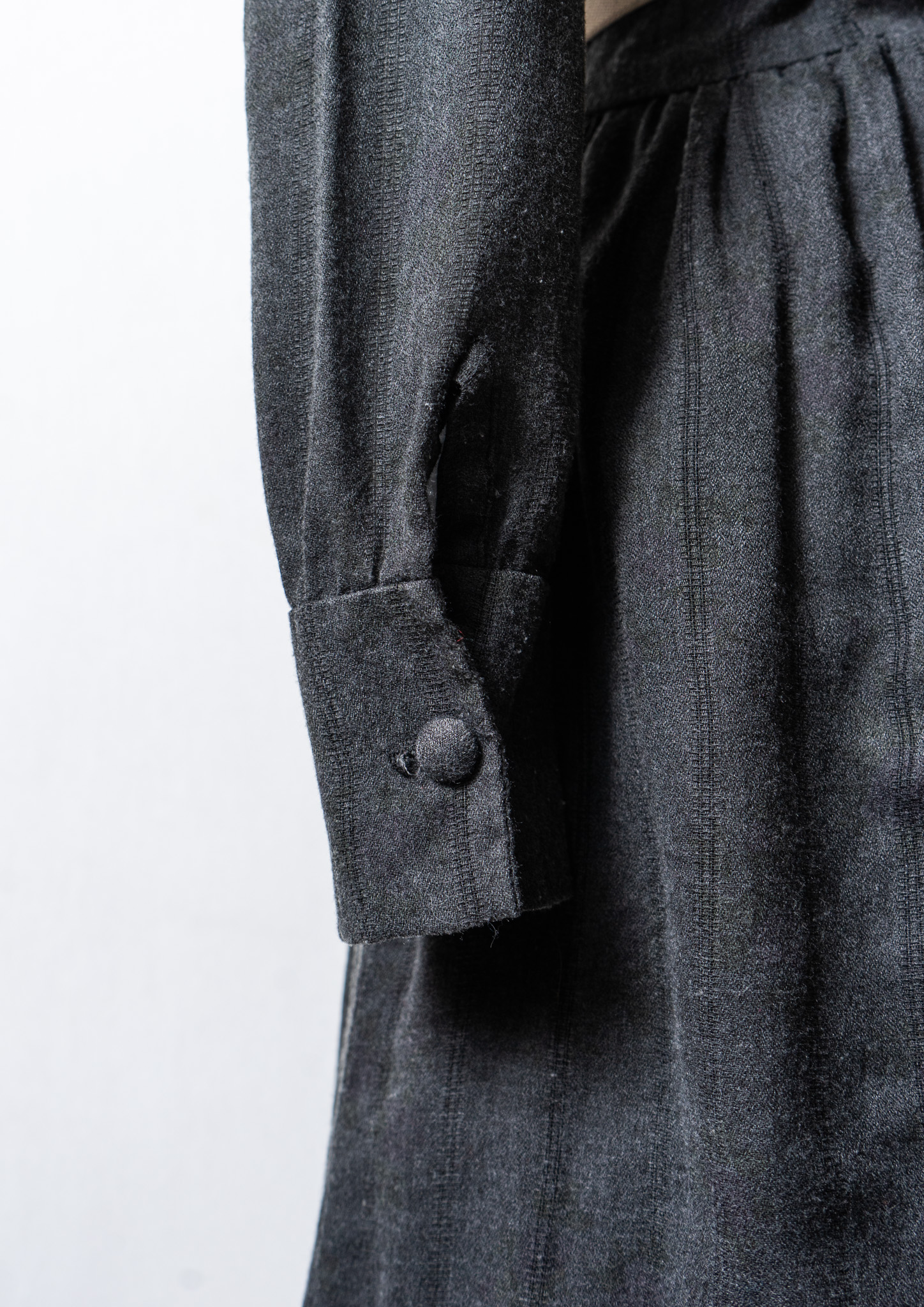 90's Black Velour Collar × Button Gray Over Dye Maxi Dress
