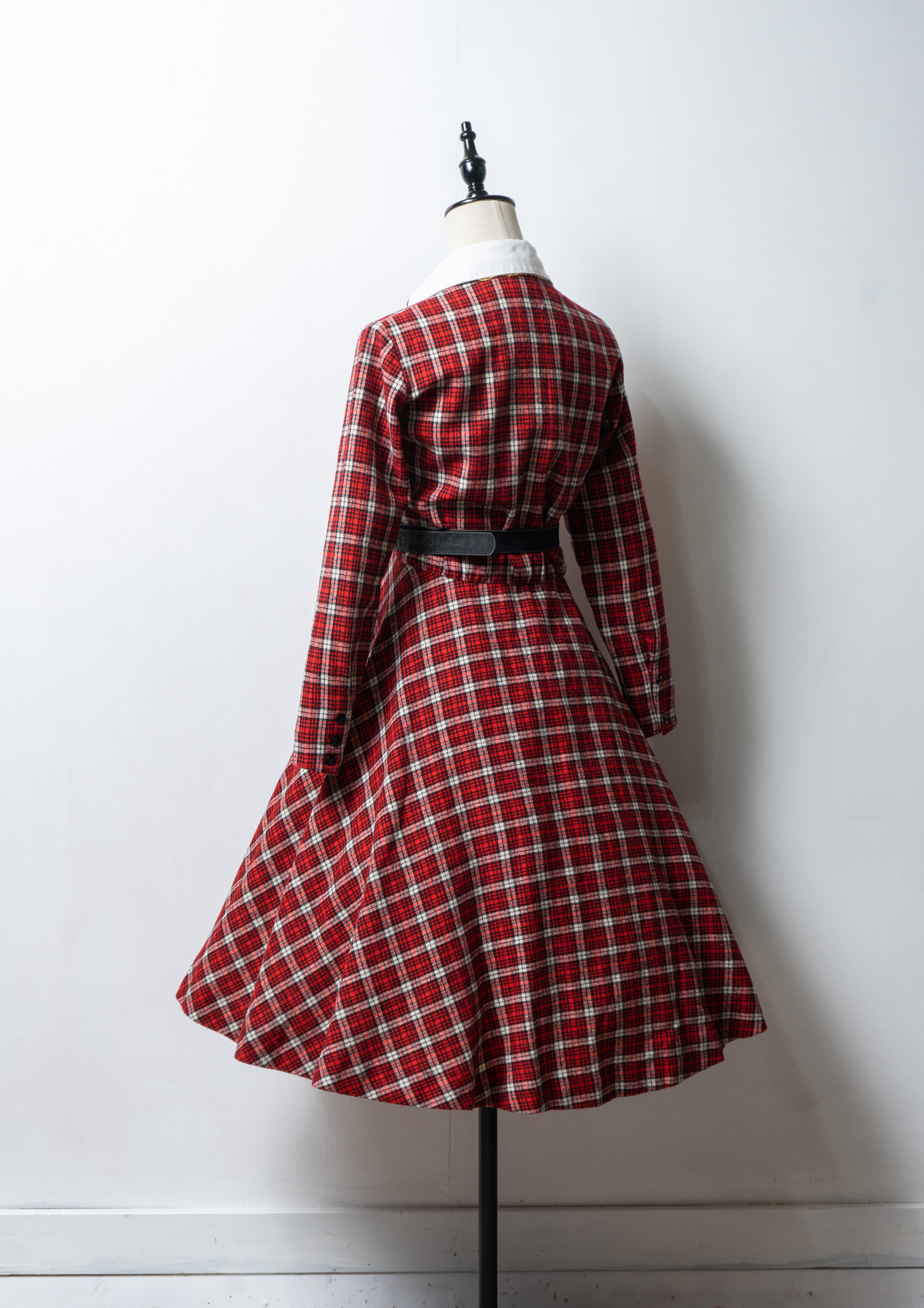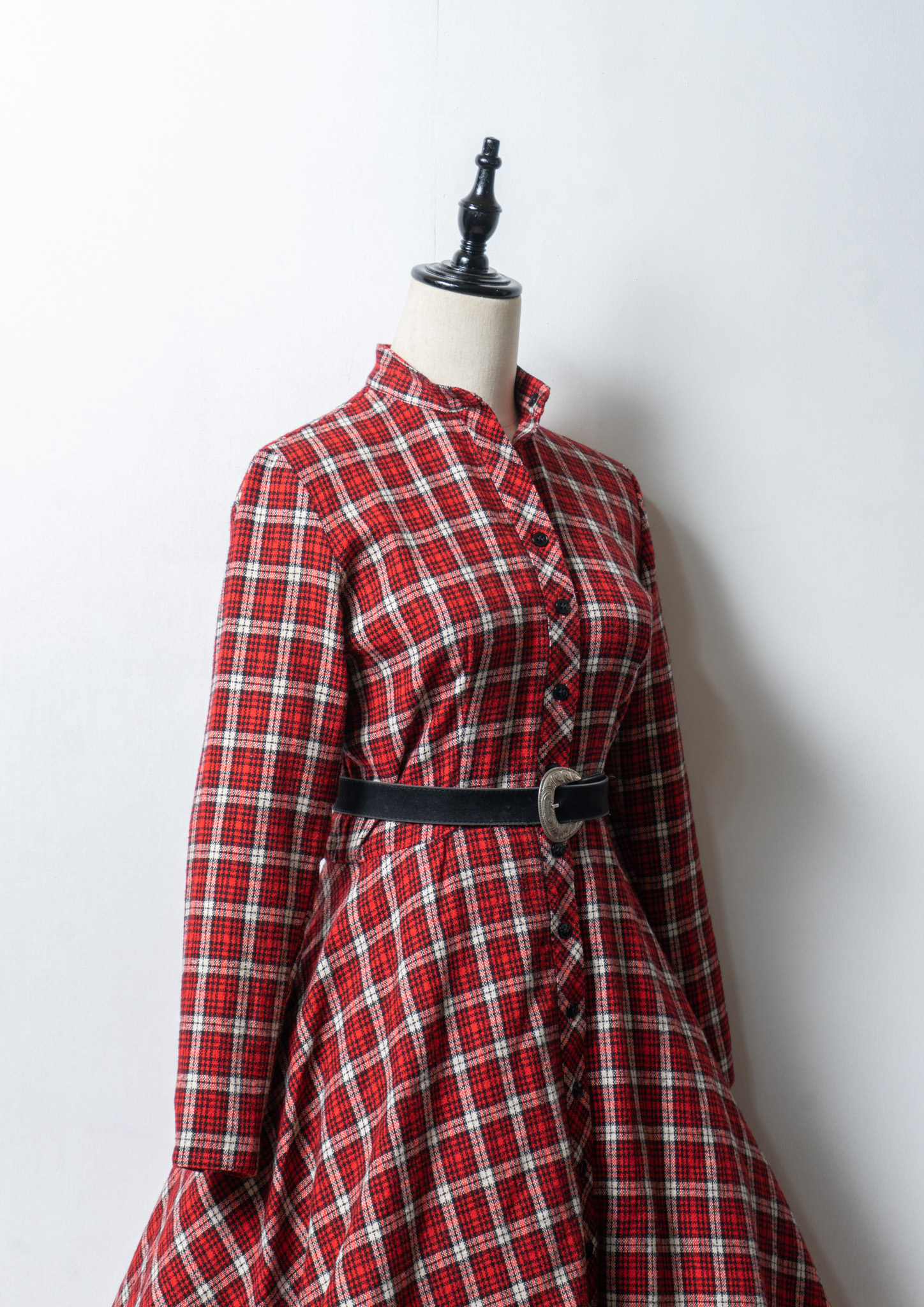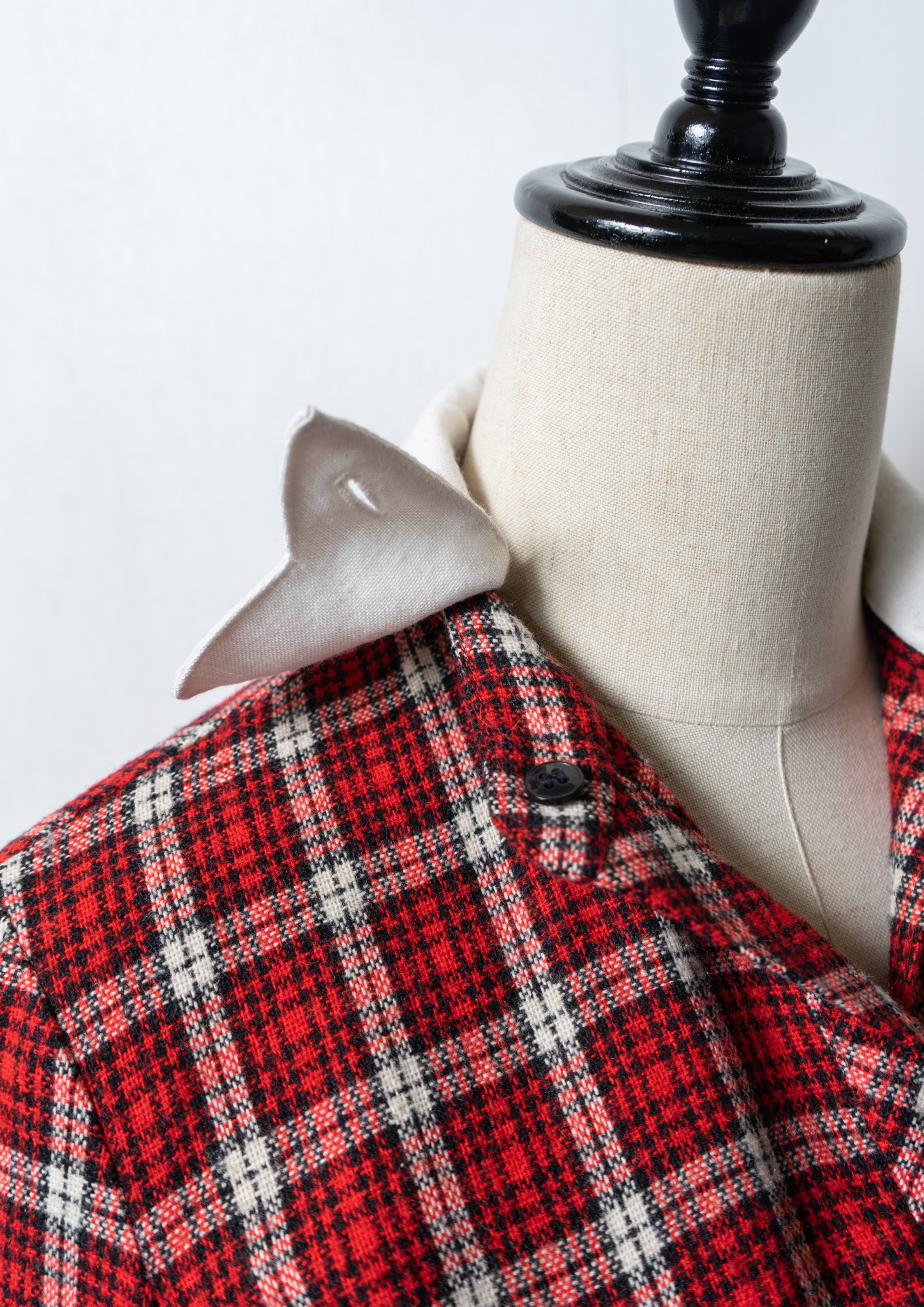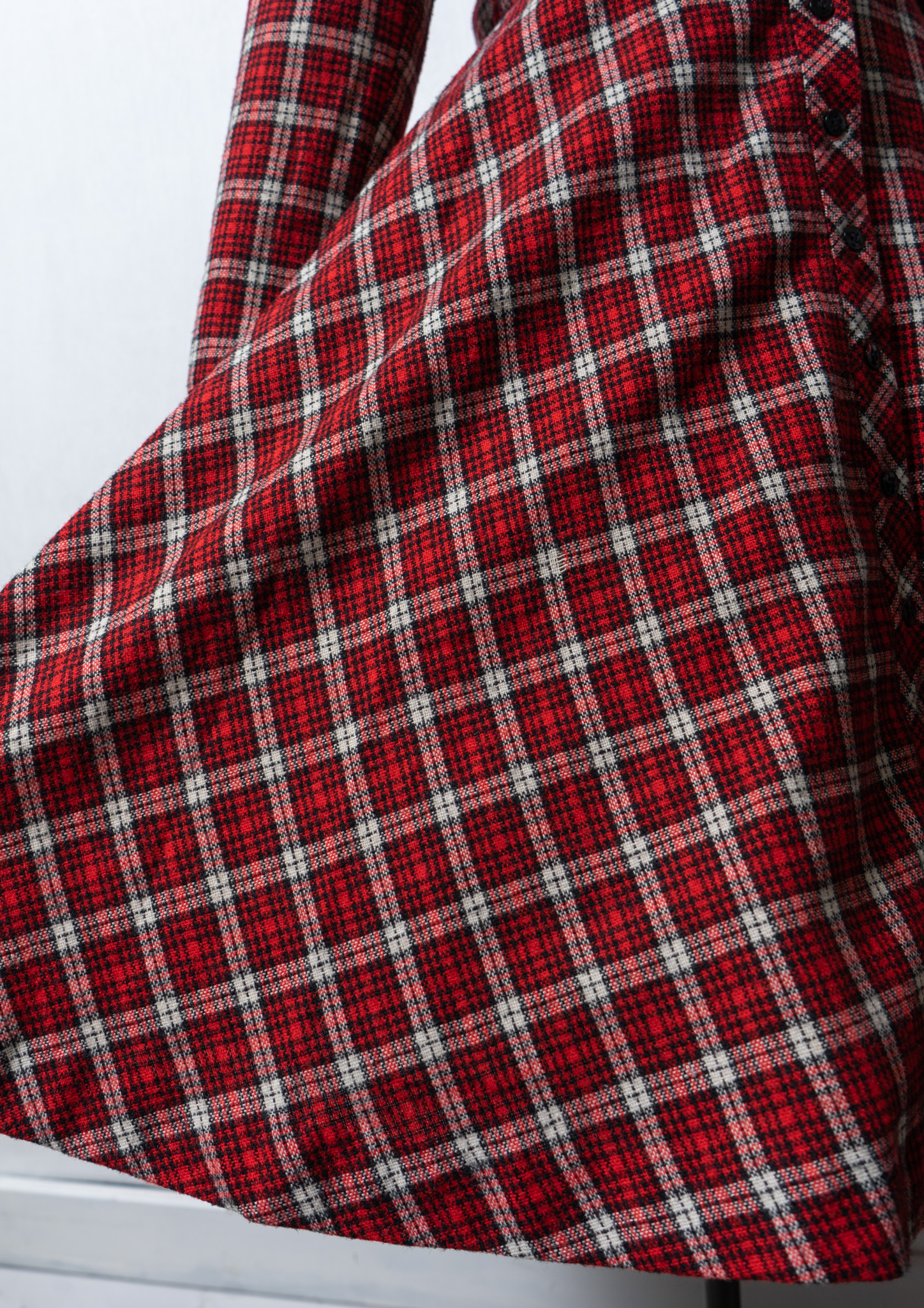 70~80's Euro Lanz Red Check Pattern Shirts Dress