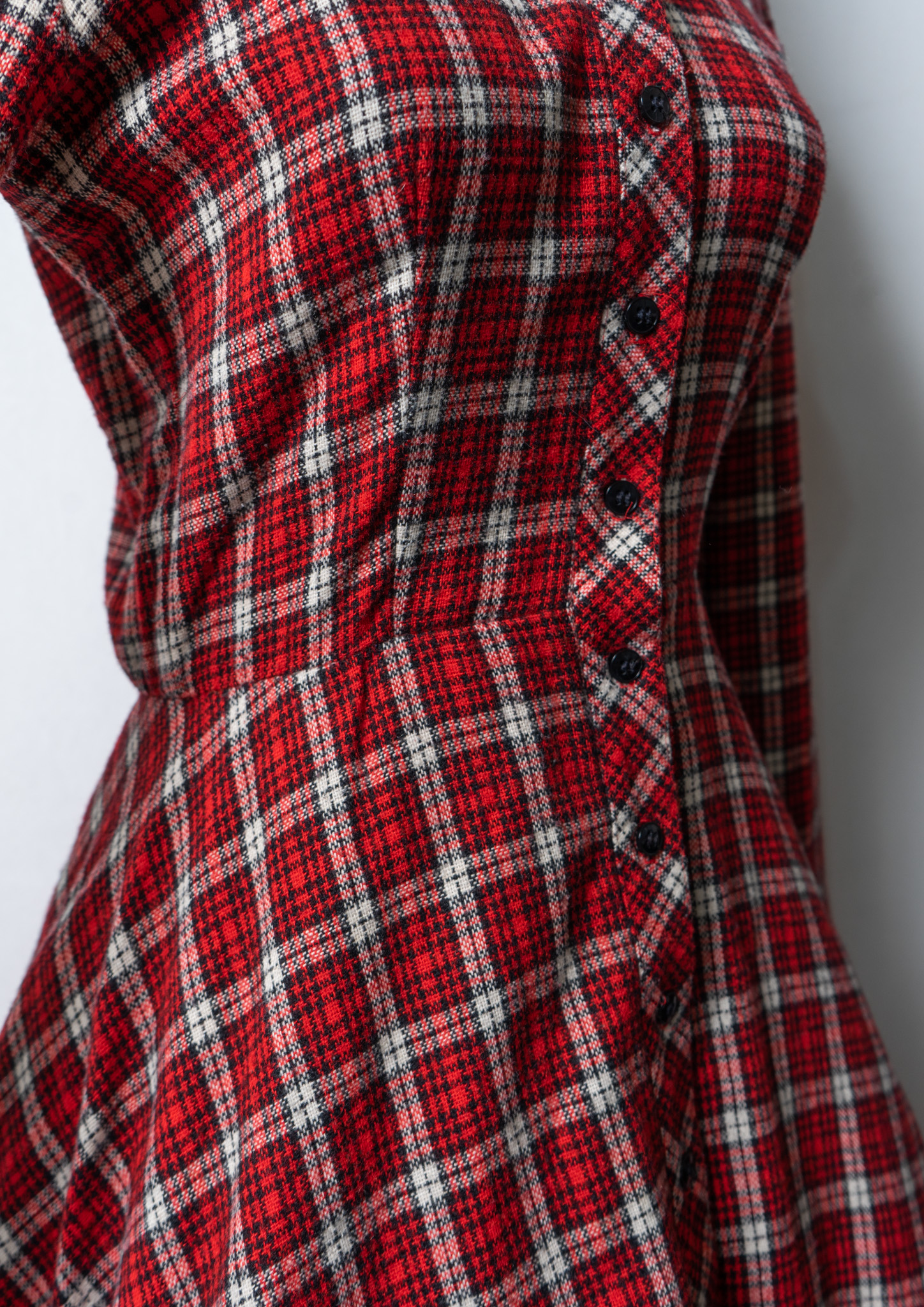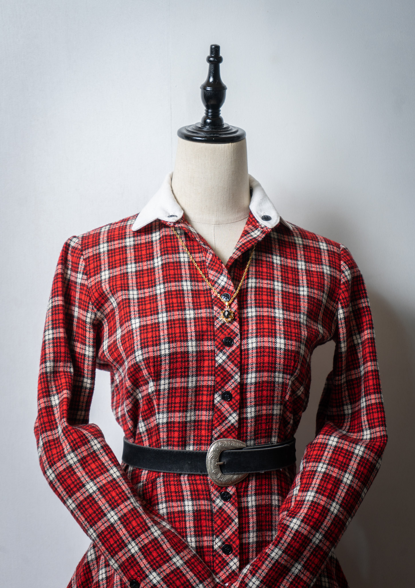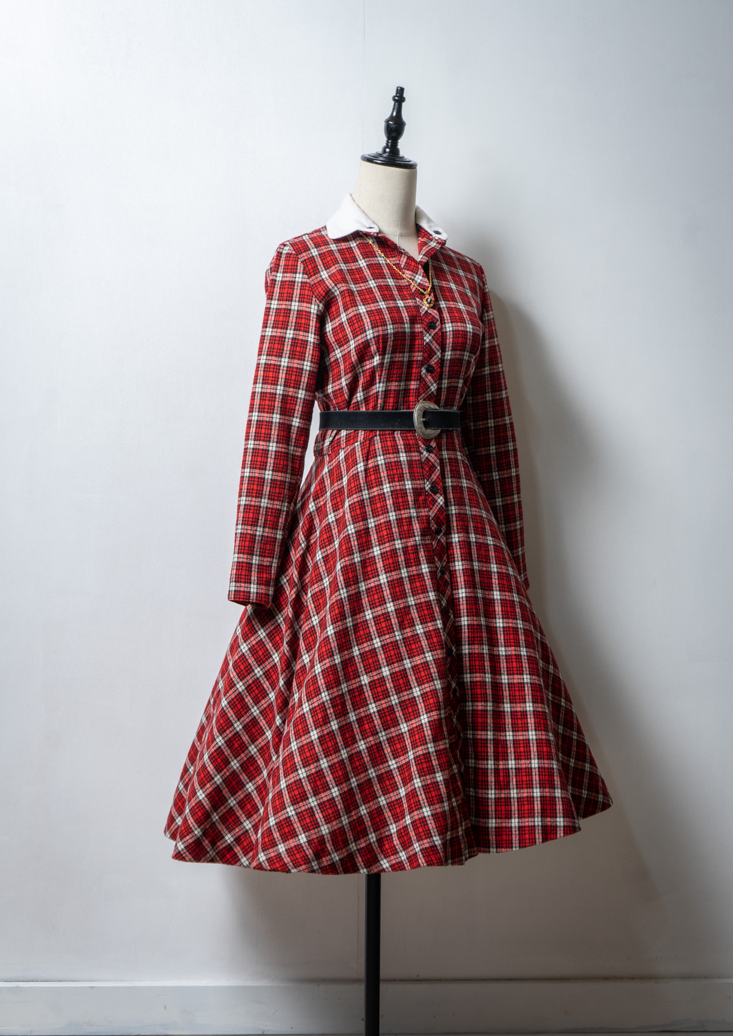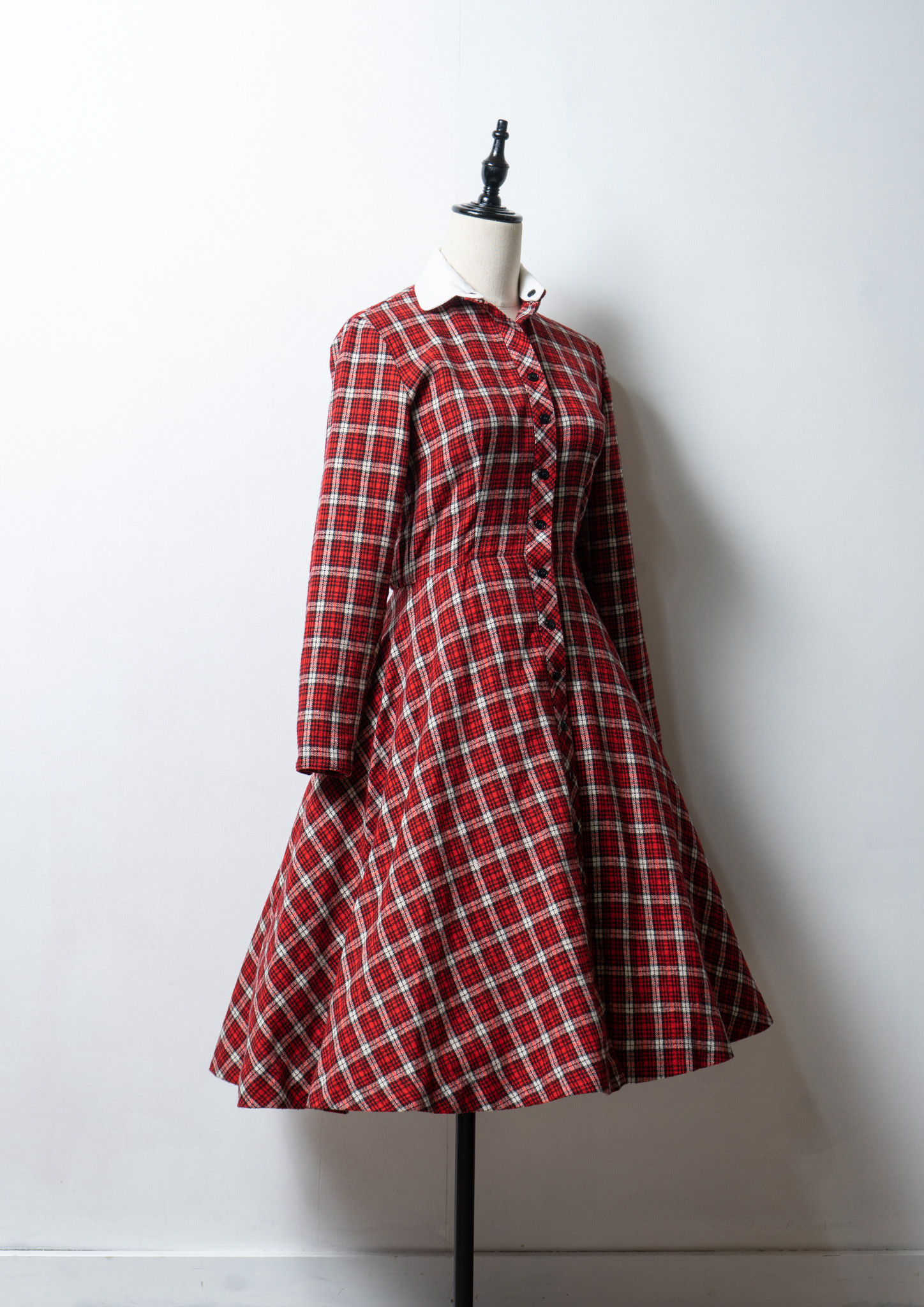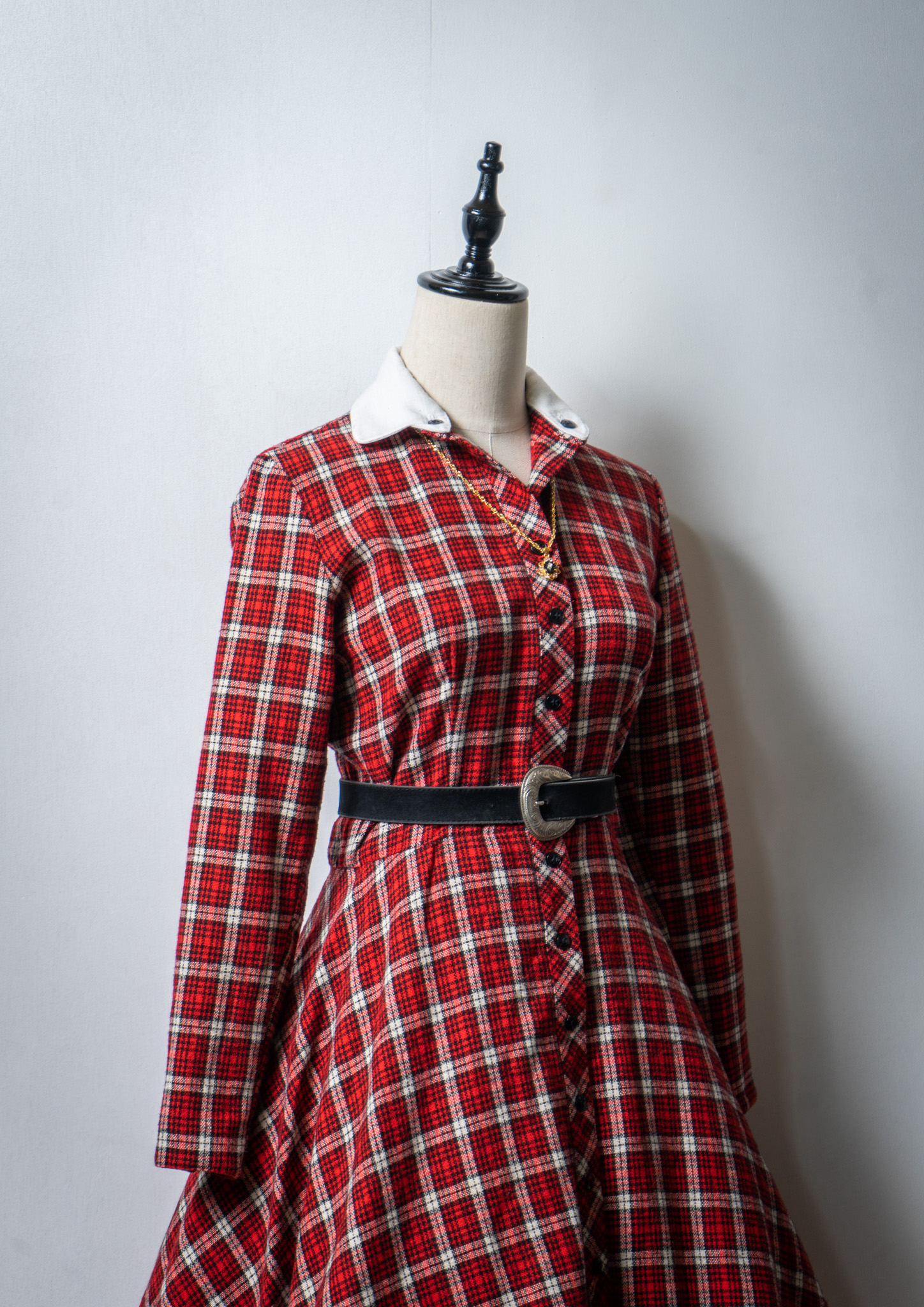 70~80's Euro Lanz Red Check Pattern Shirts Dress