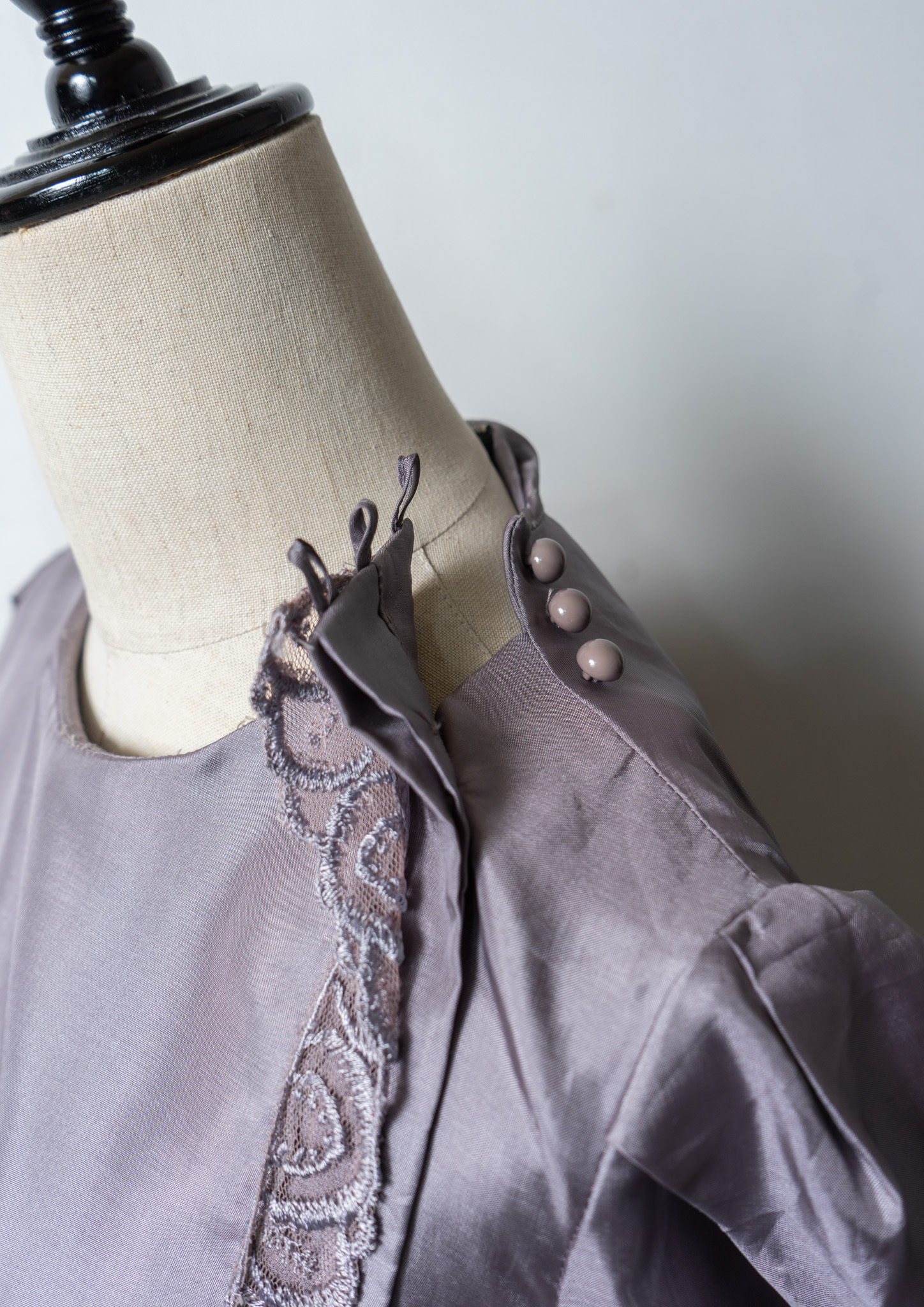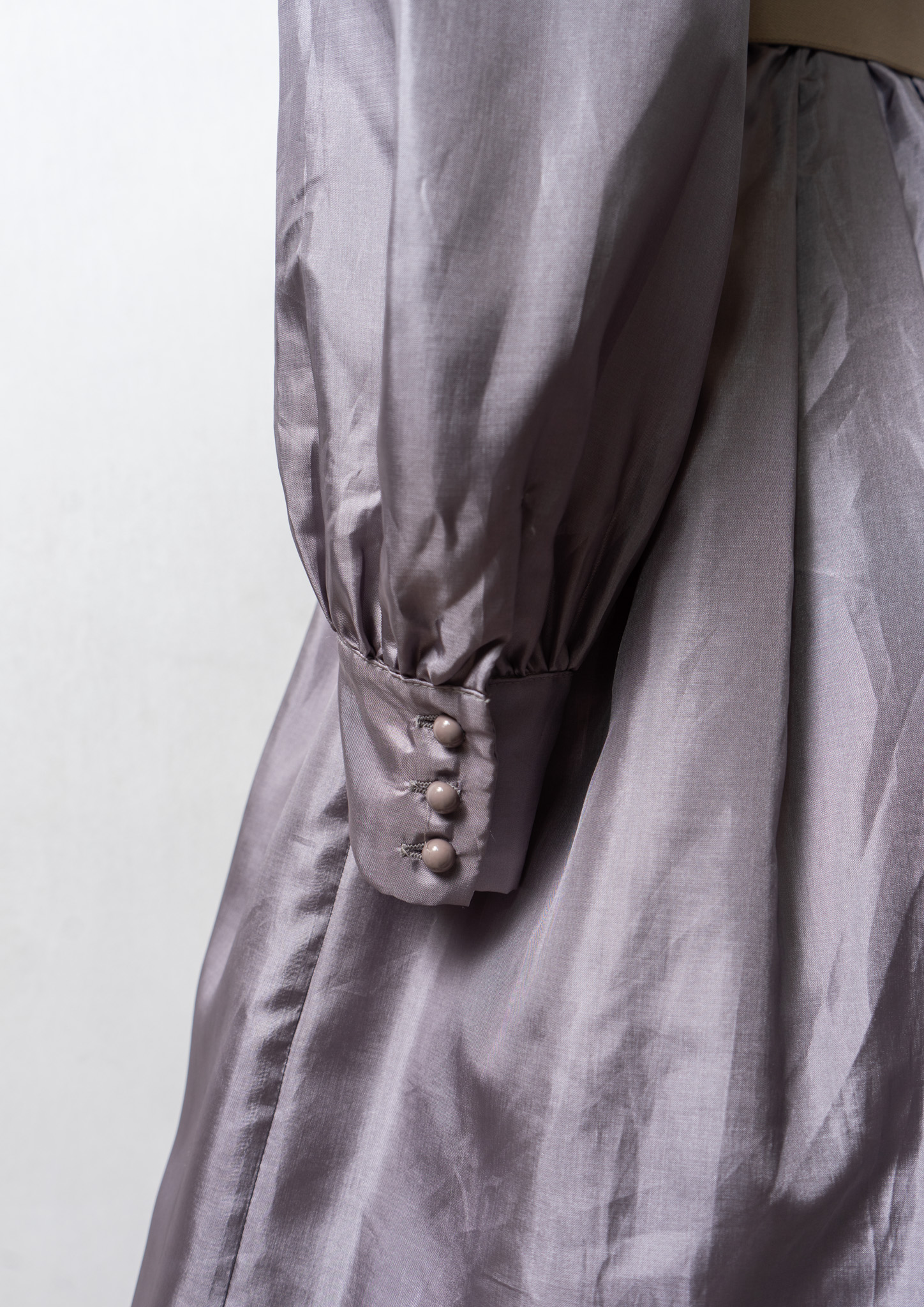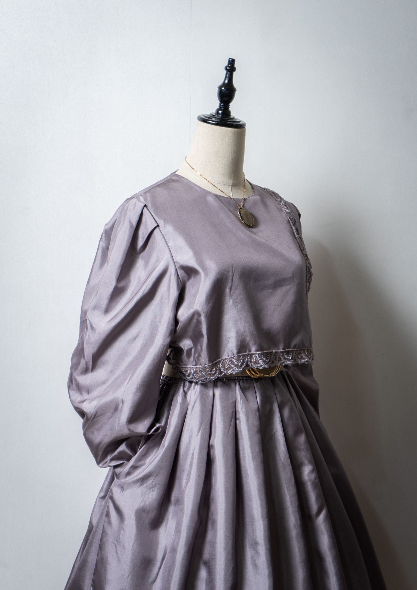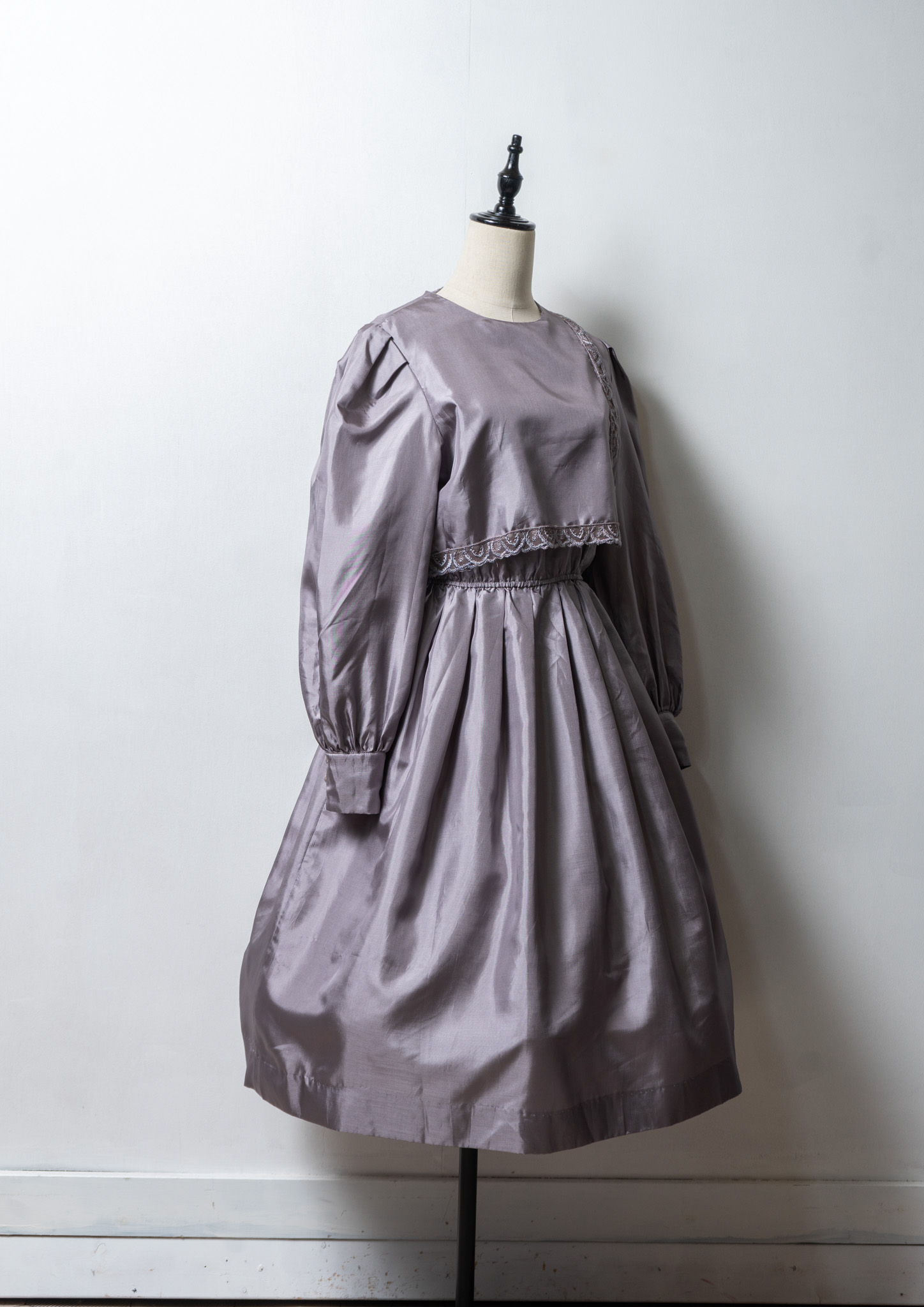 90's Black Velour Collar × Button Gray Over Dye Maxi Dress