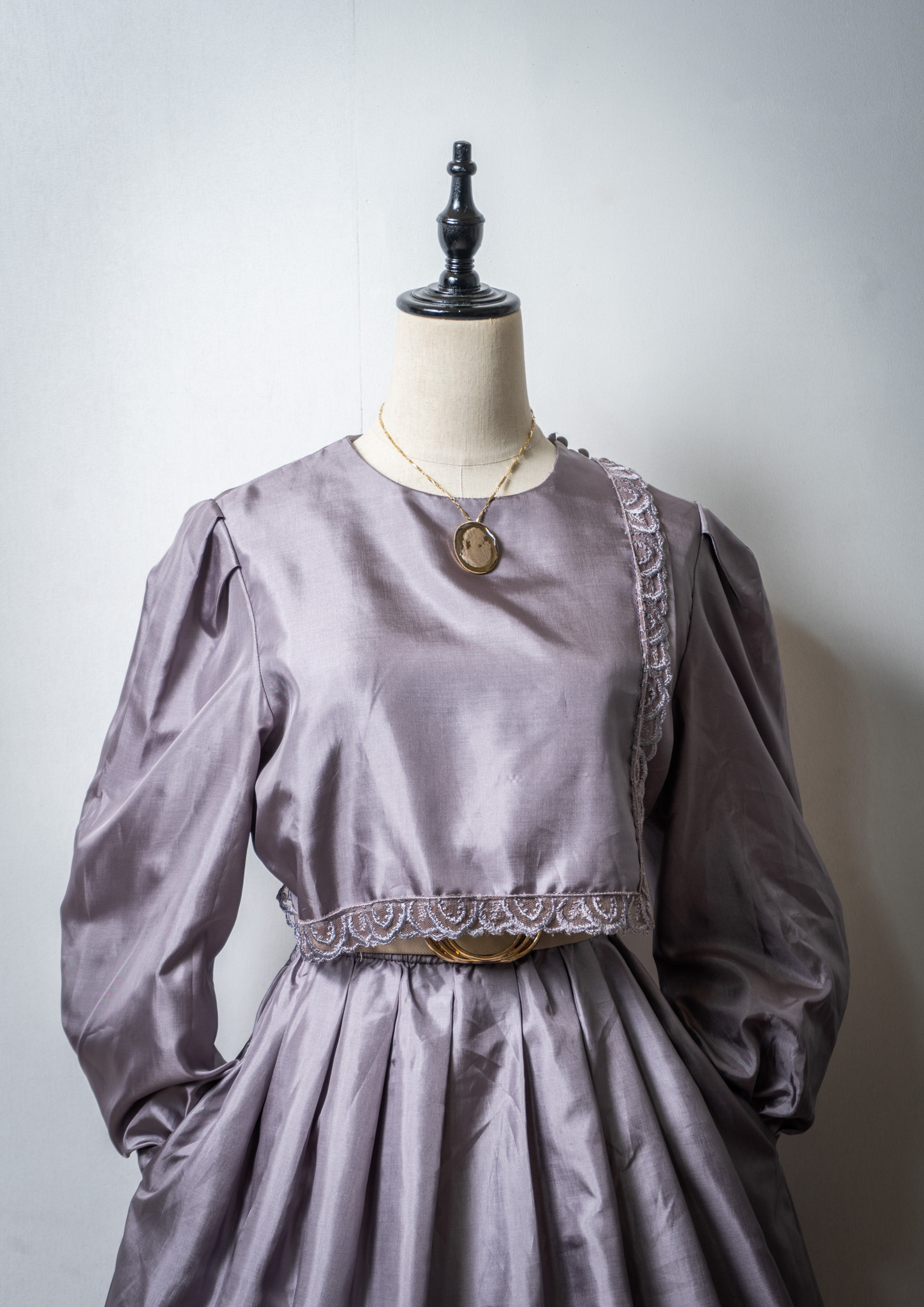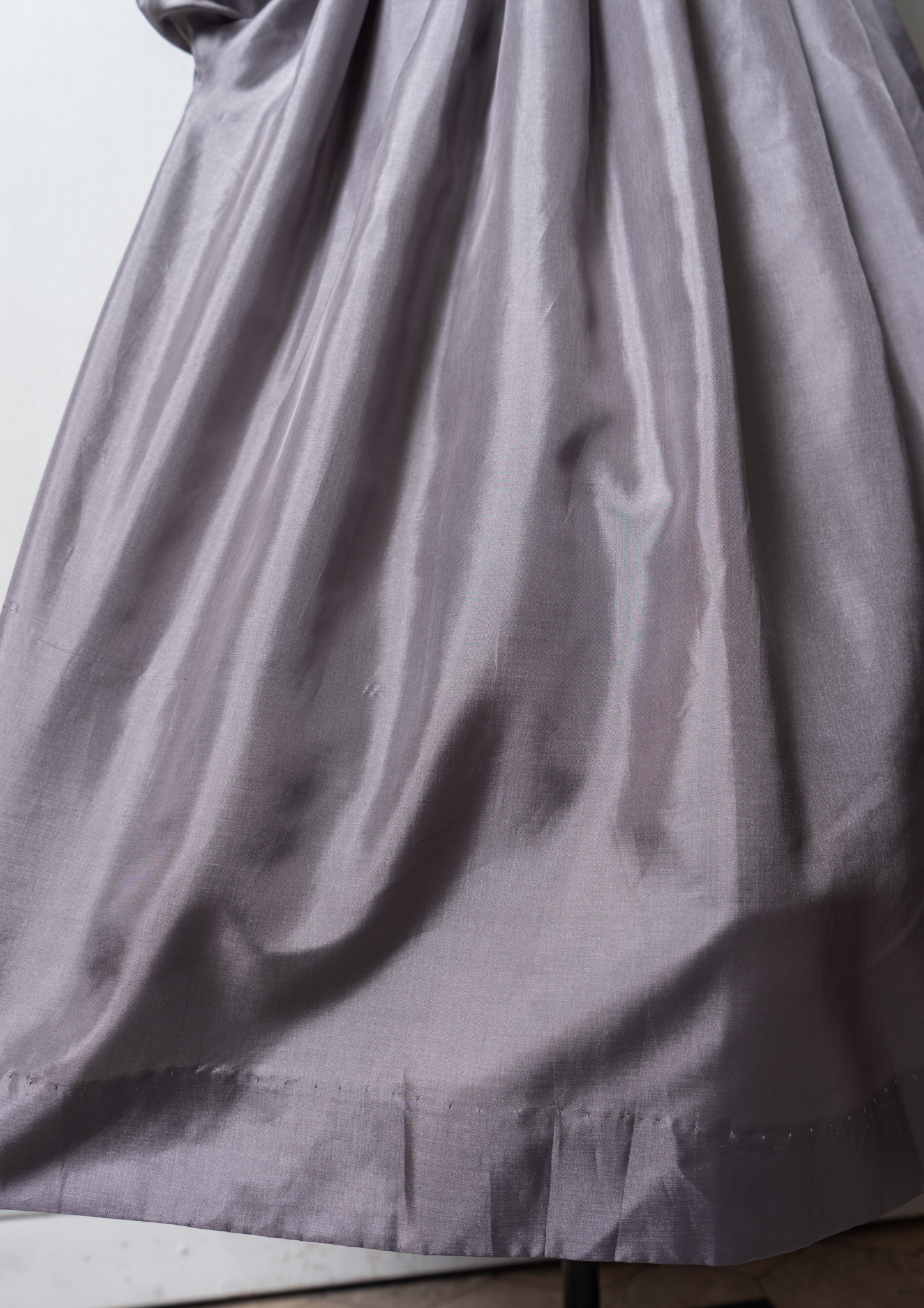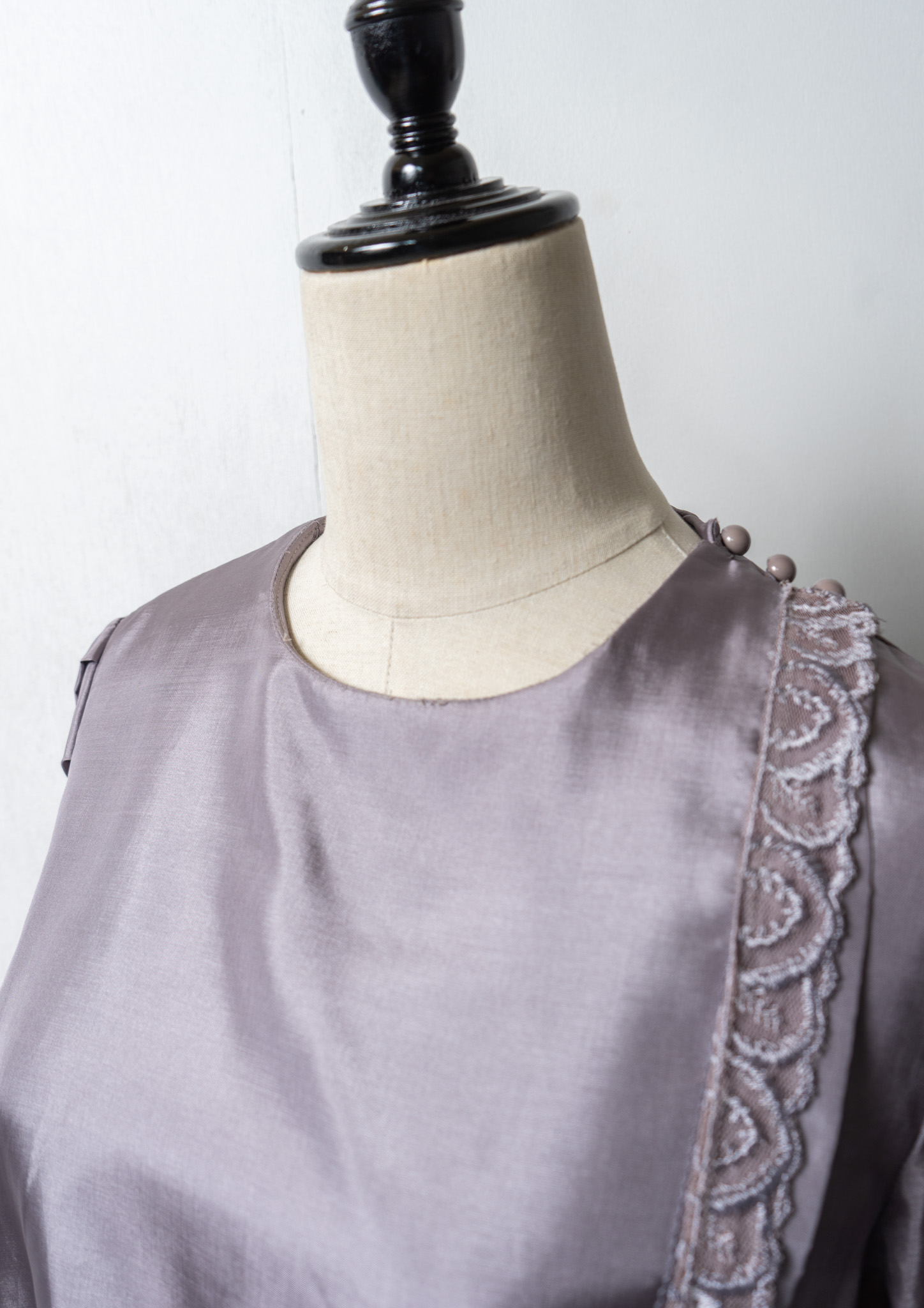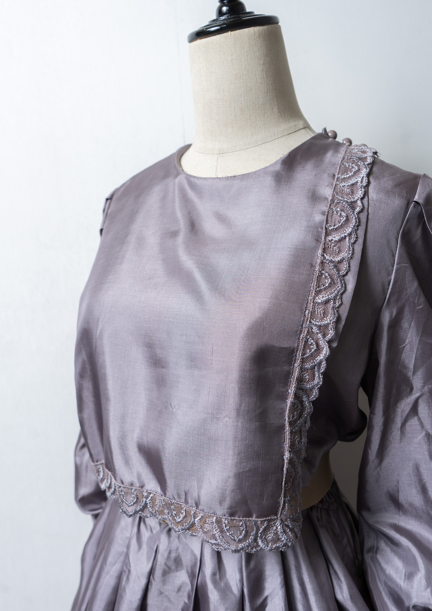 90's Black Velour Collar × Button Gray Over Dye Maxi Dress