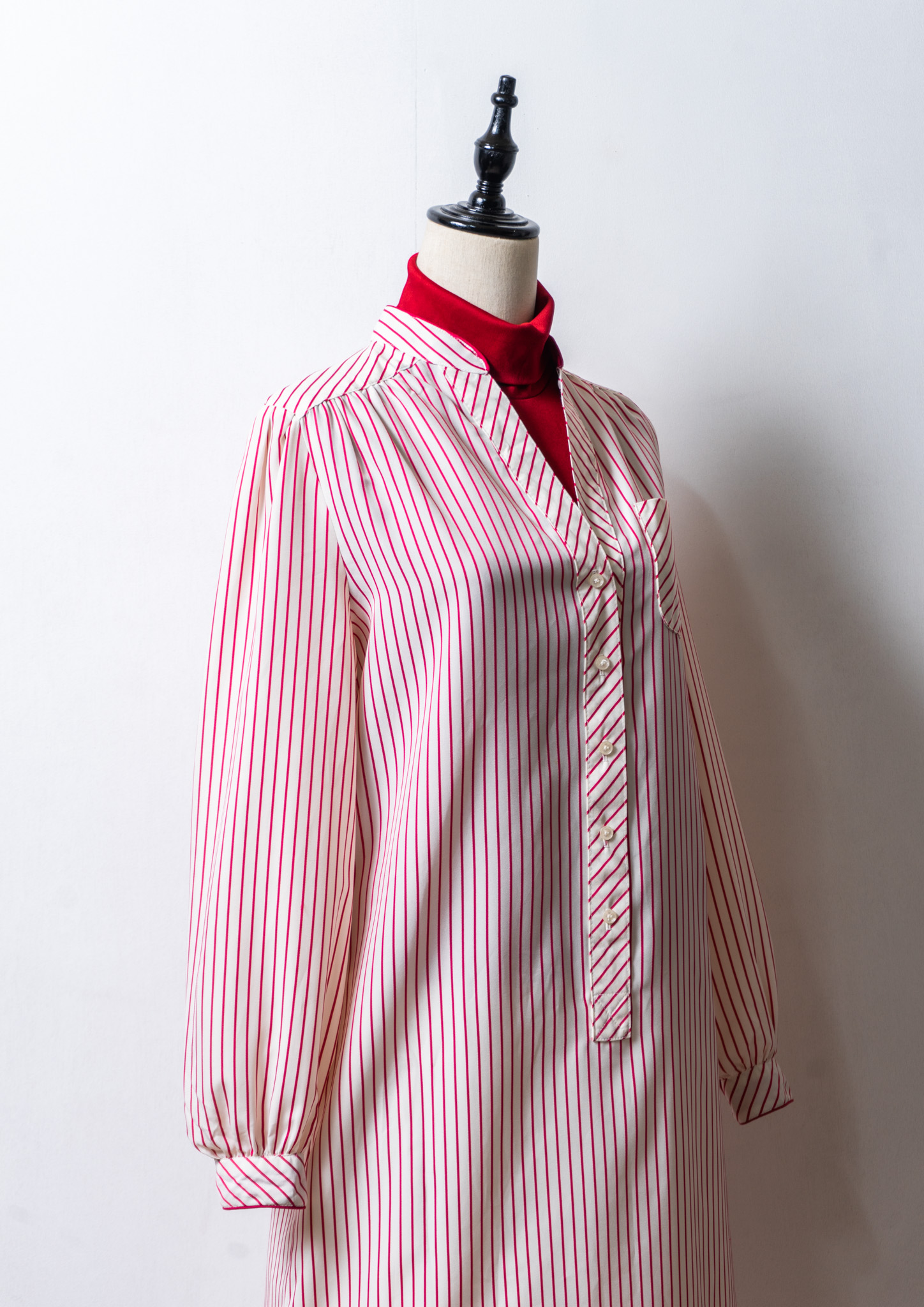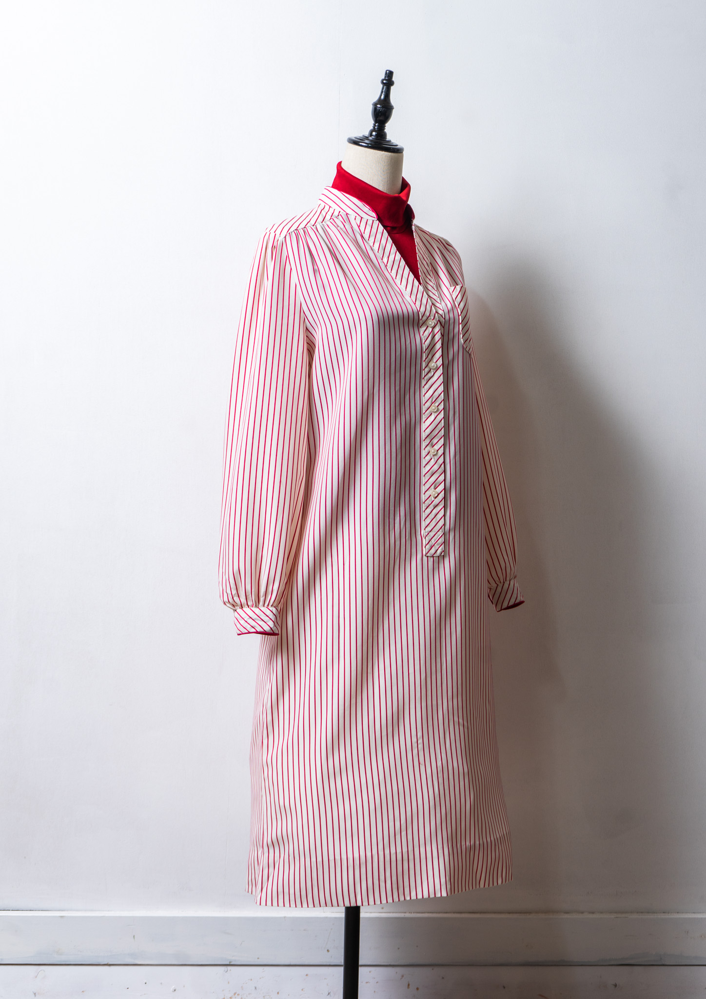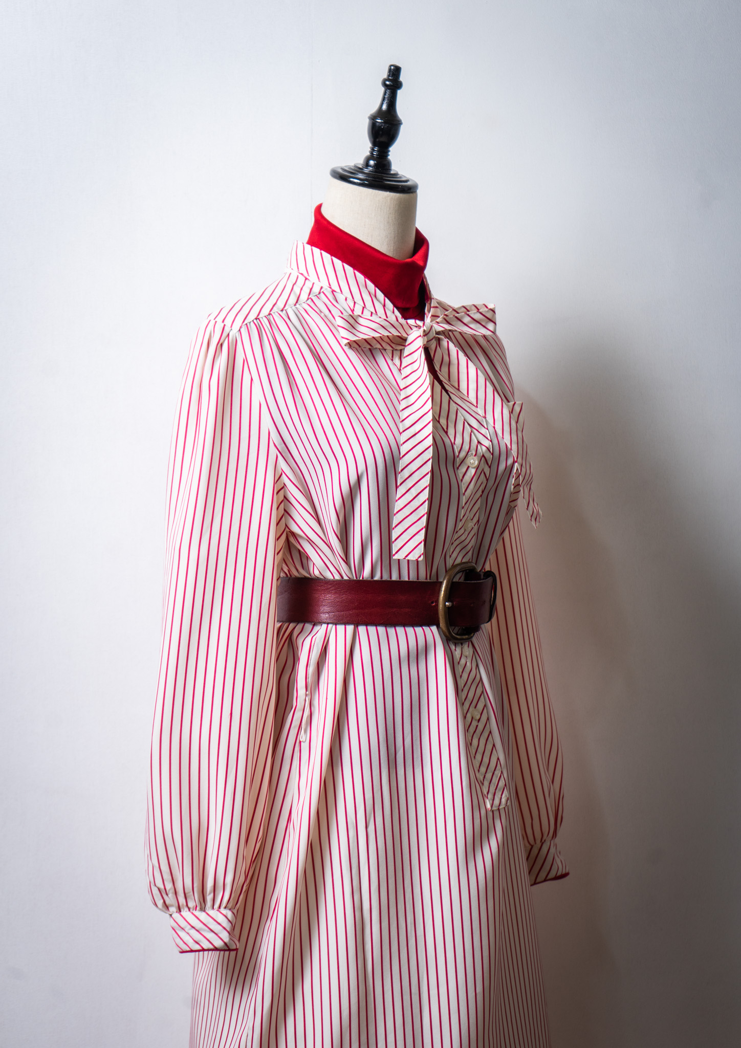 70's USA Red Stripe Pattern Bow-tie White Dress