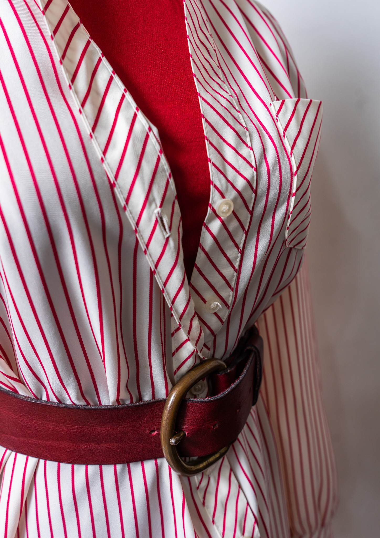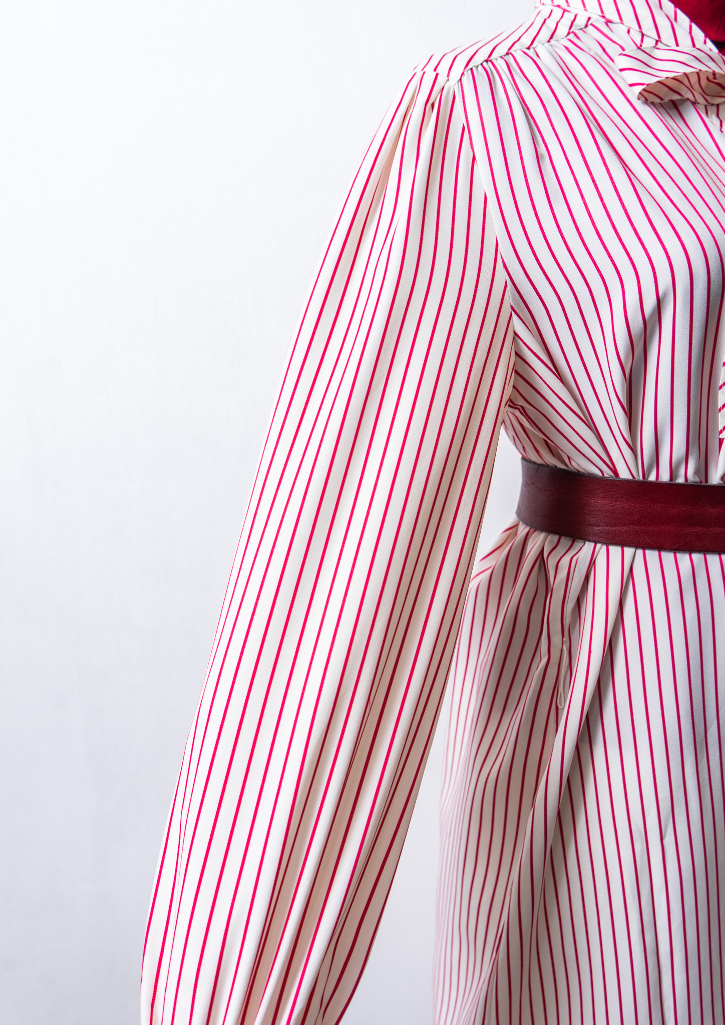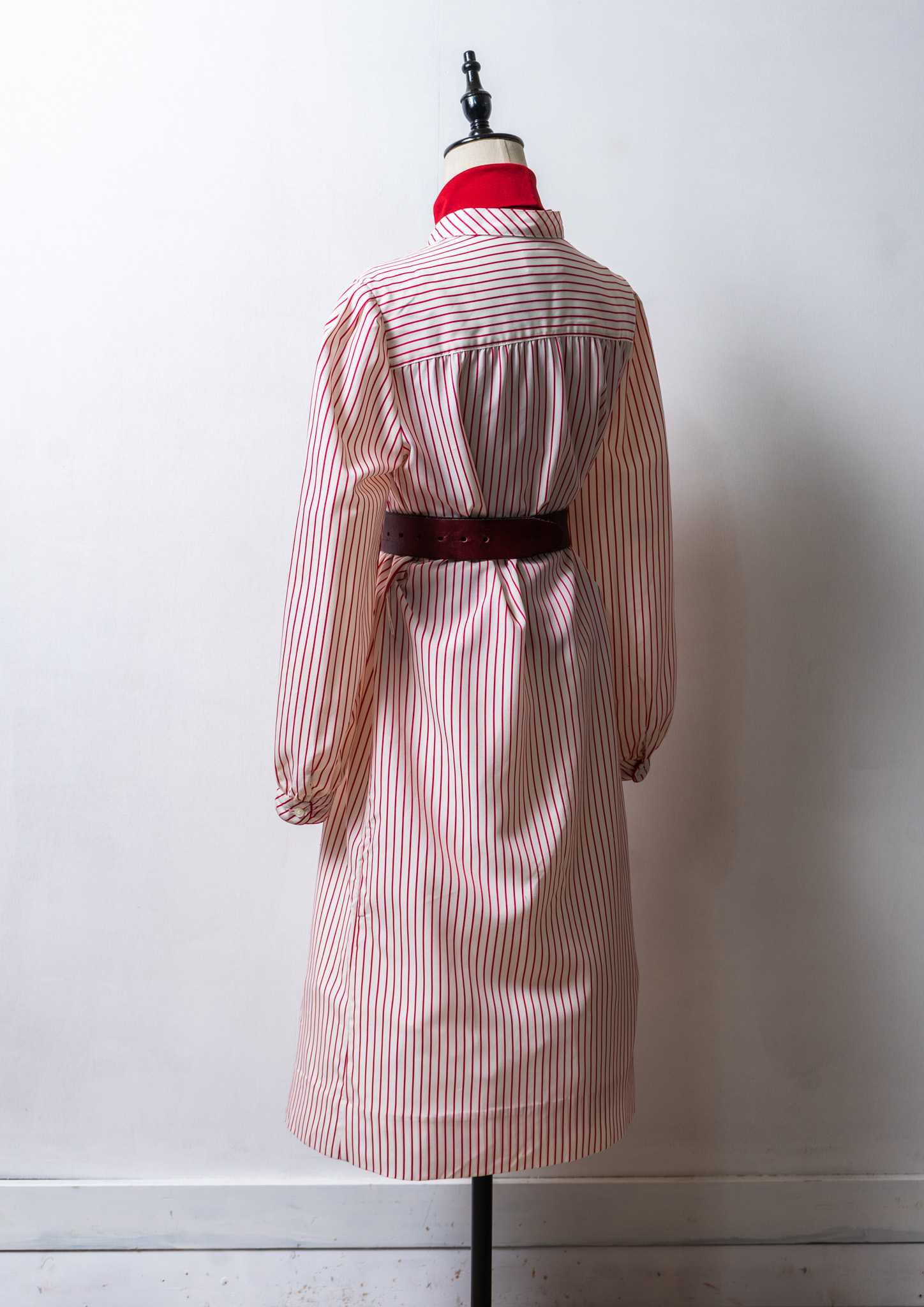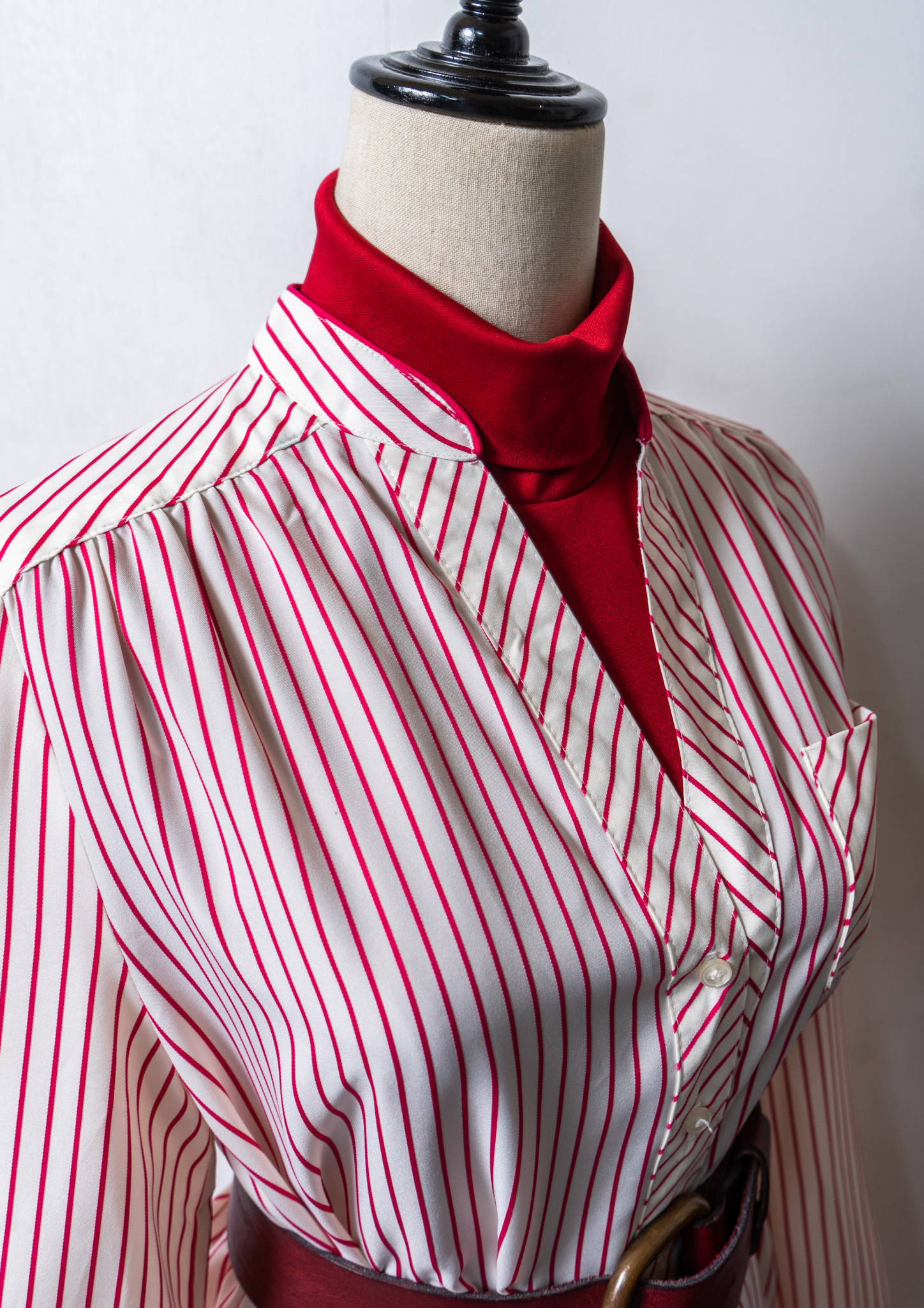 70's USA Red Stripe Pattern Bow-tie White Dress
