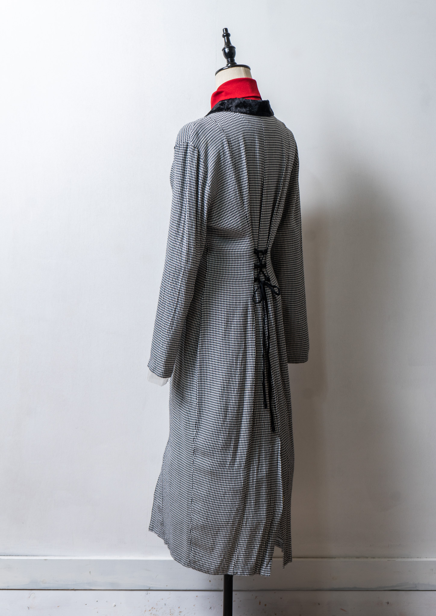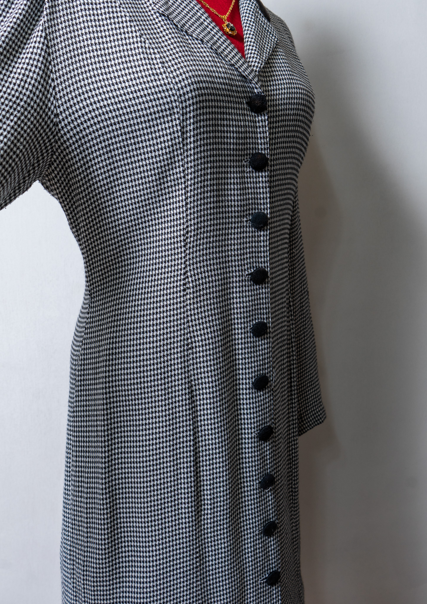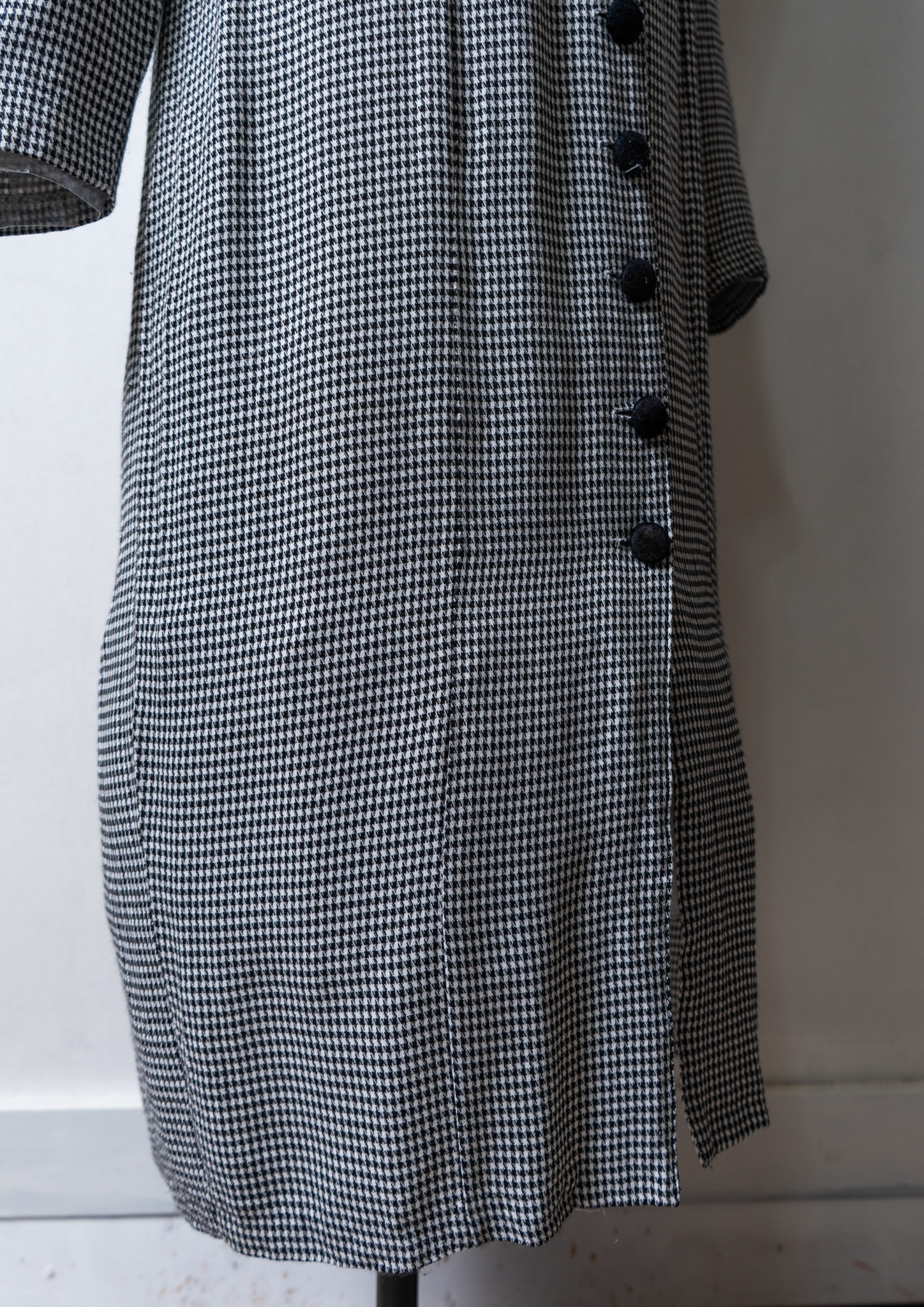 80's USA Houndstooth Pattern Velour Collar × Button Dress