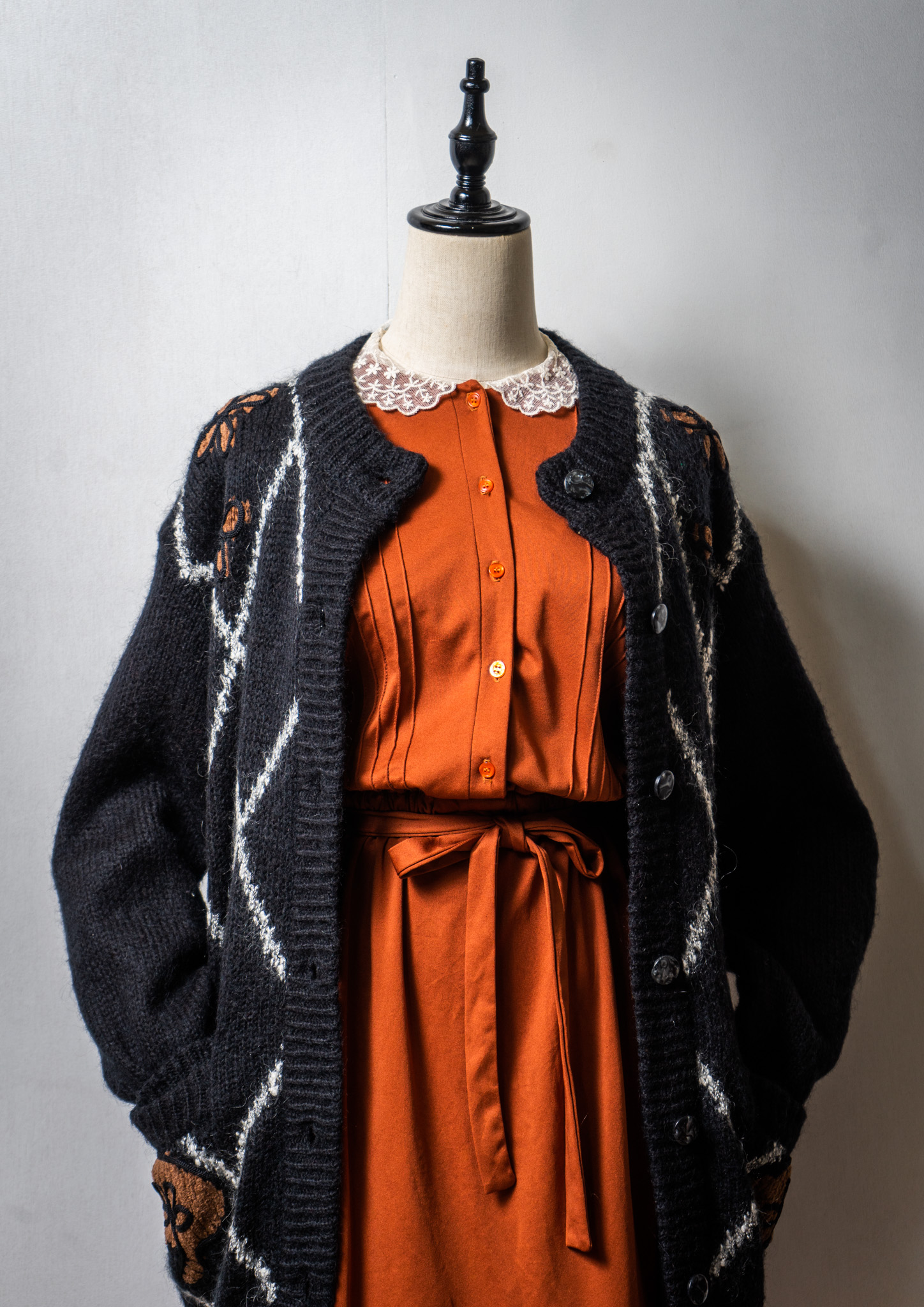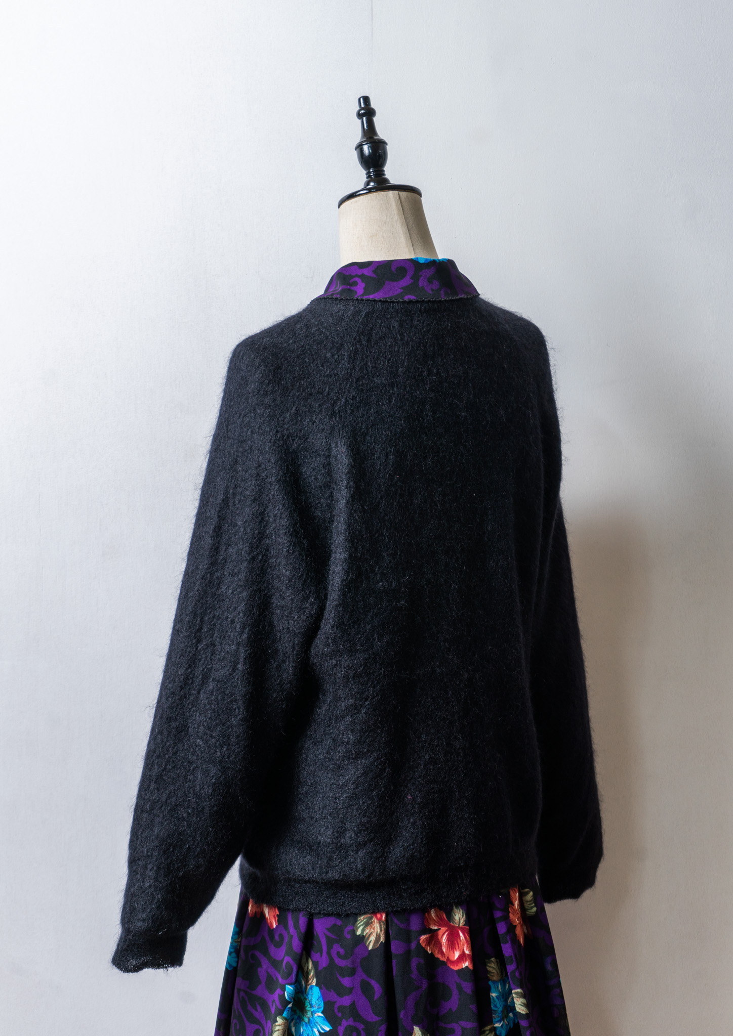 80~90's Flower Embroidery Design Mohair Mix Black Cardigan