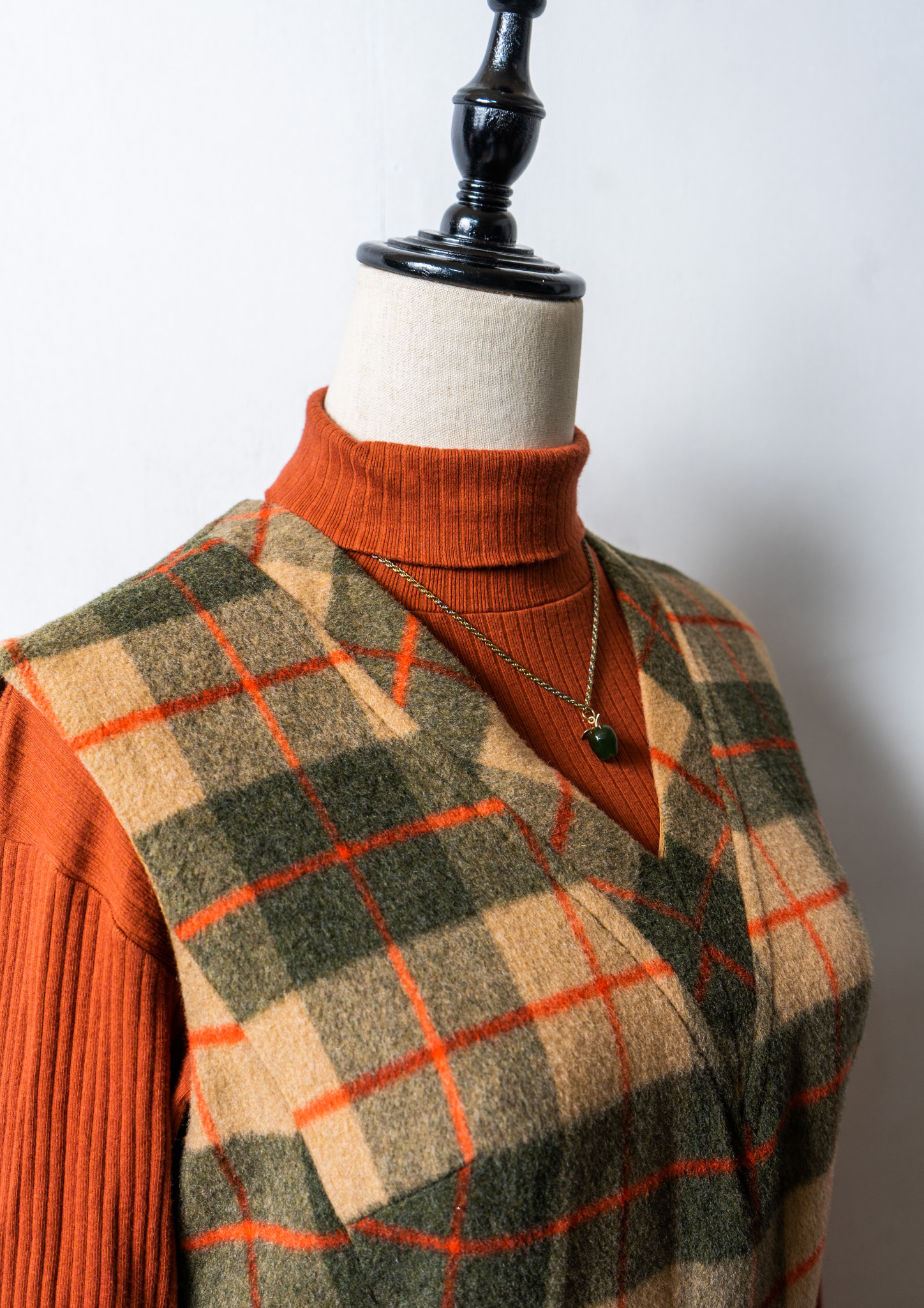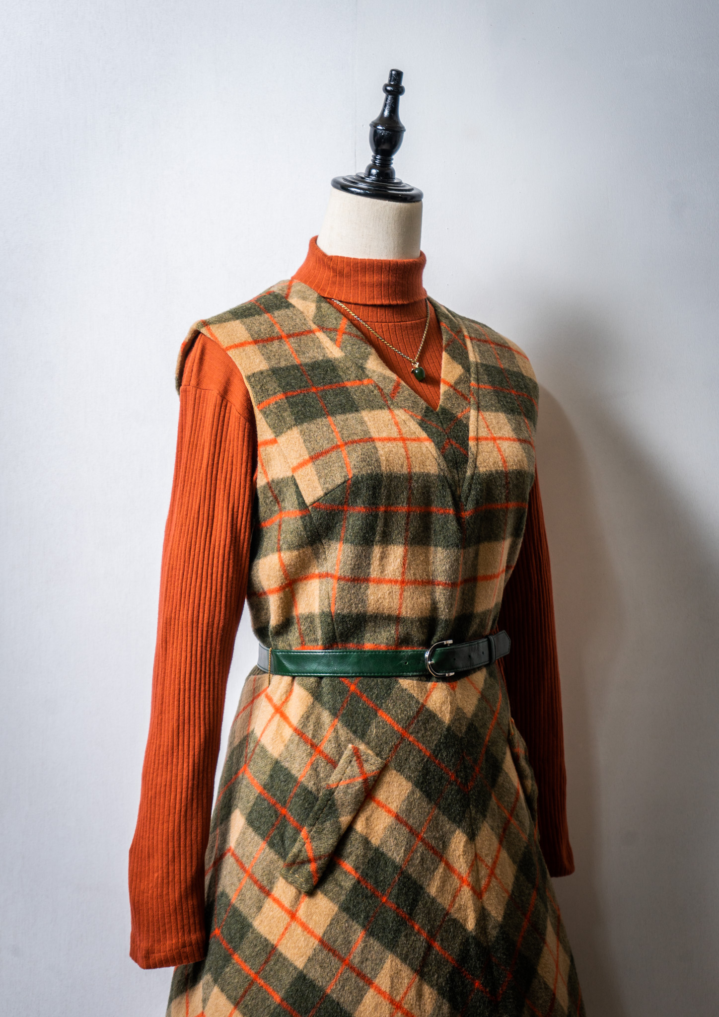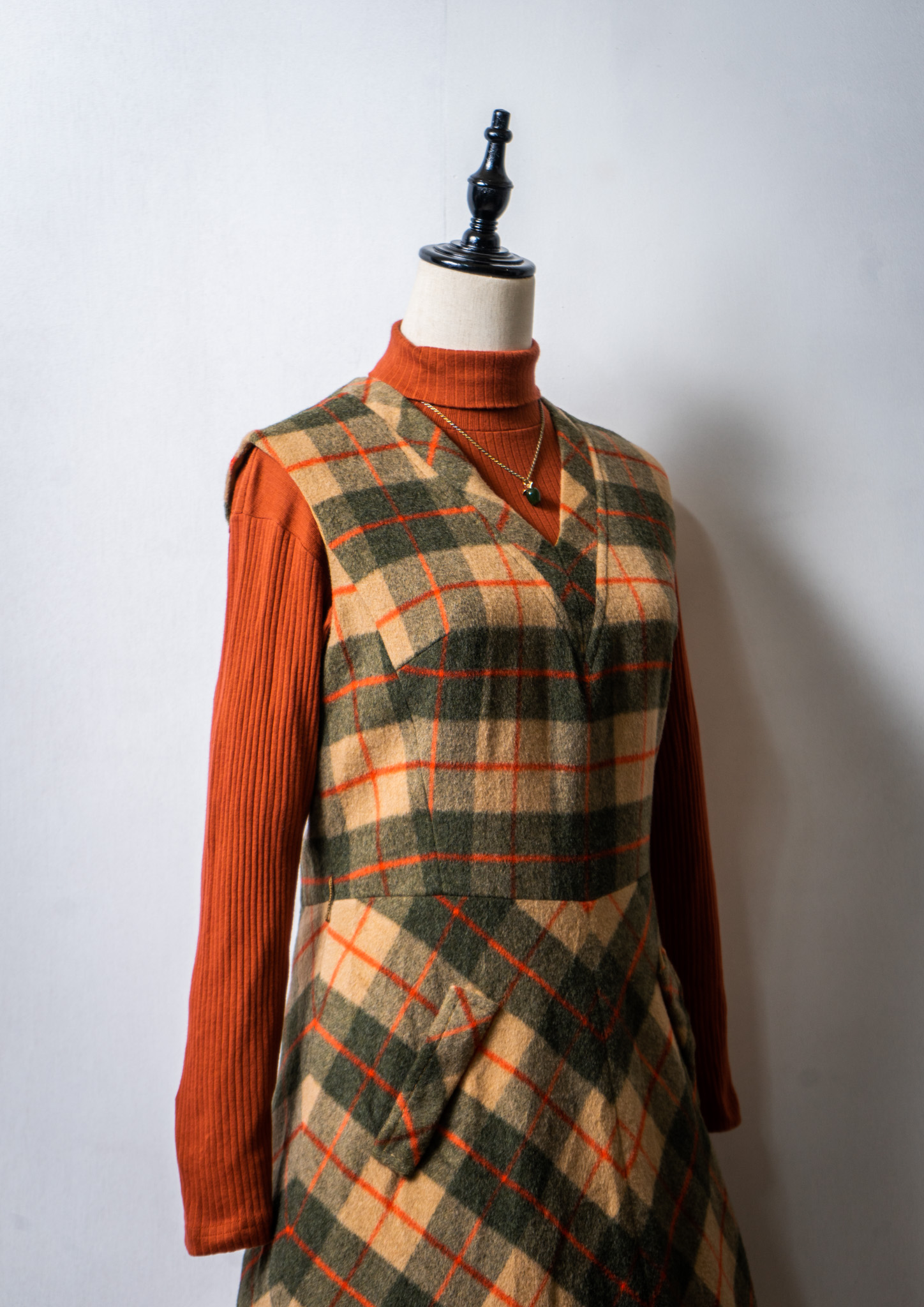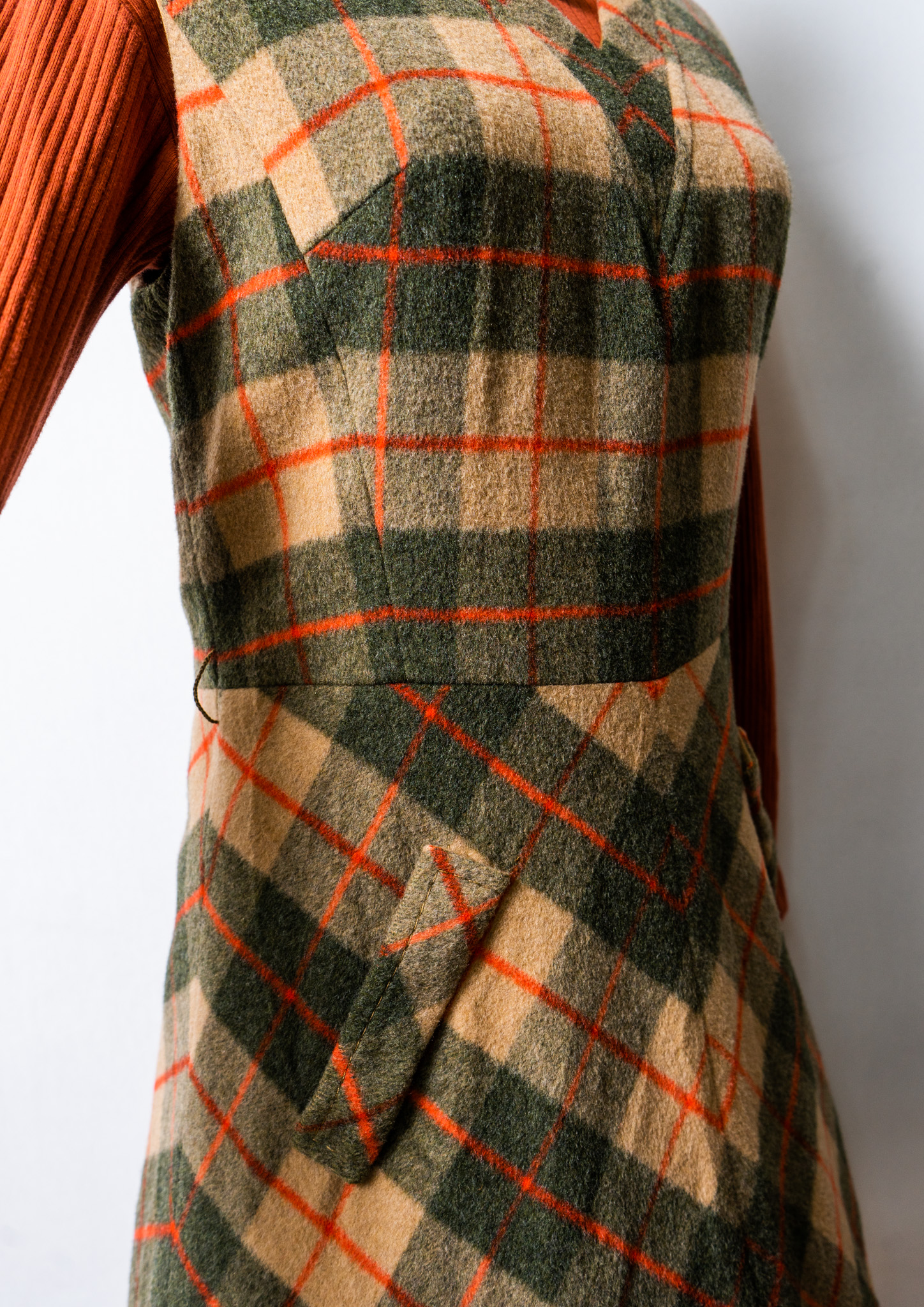 70's Check Pattern Wool Sleeveless Dress