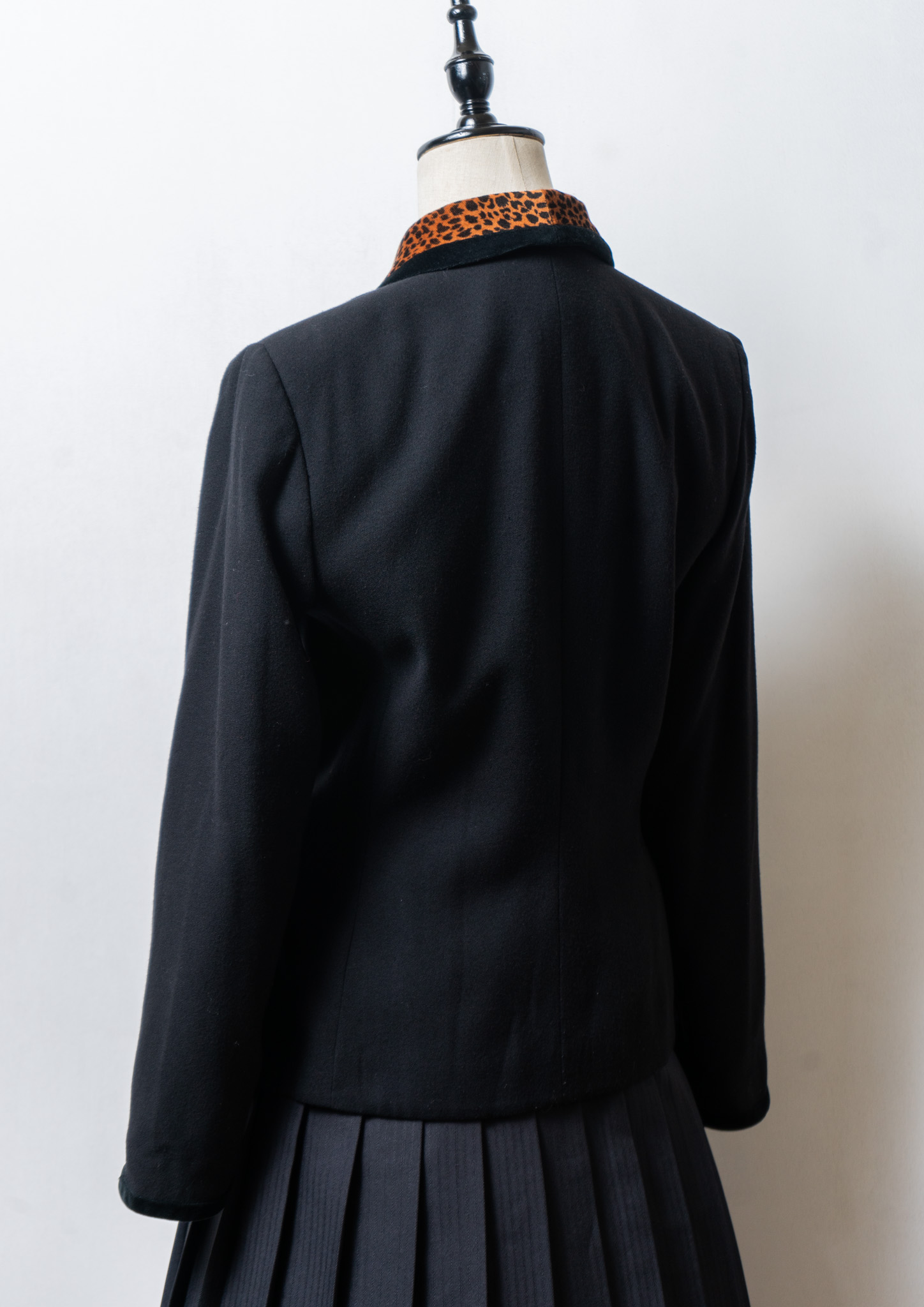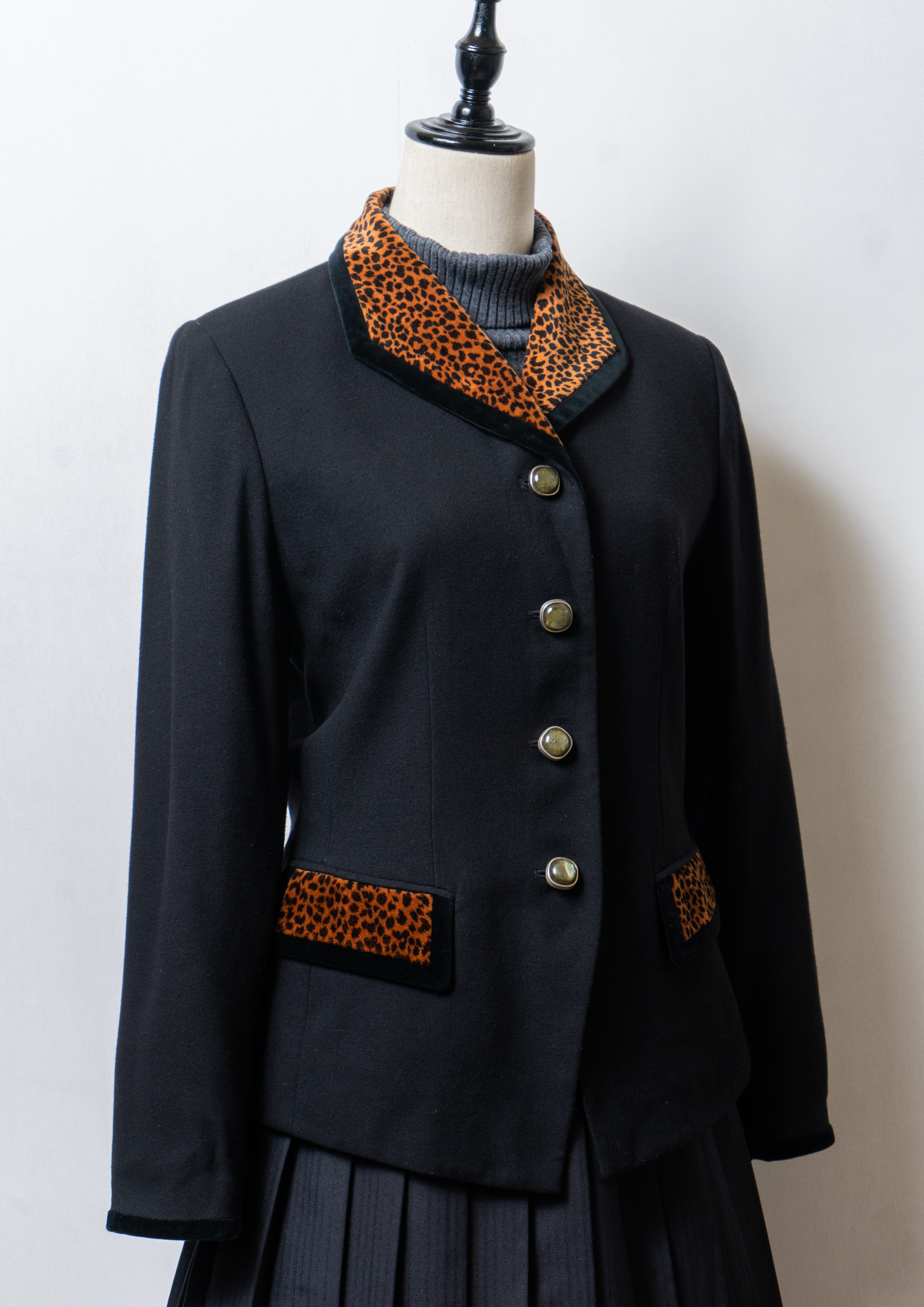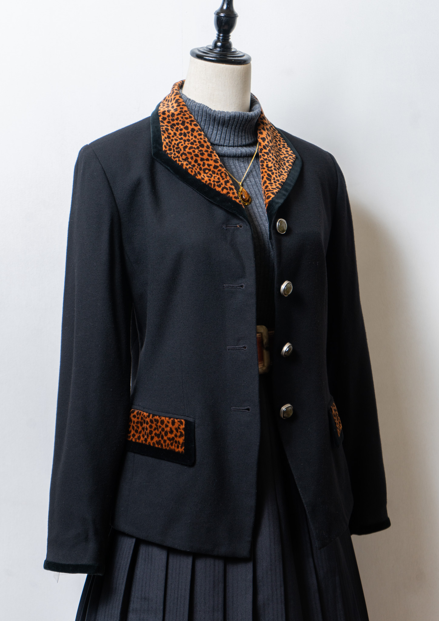 80~90's W-Germany Colorful Check Pattern Navy Tailored jacket